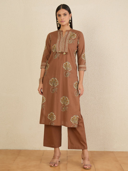 Women Floral Printed Beads and Stones Straight Kurta