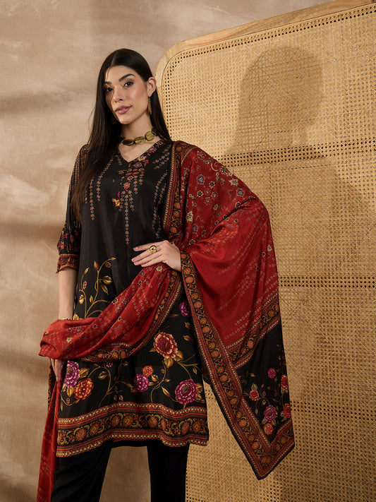 Women Floral Embroidered A-Line Kurta with Trousers & Dupatta