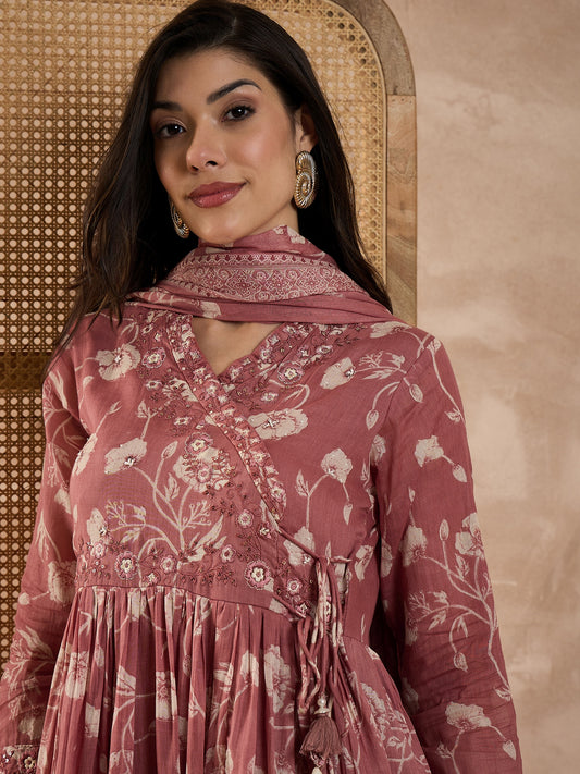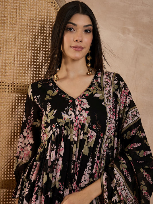 Women Floral Printed Anarkali Kurta with Trousers & Dupatta