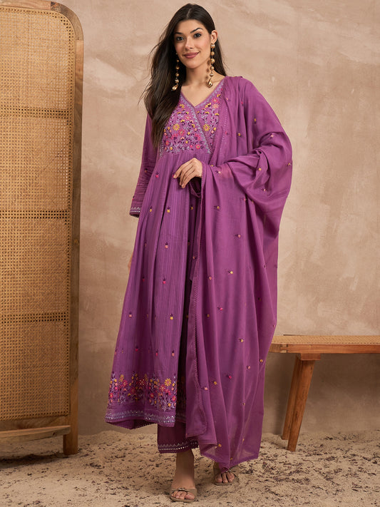 Women Floral Embroidered Regular Thread Work Kurta with Trousers & With Dupatta