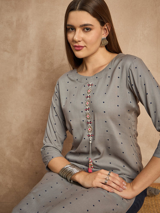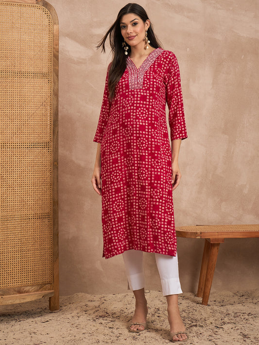 Geometric Printed V-Neck Sequinned Straight Kurta
