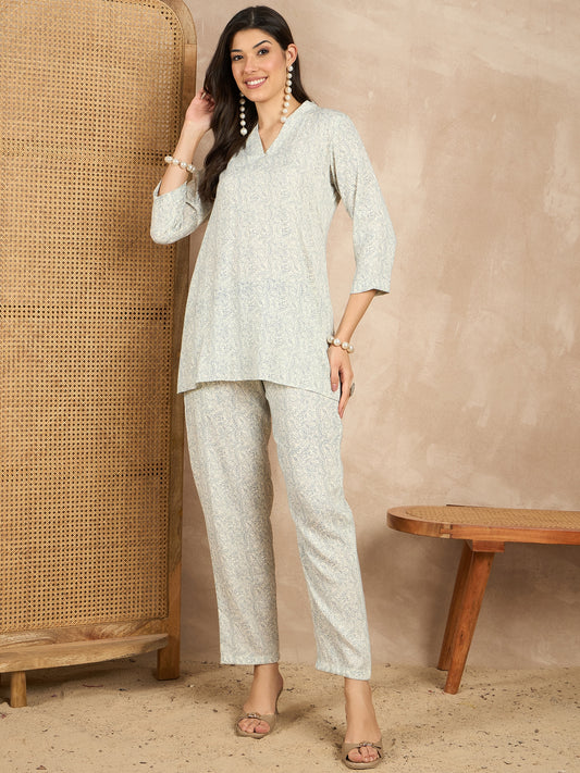Printed V Neck Tunic & Trousers Co-ords