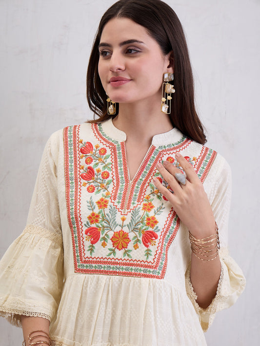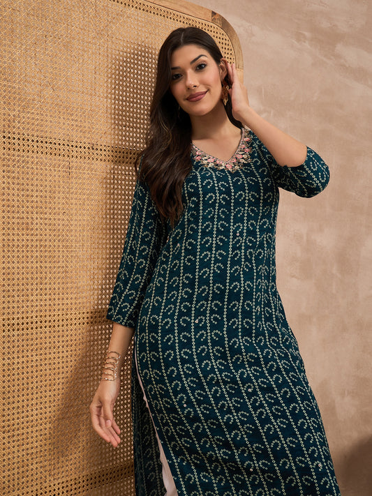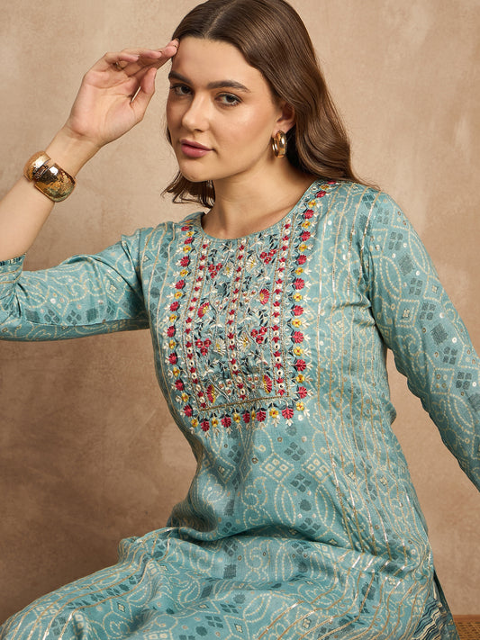 Women Bandhani Printed Regular Thread Work Kurta with Trousers