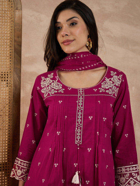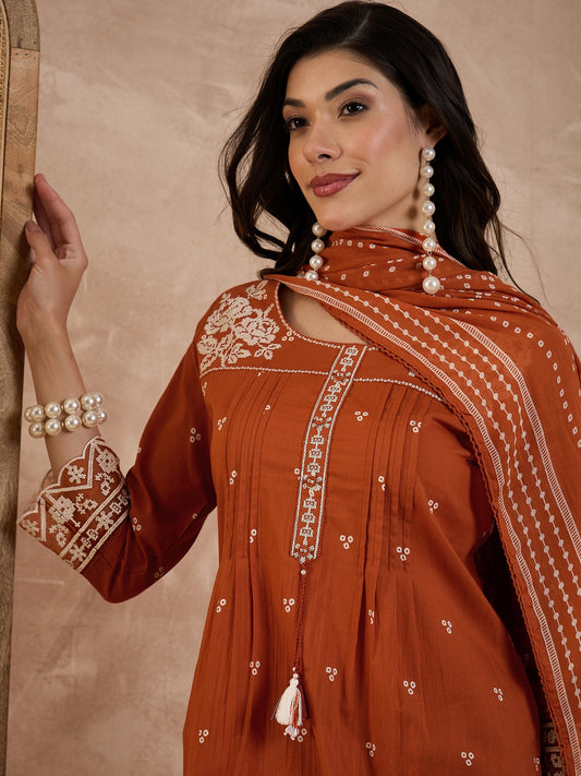 Women Bandhani Printed Pure Cotton Kurta with Trouser & Dupatta