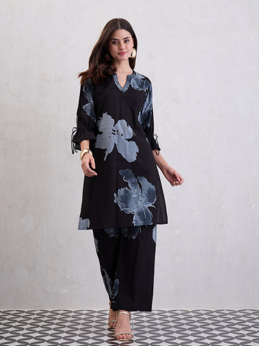 Floral Printed Pure Cotton Tunic With Trouser Co-Ord Set
