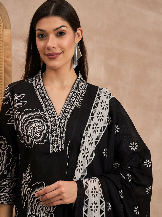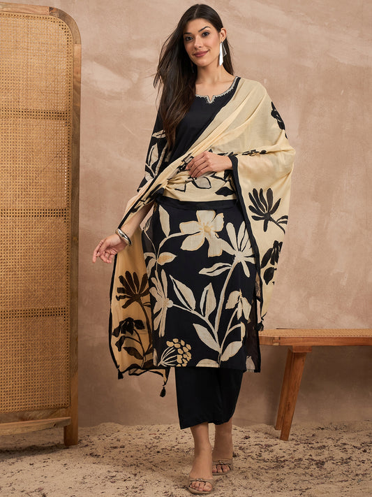Women Floral Printed Cotton Kurta with Trousers & Dupatta