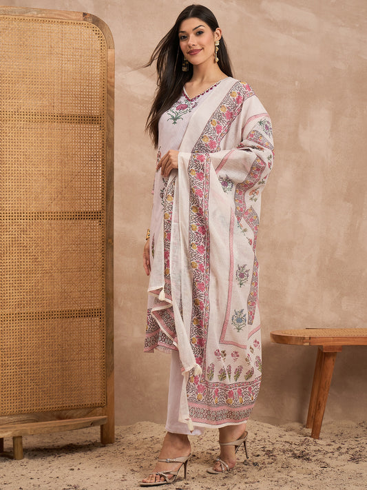 Women Floral Printed Cotton Kurta with Palazzos & Dupatta