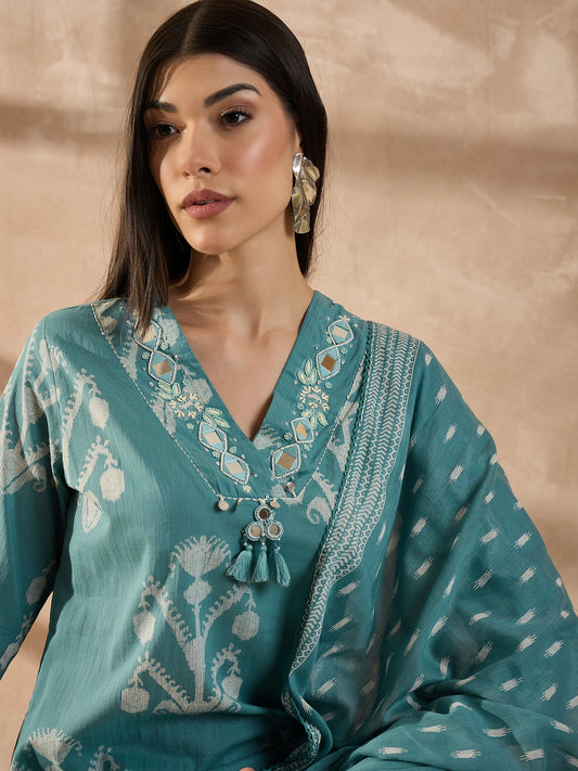 Women Ethnic Motifs Printed Cotton Kurta with Trousers & Dupatta