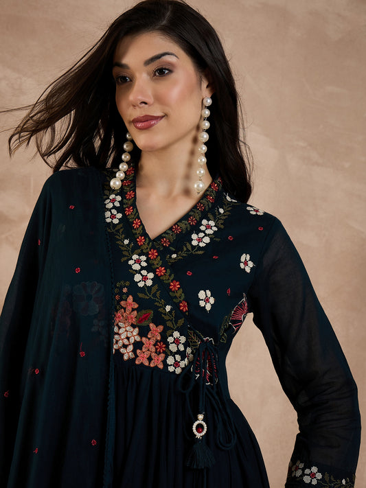 Women Floral Embroidered Anarkali Kurta with Trousers & Dupatta