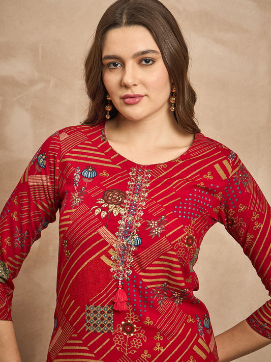 Women Ethnic Motifs Printed Festive Straight Kurtas