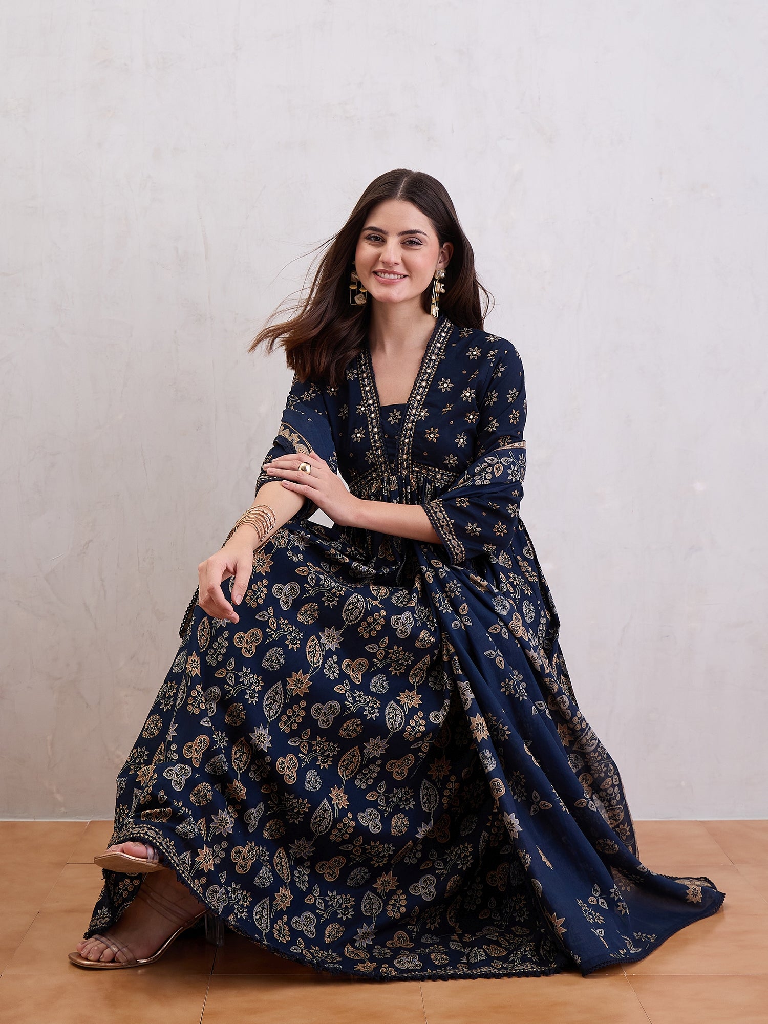 Women voile ethinic anarkali kurta emblished with hand work on yoke along with trouser and dupatta