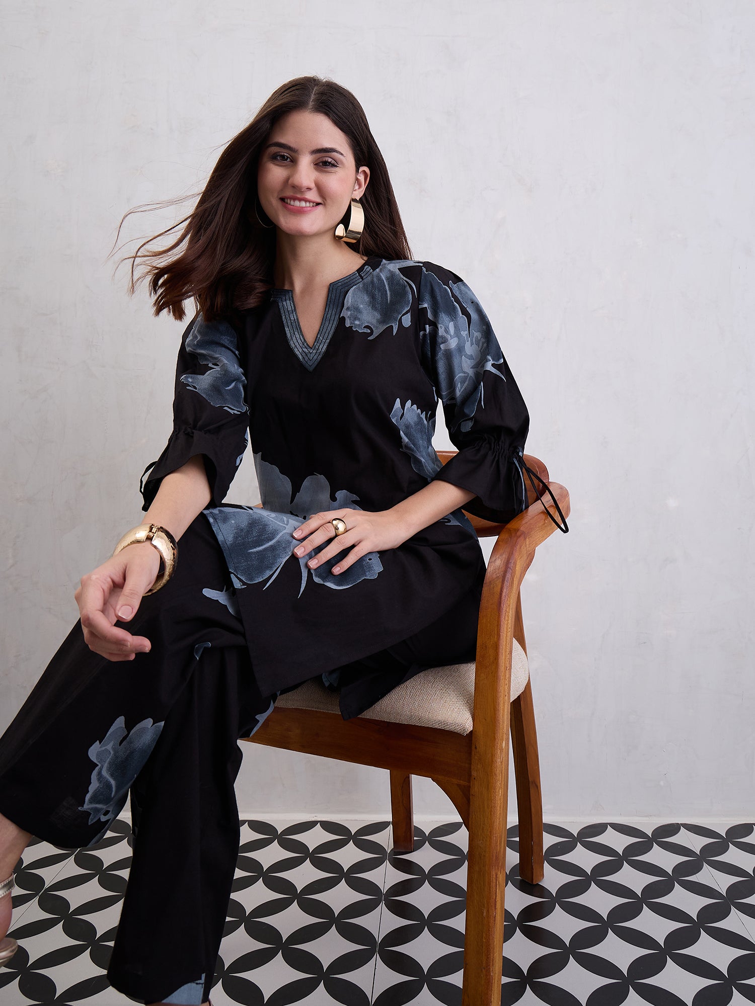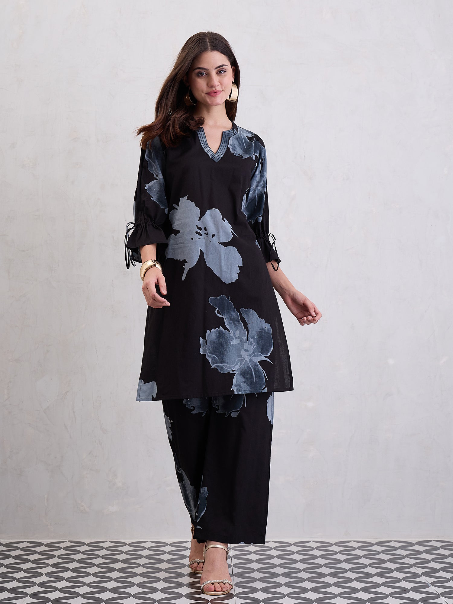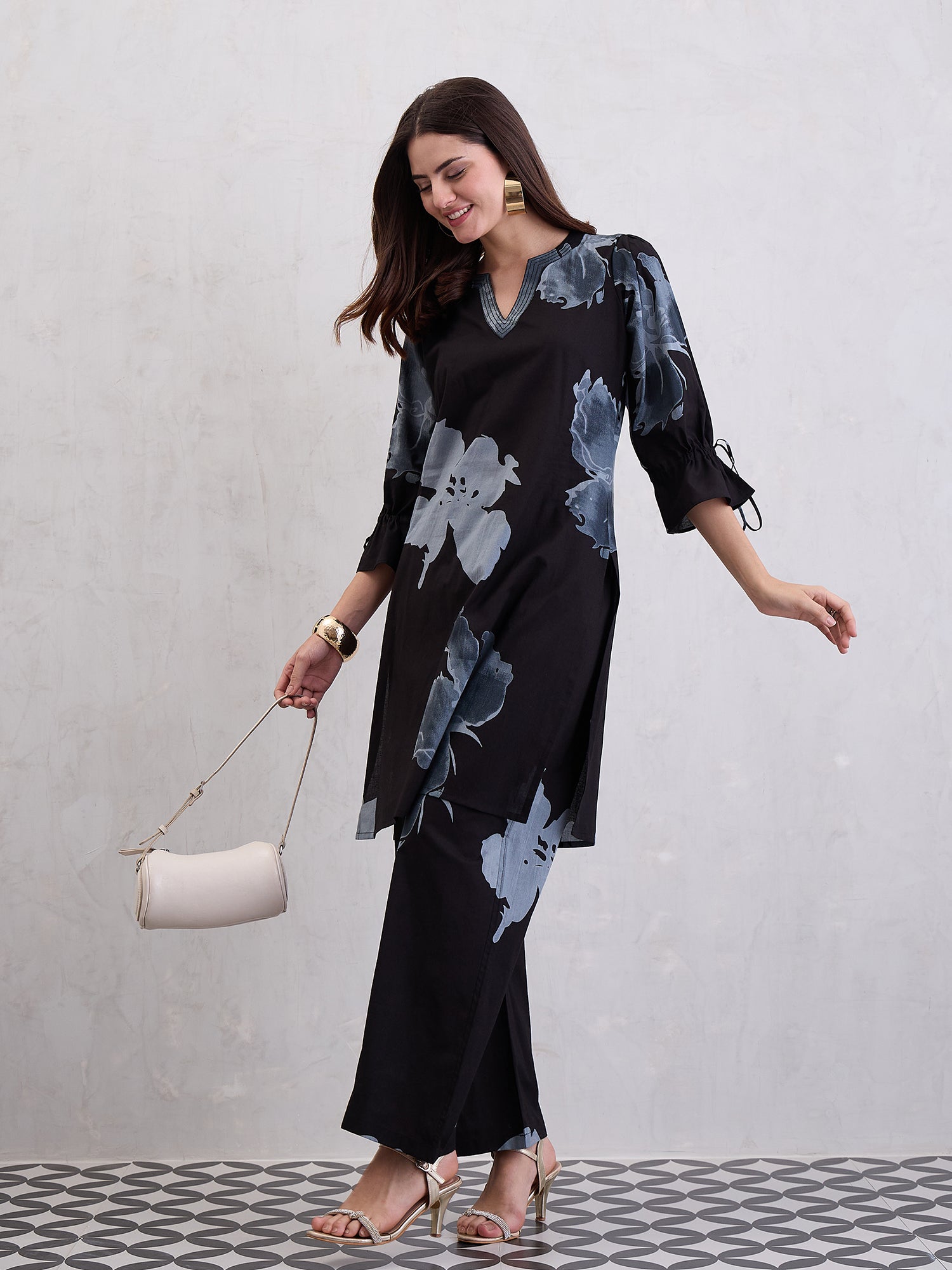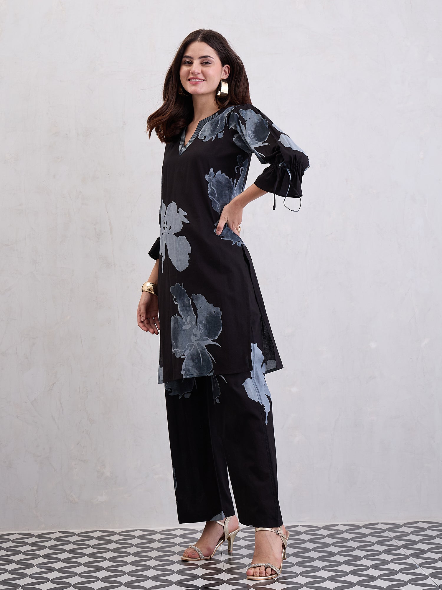 Floral Printed Cotton Tunic With Trousers Co-Ords