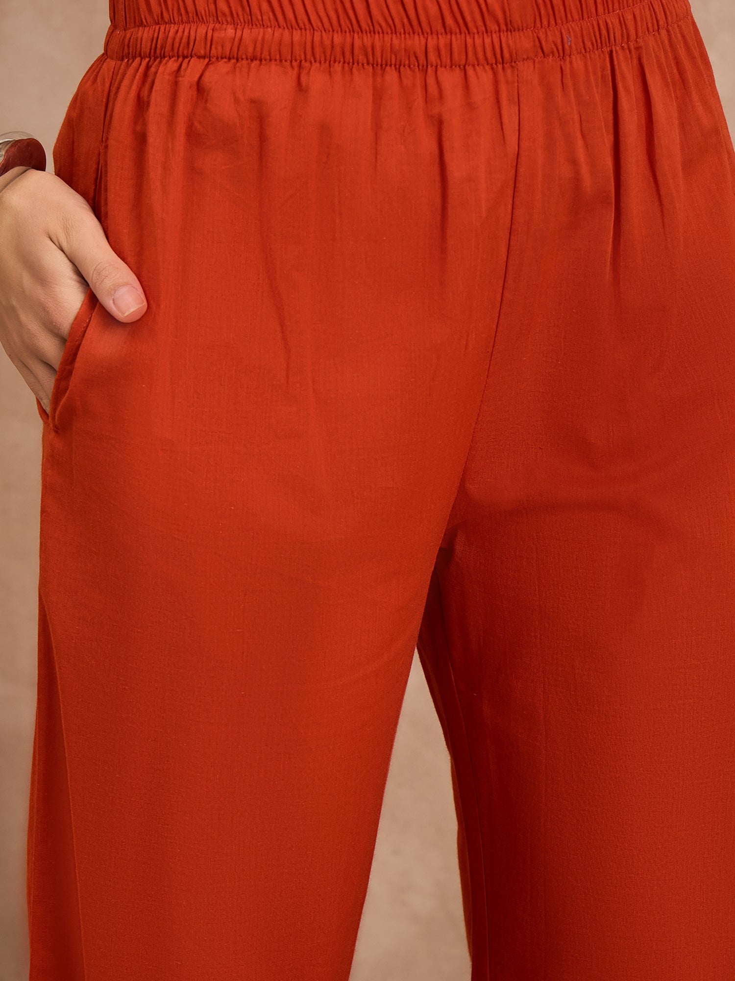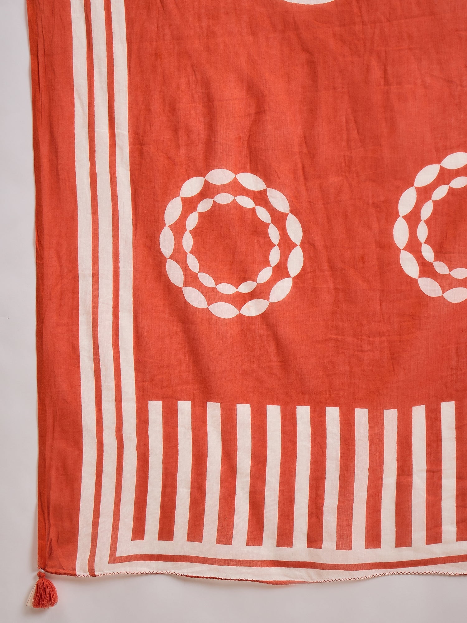 Floral Printed Sequinned Pure Cotton Straight Kurta With Trousers & Dupatta