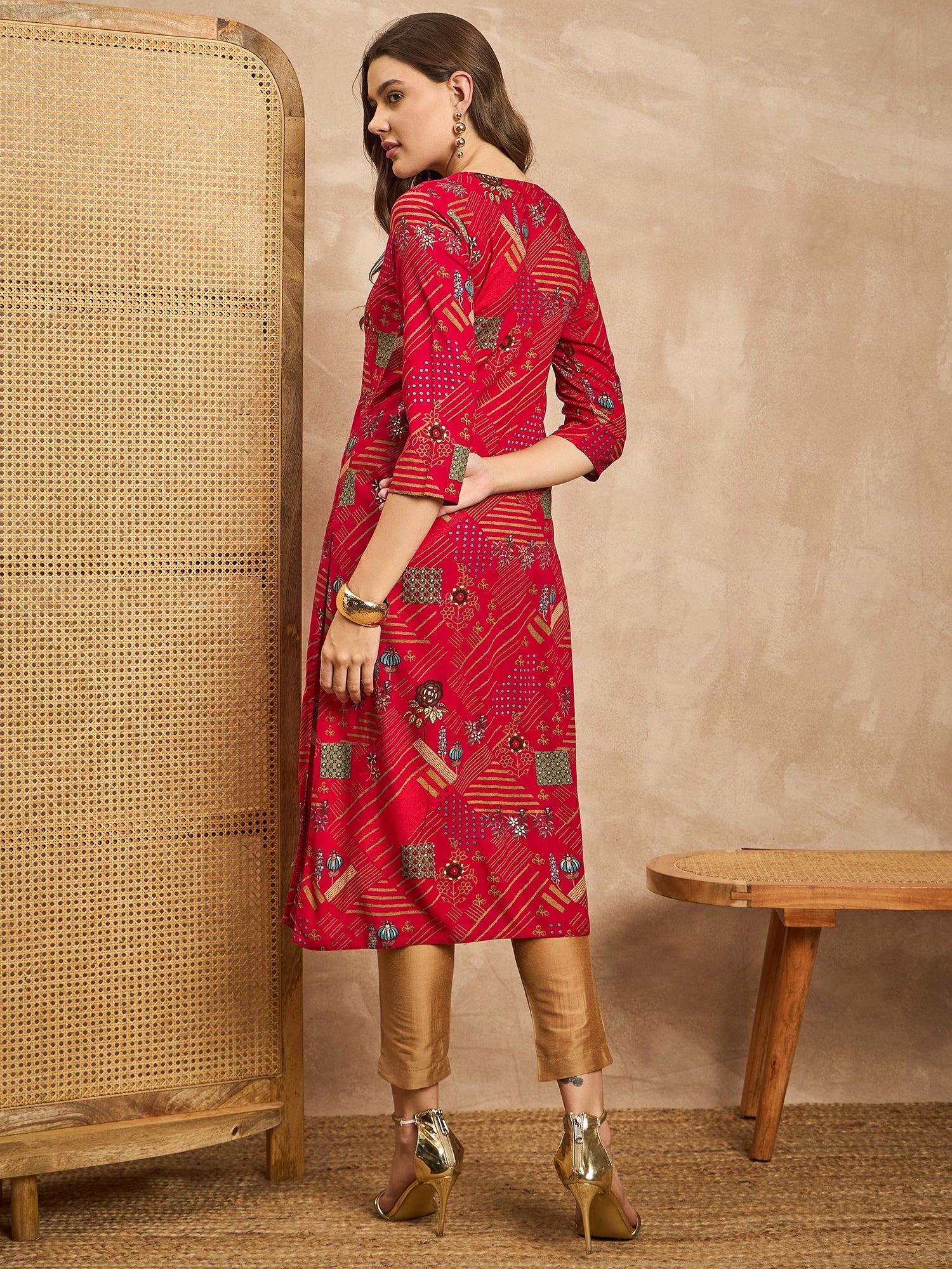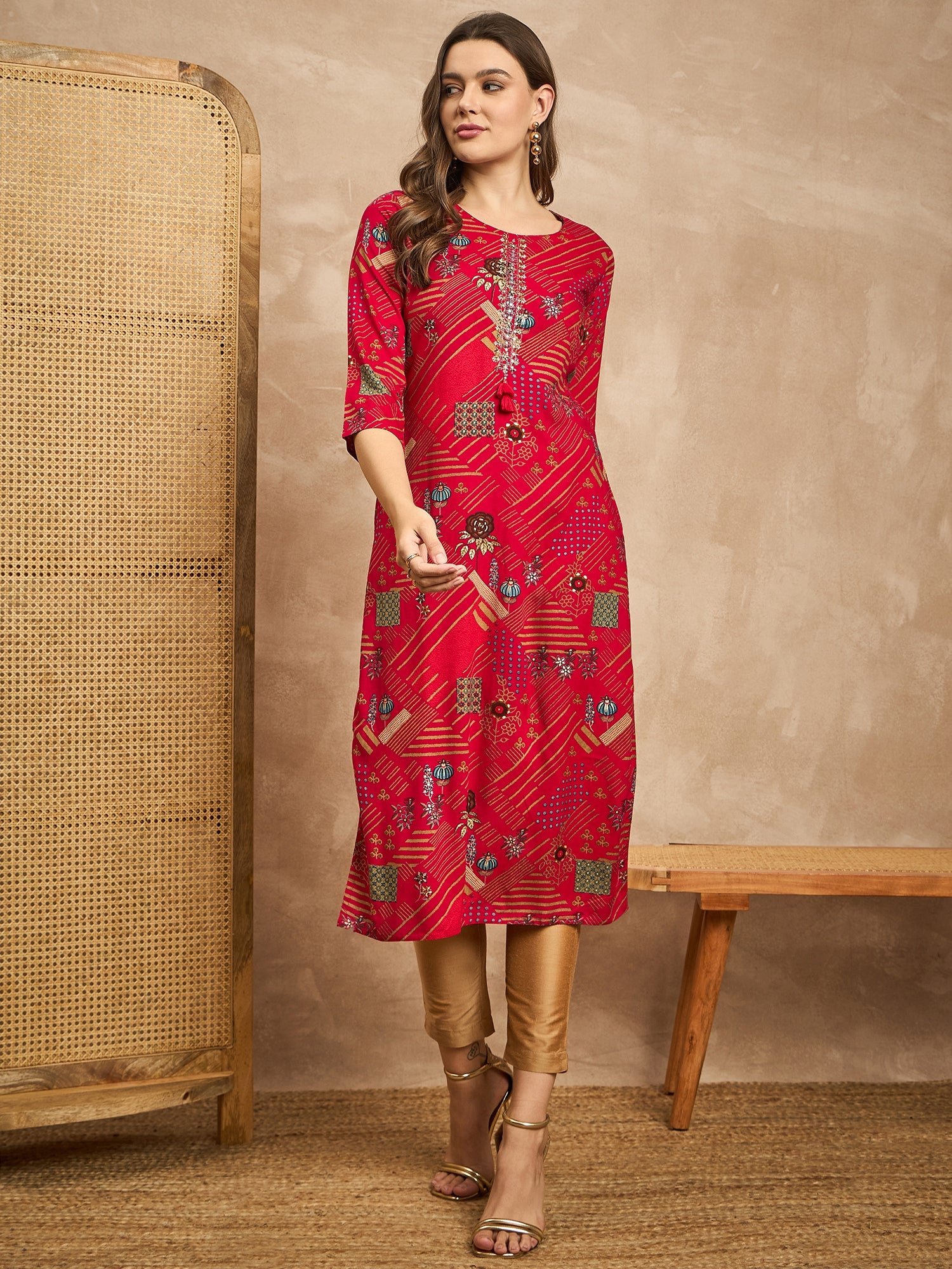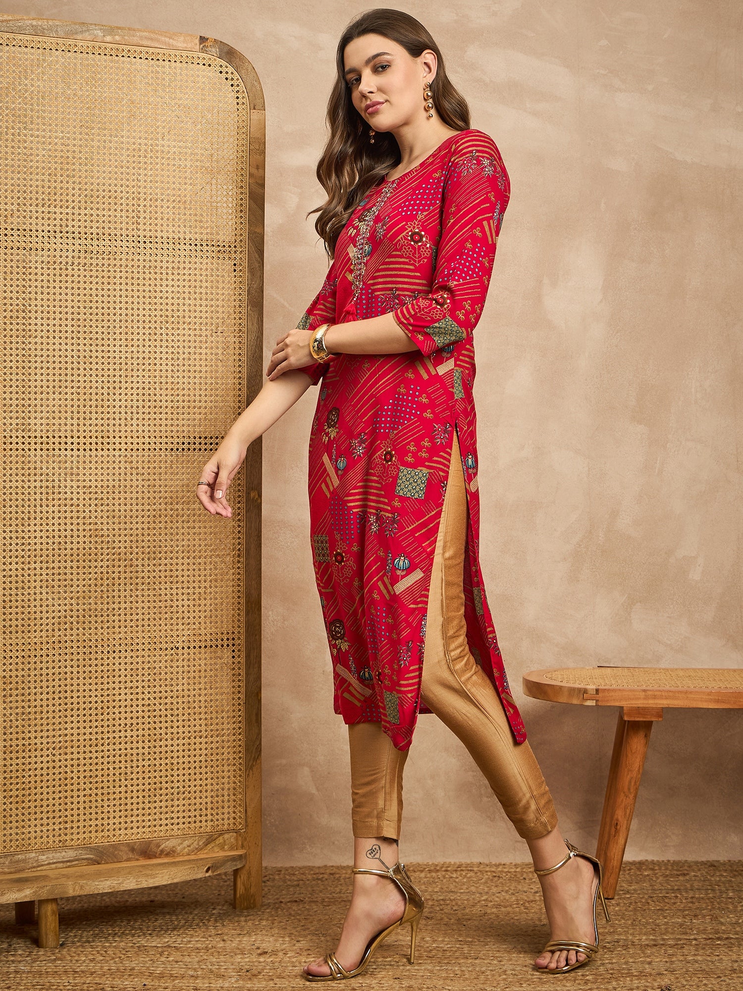 Geometric Printed Beads and Stones Straight Kurta