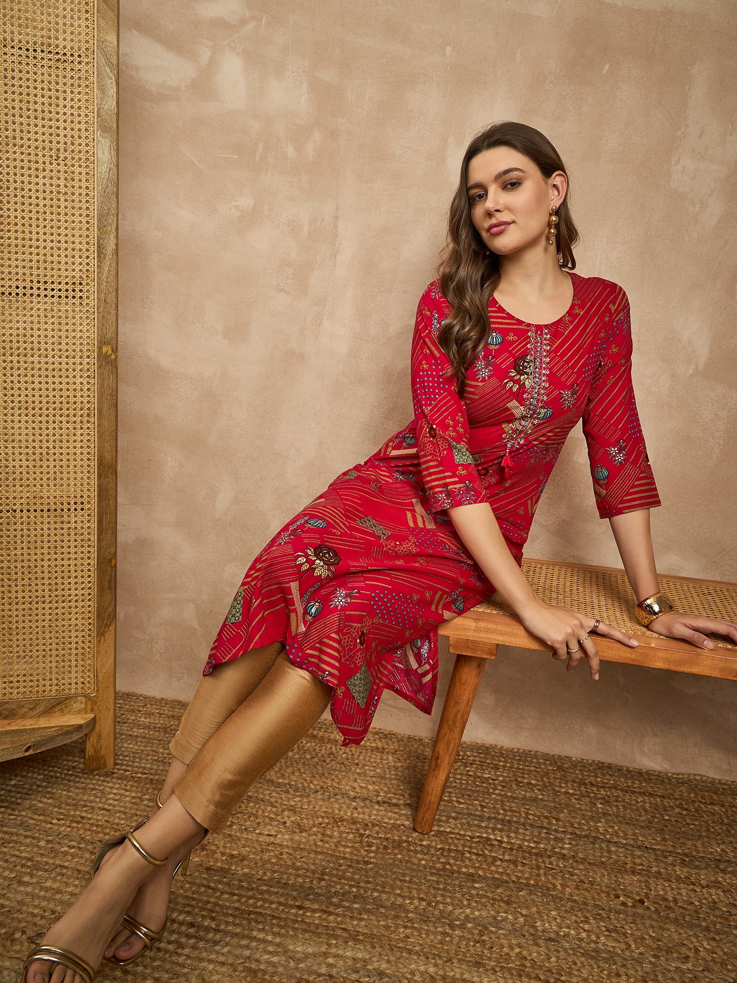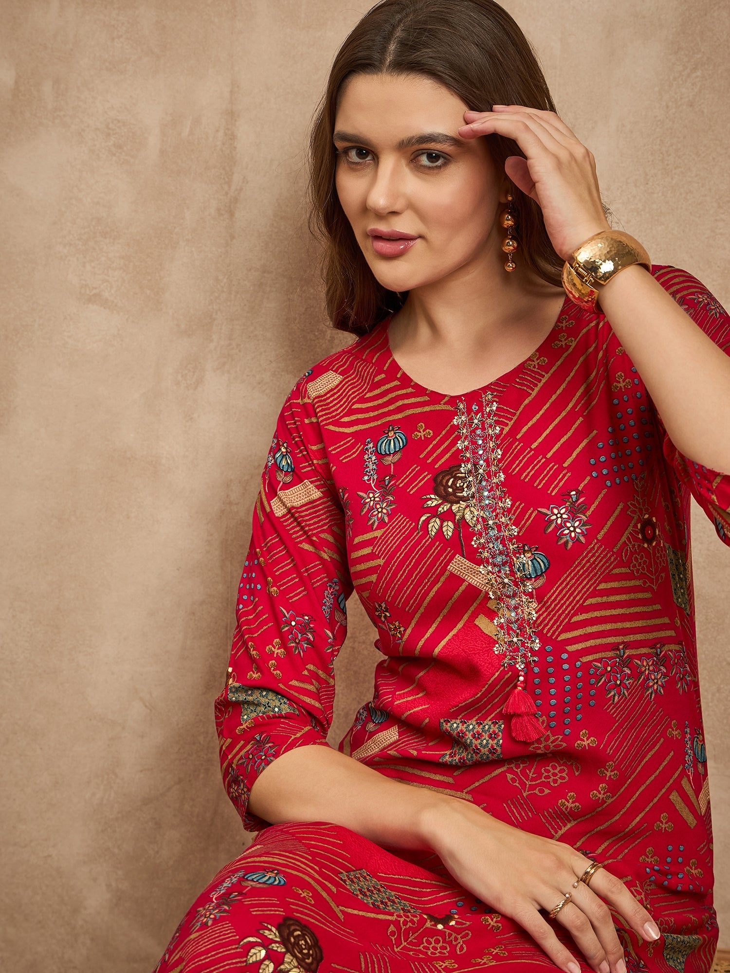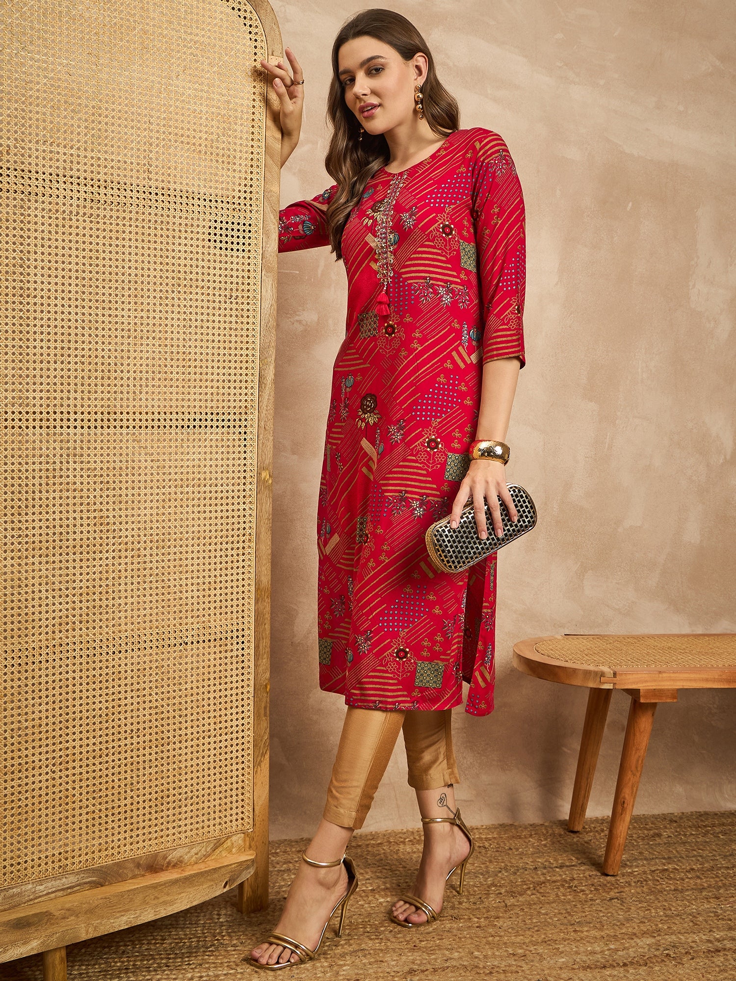 Geometric Printed Beads and Stones Straight Kurta