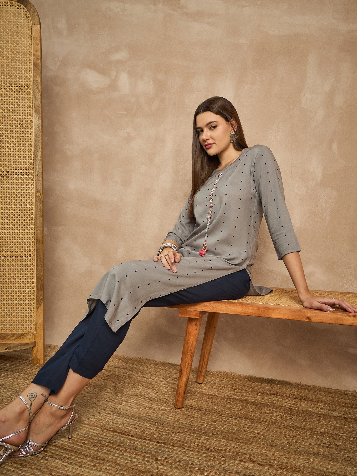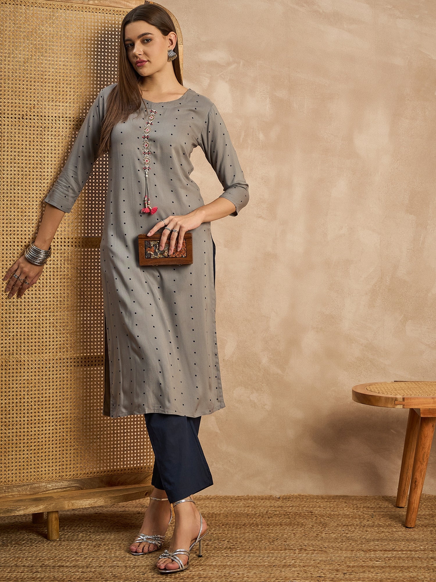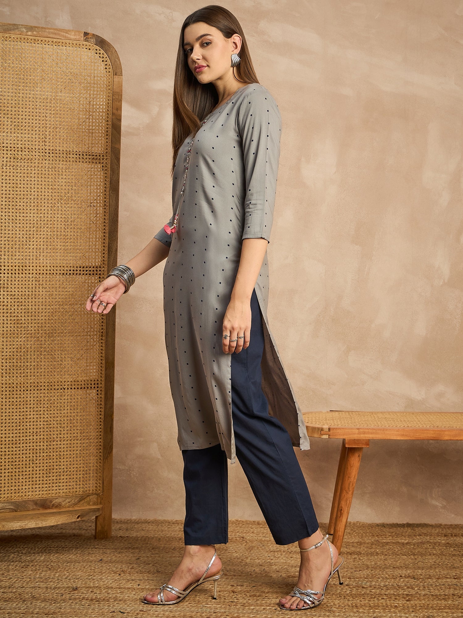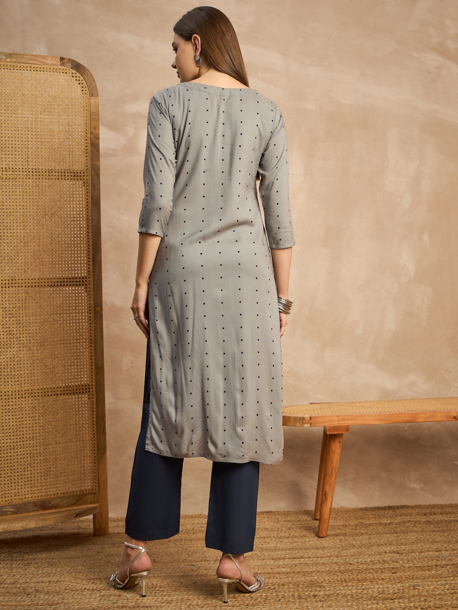 Geometric Printed Beads and Stones Straight Kurta