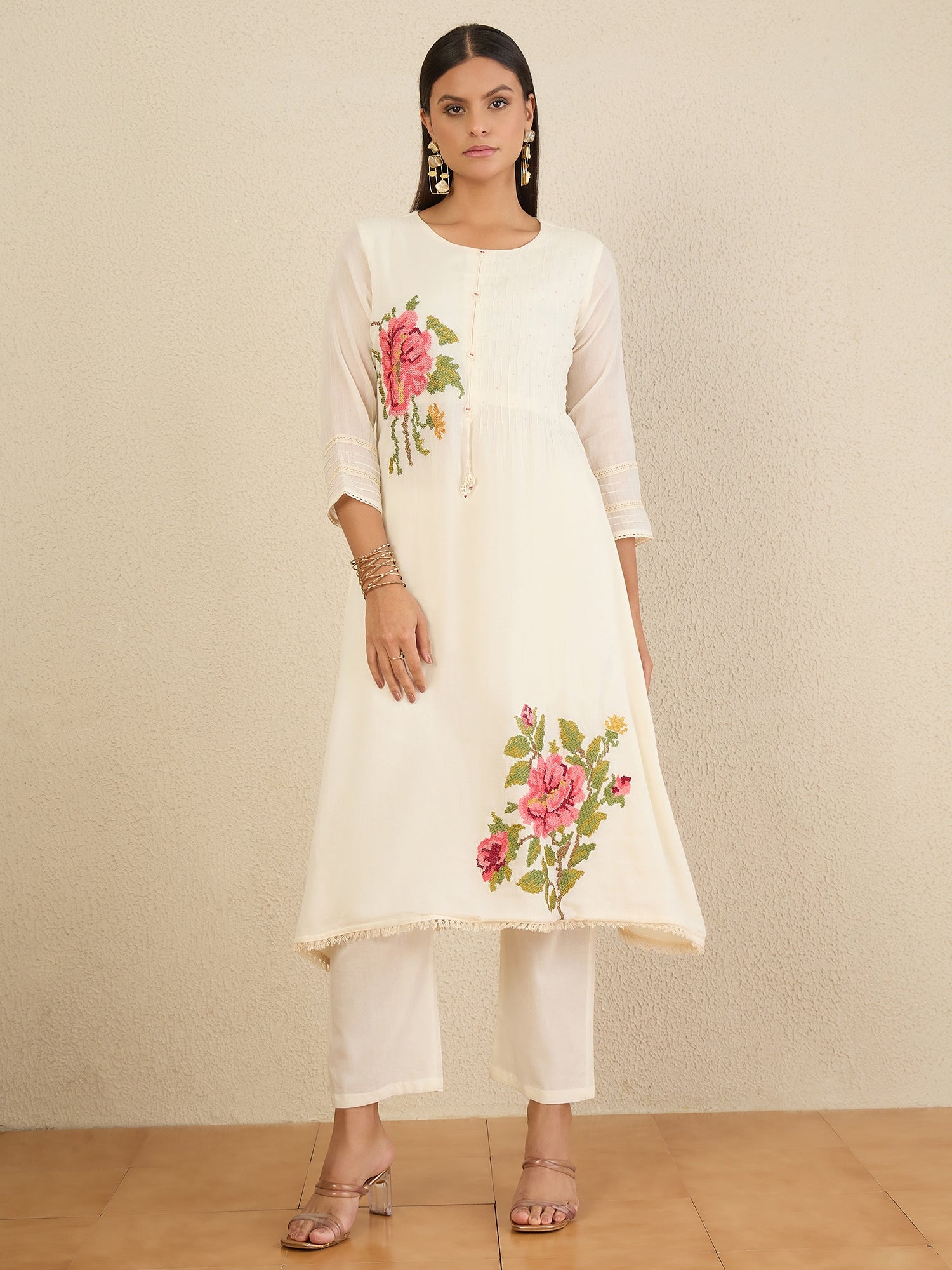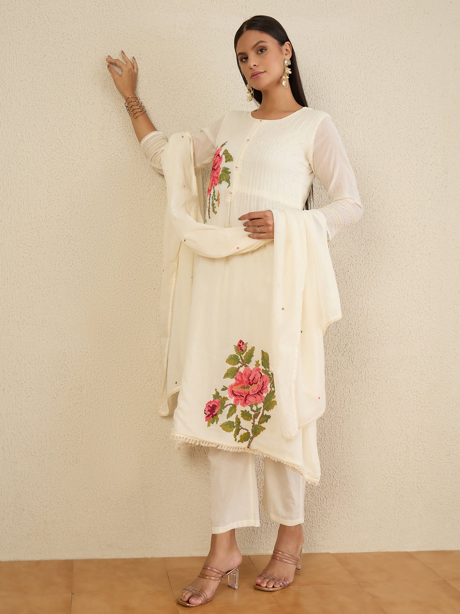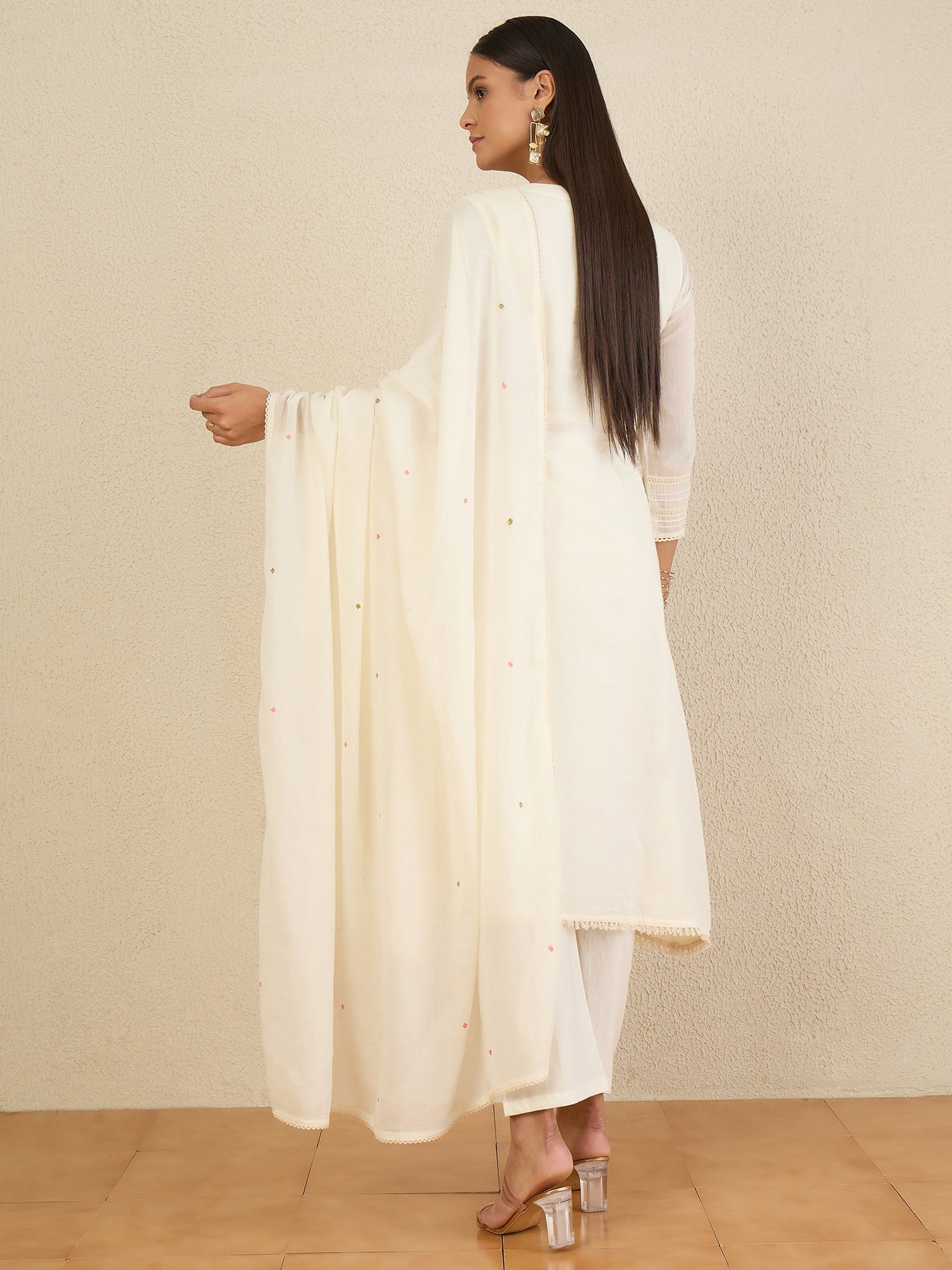 White embroidered Kurta with Trousers with dupatta