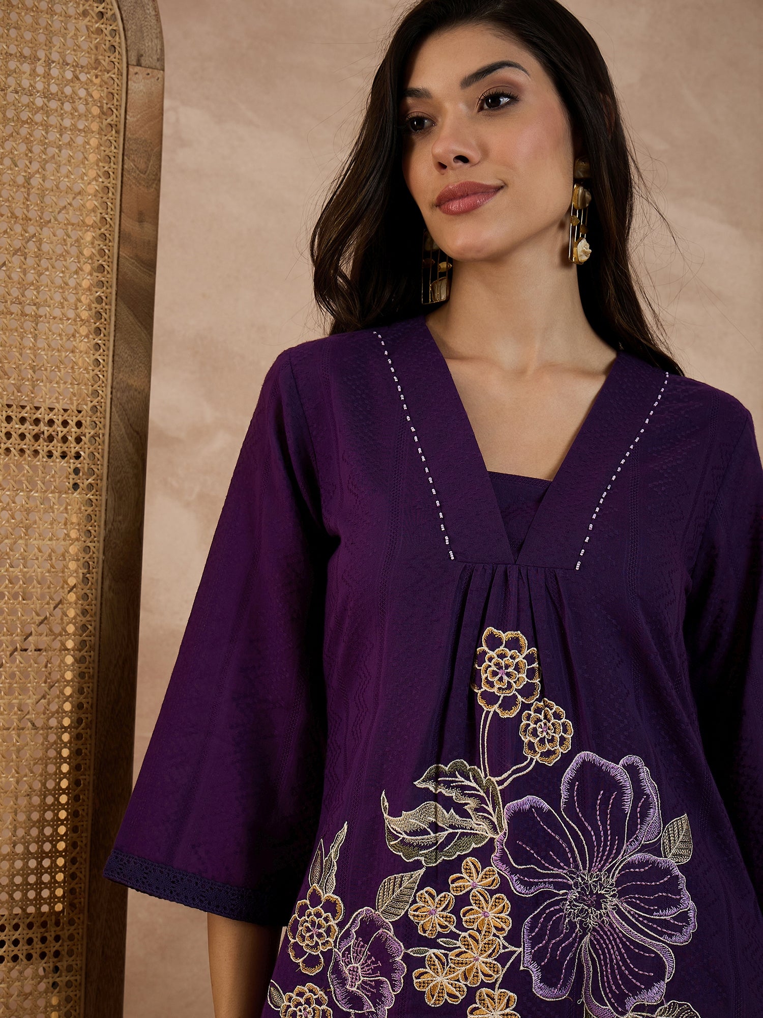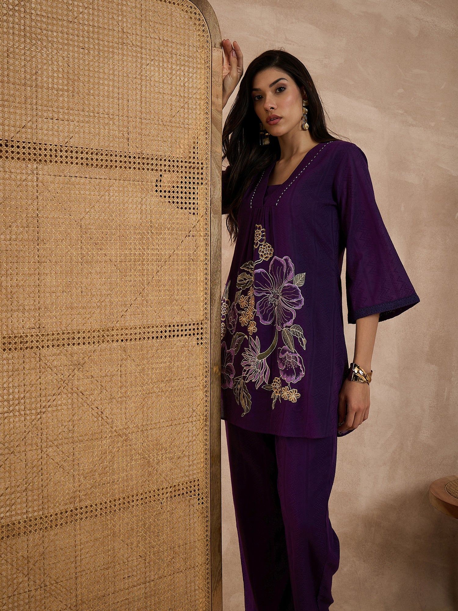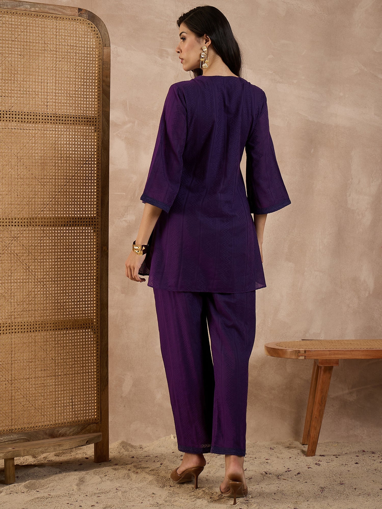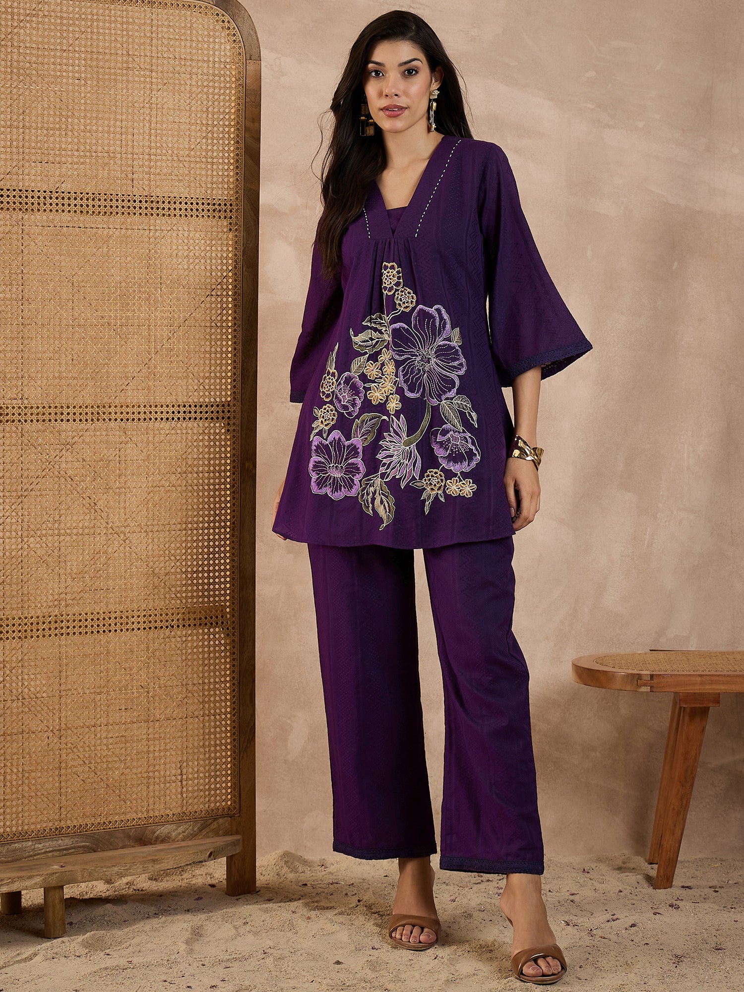 Women Cotton Dobby Textured Co-ord Set Embellished With Embroidery