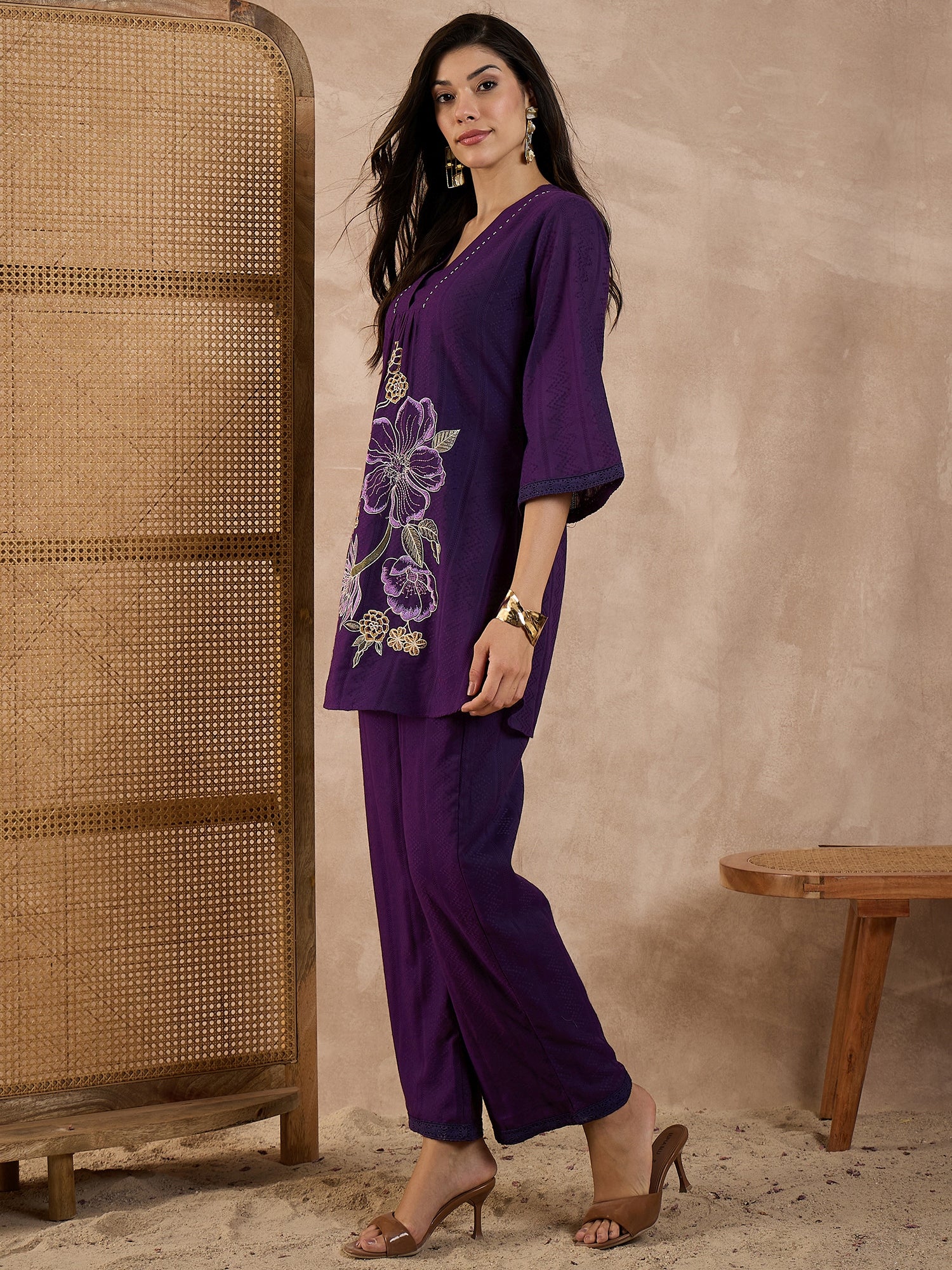 Women Cotton Dolly Textured Co-ord Set Embelished With Embroidery