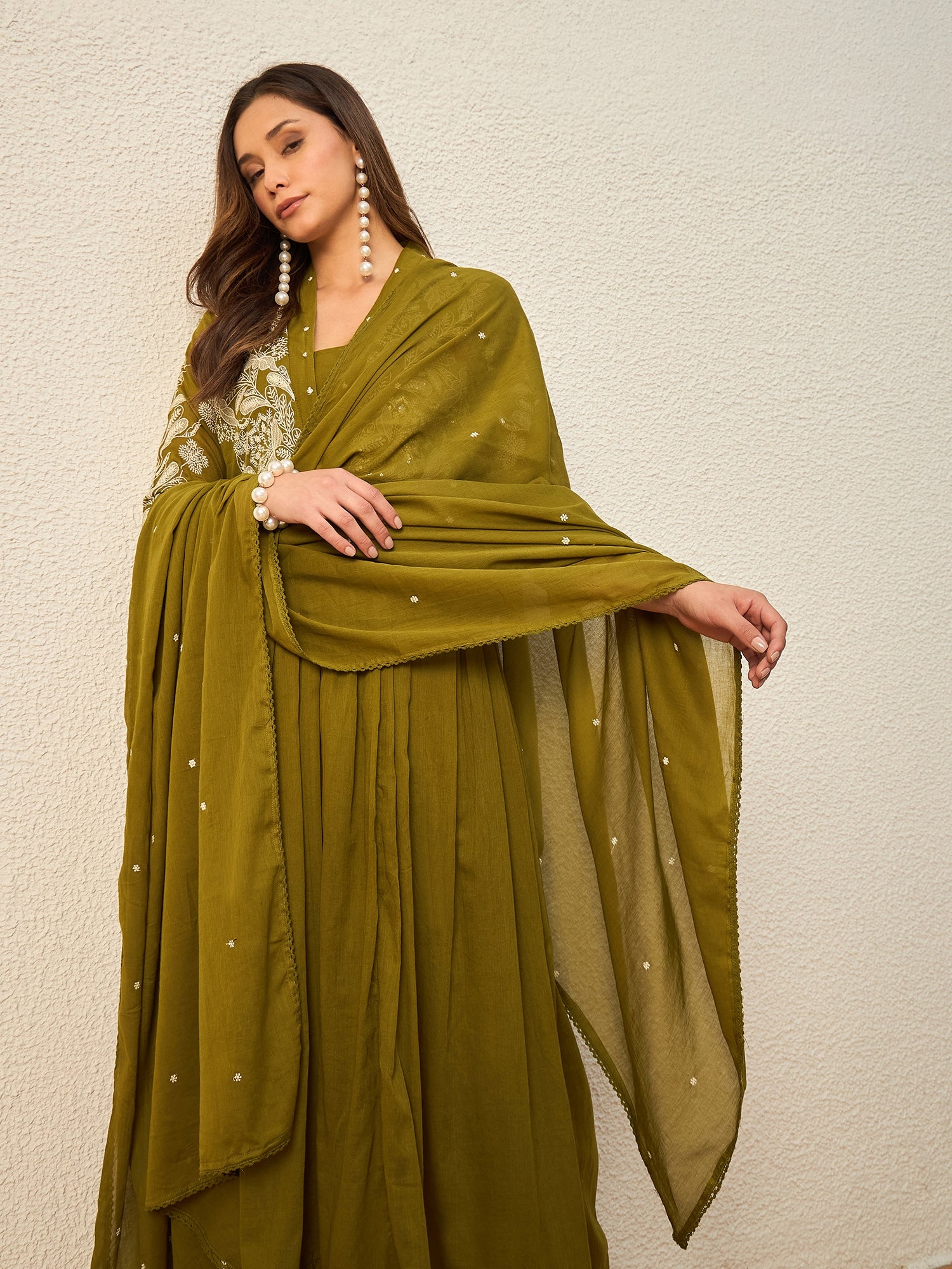 Women Ethnic Motifs Embroidered Panelled Thread Work Kurta with Trousers & With Dupatta
