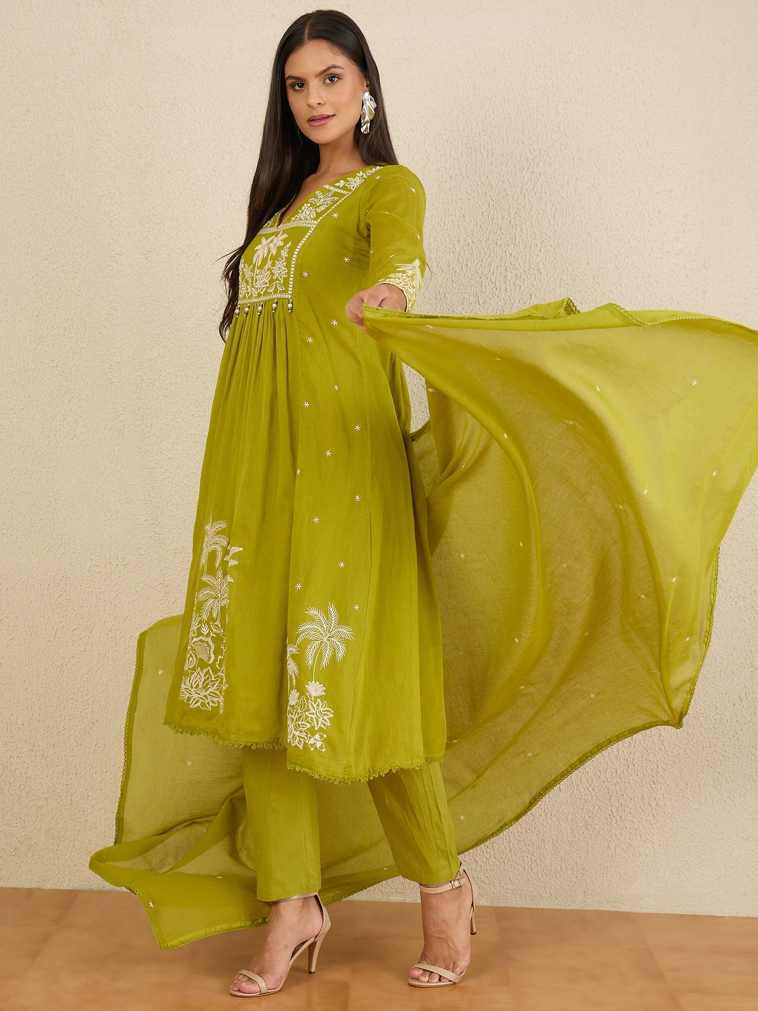 Women Ethnic Motifs Embroidered Regular Thread Work Kurta with Trousers & With Dupatta