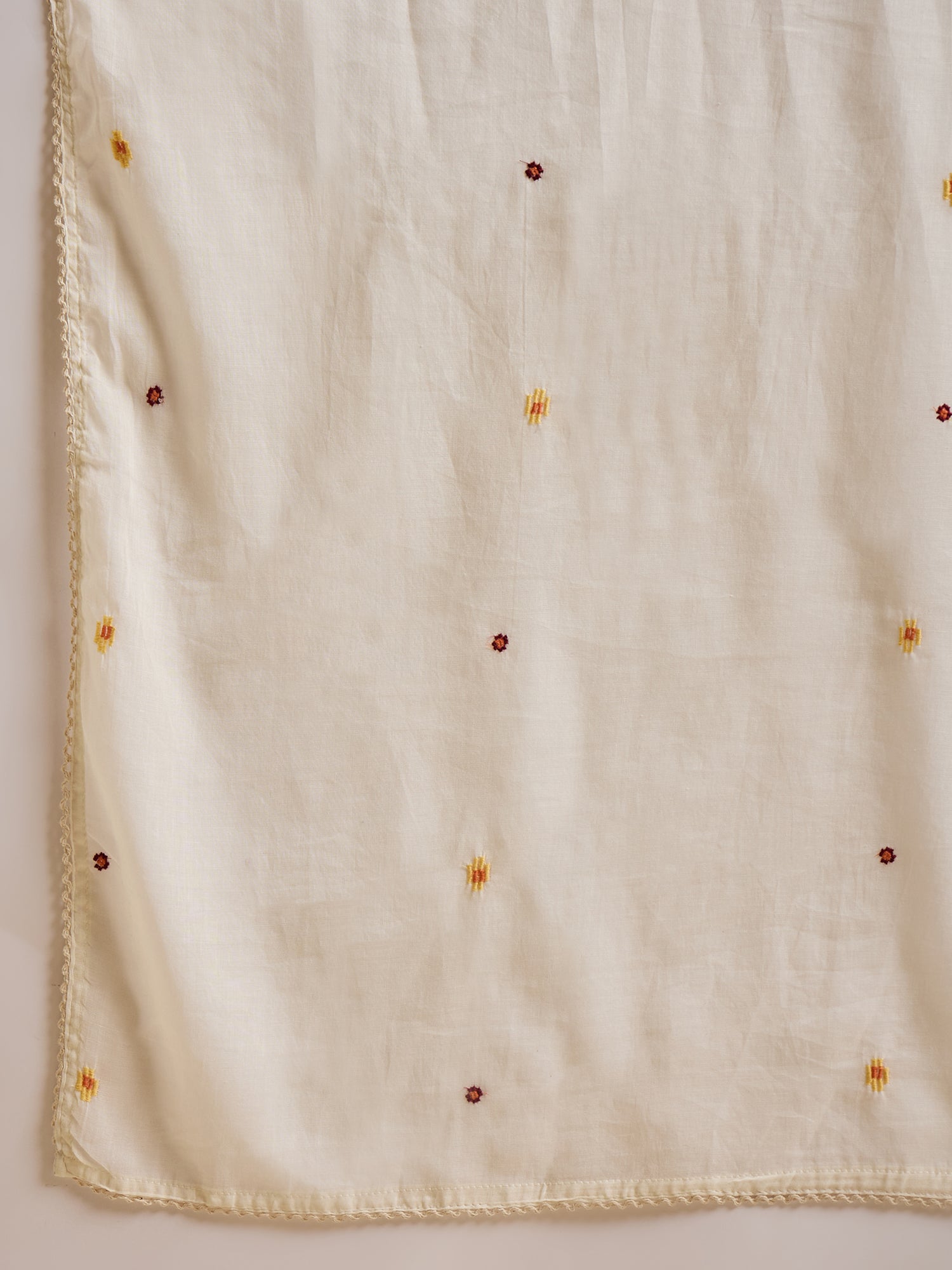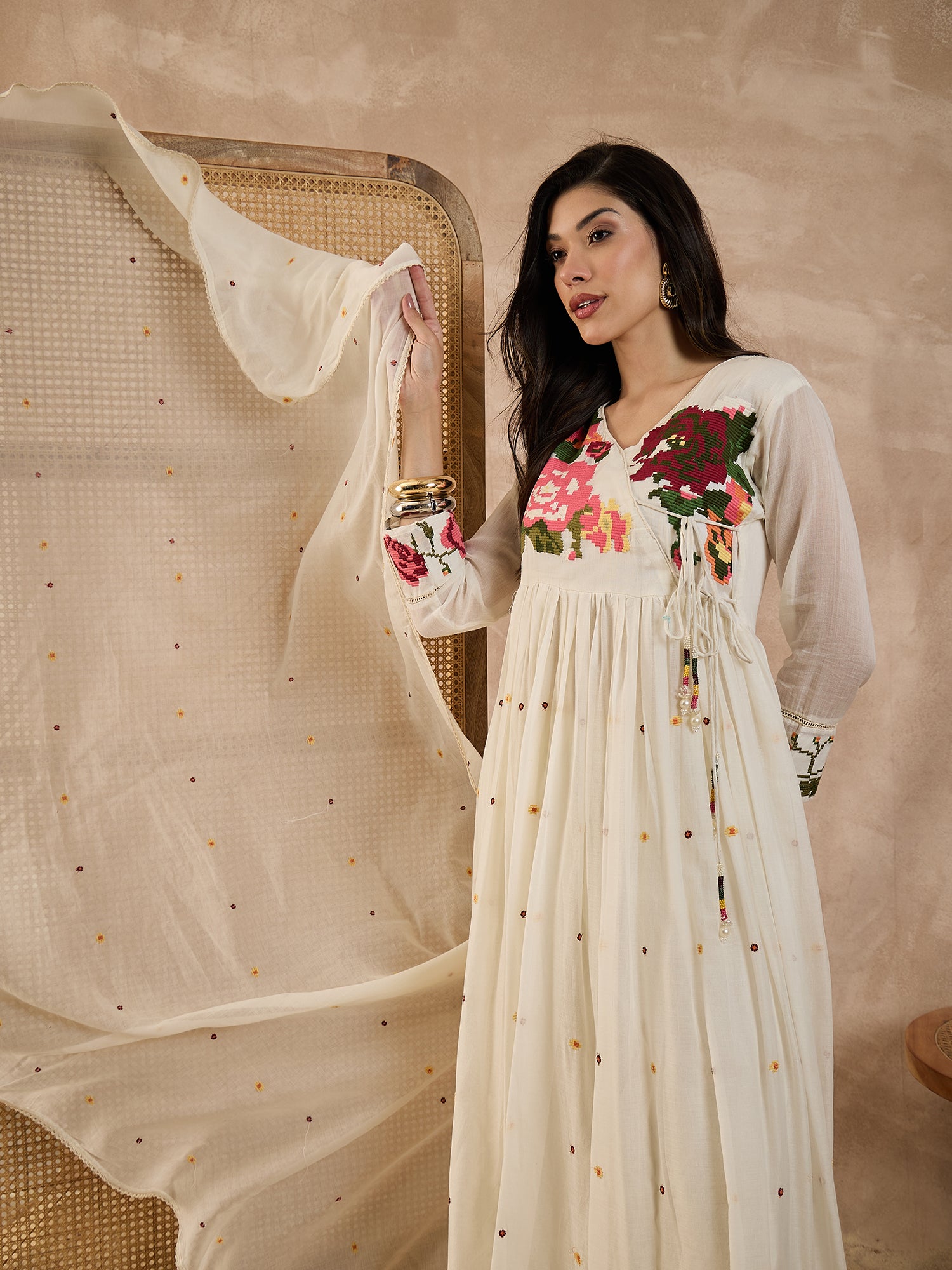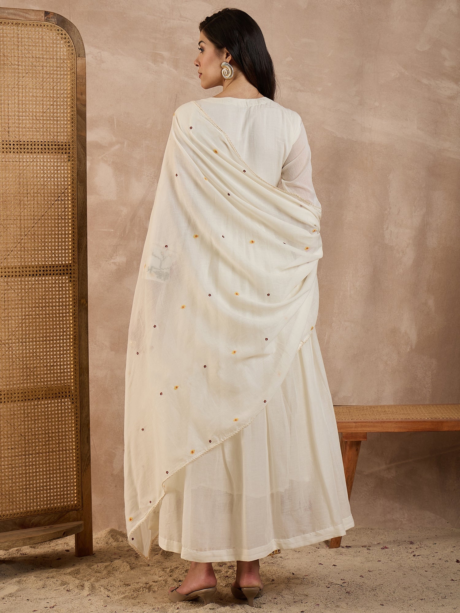 WOMEN COTTON VOILE ANARKALI KURTA EMBLISHED WITH 3D TEXTURED EMBROIDERY ON YOKE ALONG WITH TROUSER AND DUPATTA