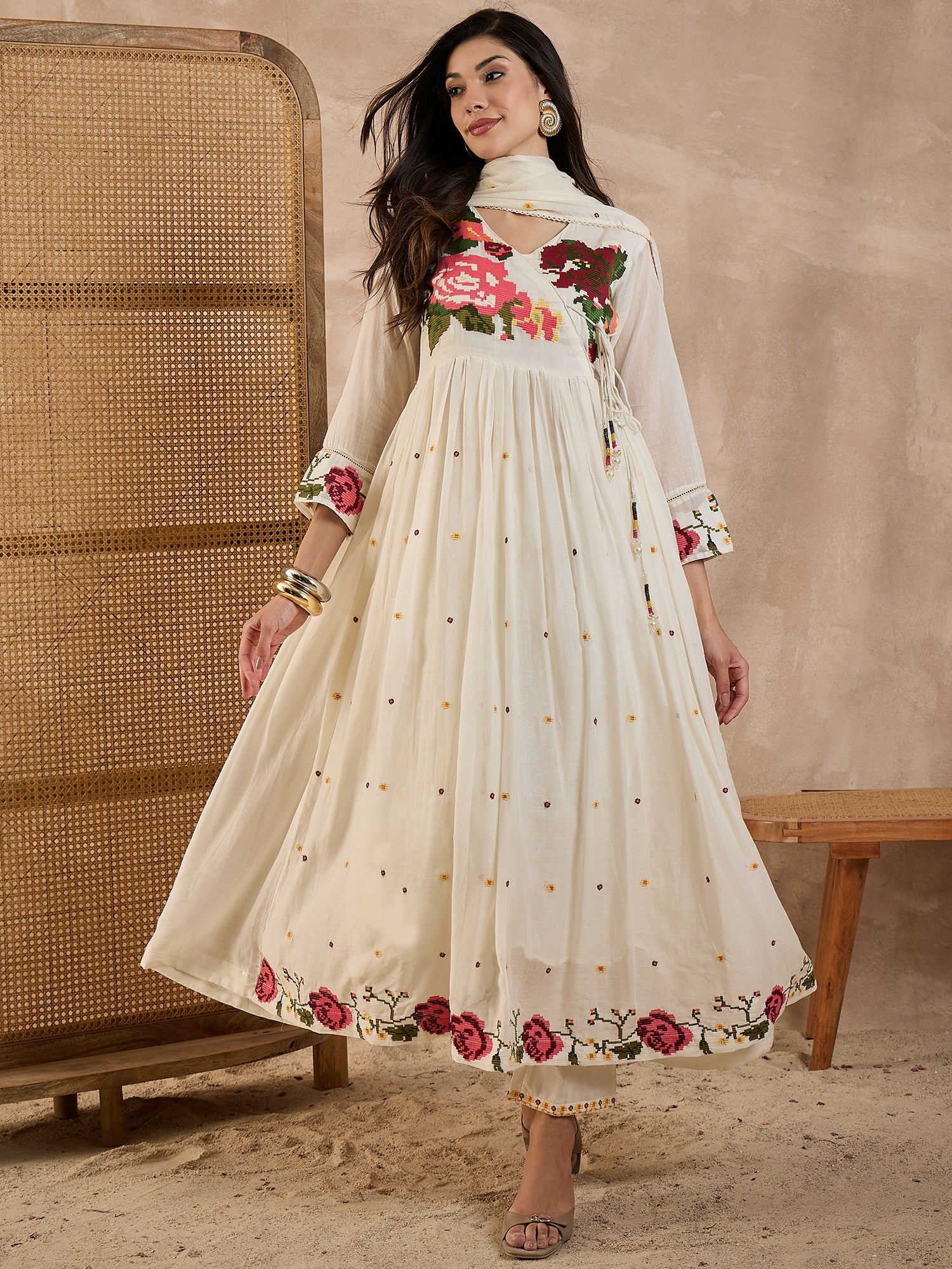 Women Ethnic Motifs Embroidered Thread Work Anarkali Kurta with Trousers & Dupatta