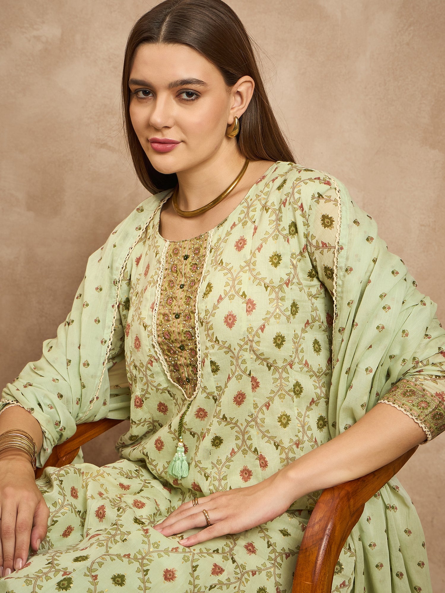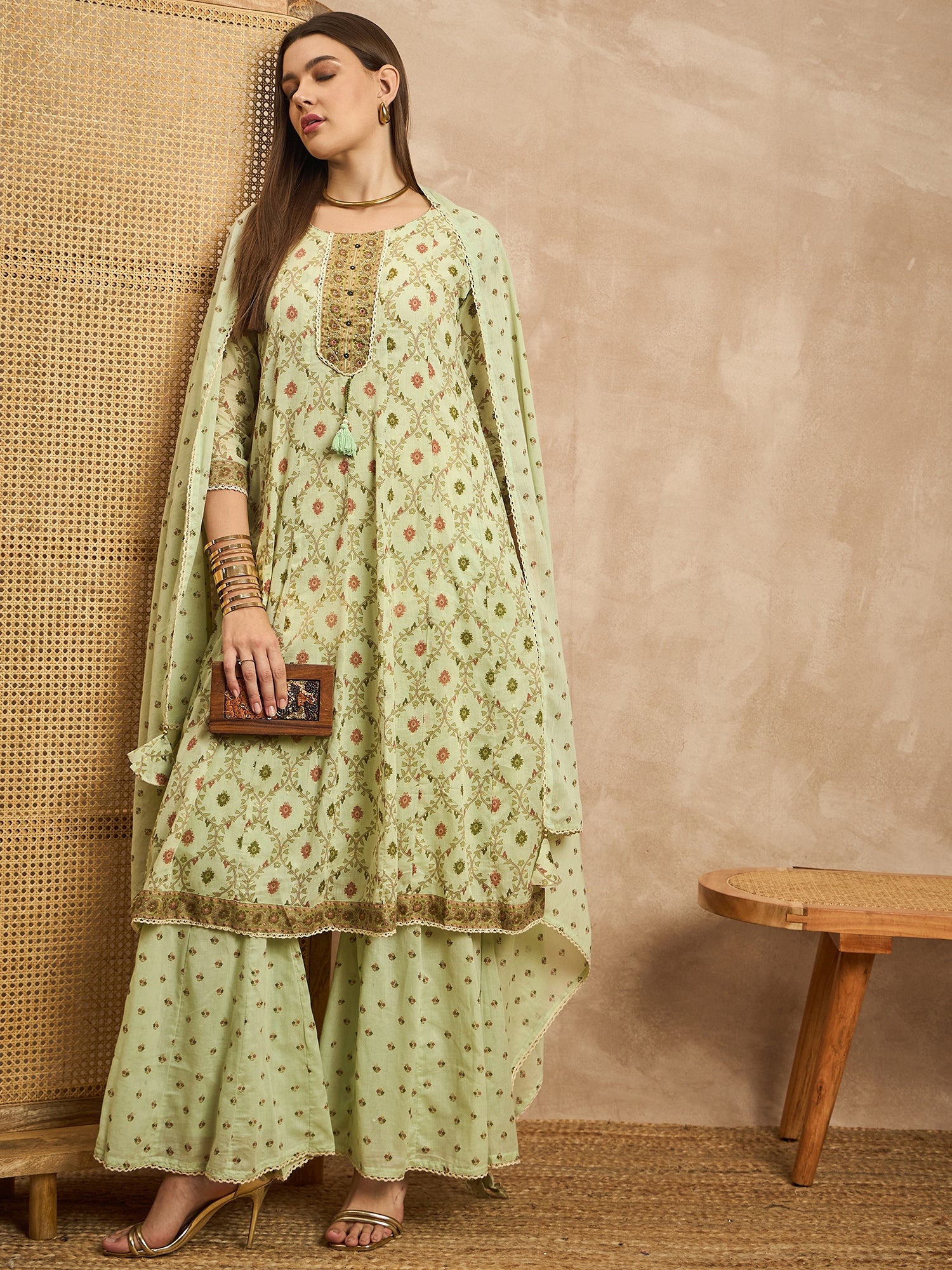 Women Ethnic Motifs Printed Angrakha Beads and Stones Kurta with Sharara & With Dupatta