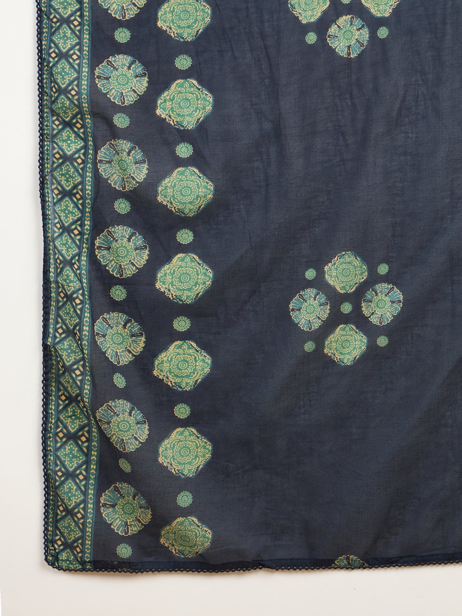 Women Ethnic Motifs Printed Angrakha Beads and Stones Kurta with Trousers & With Dupatta