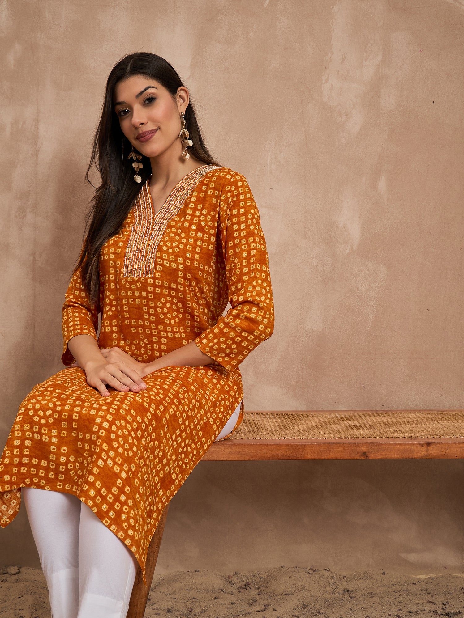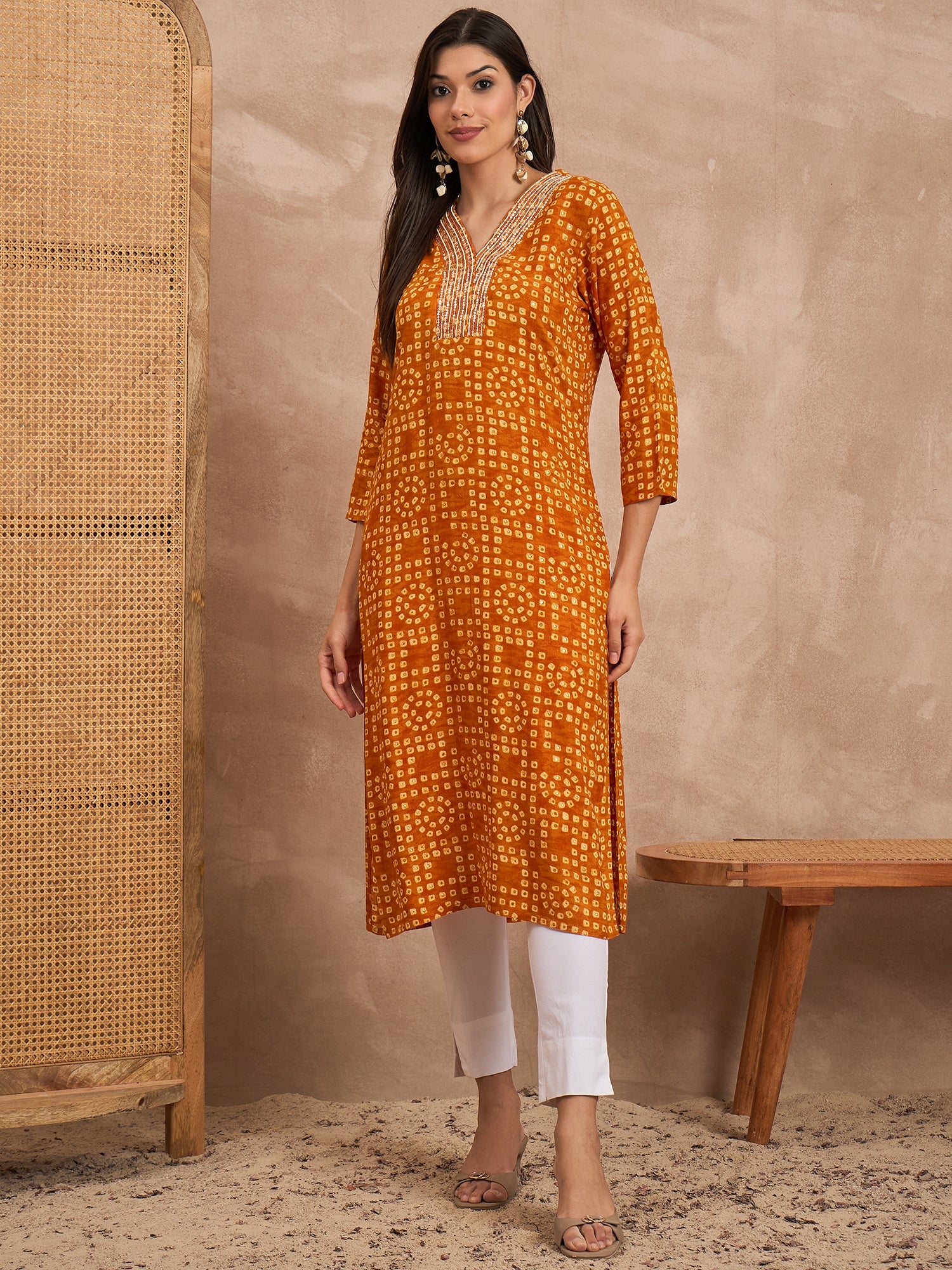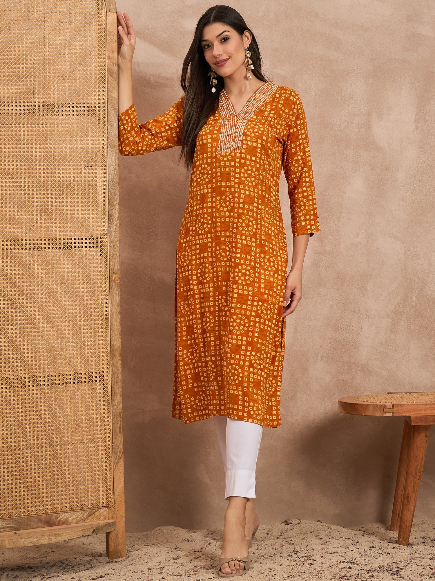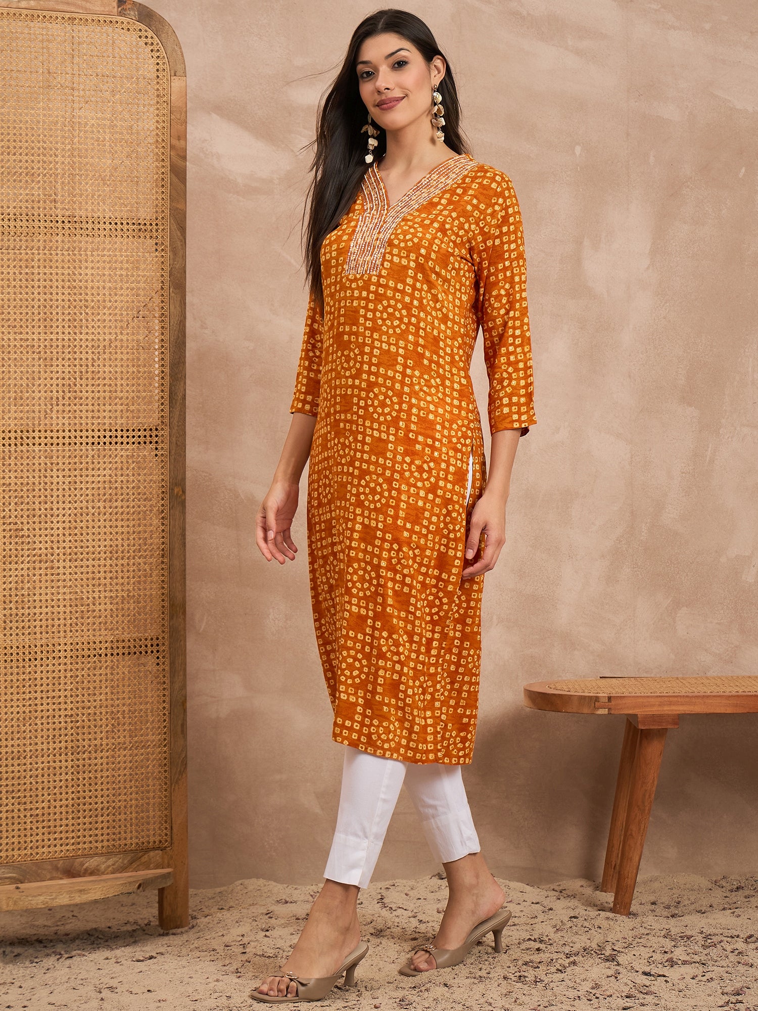 Orange Straight kurta for Women