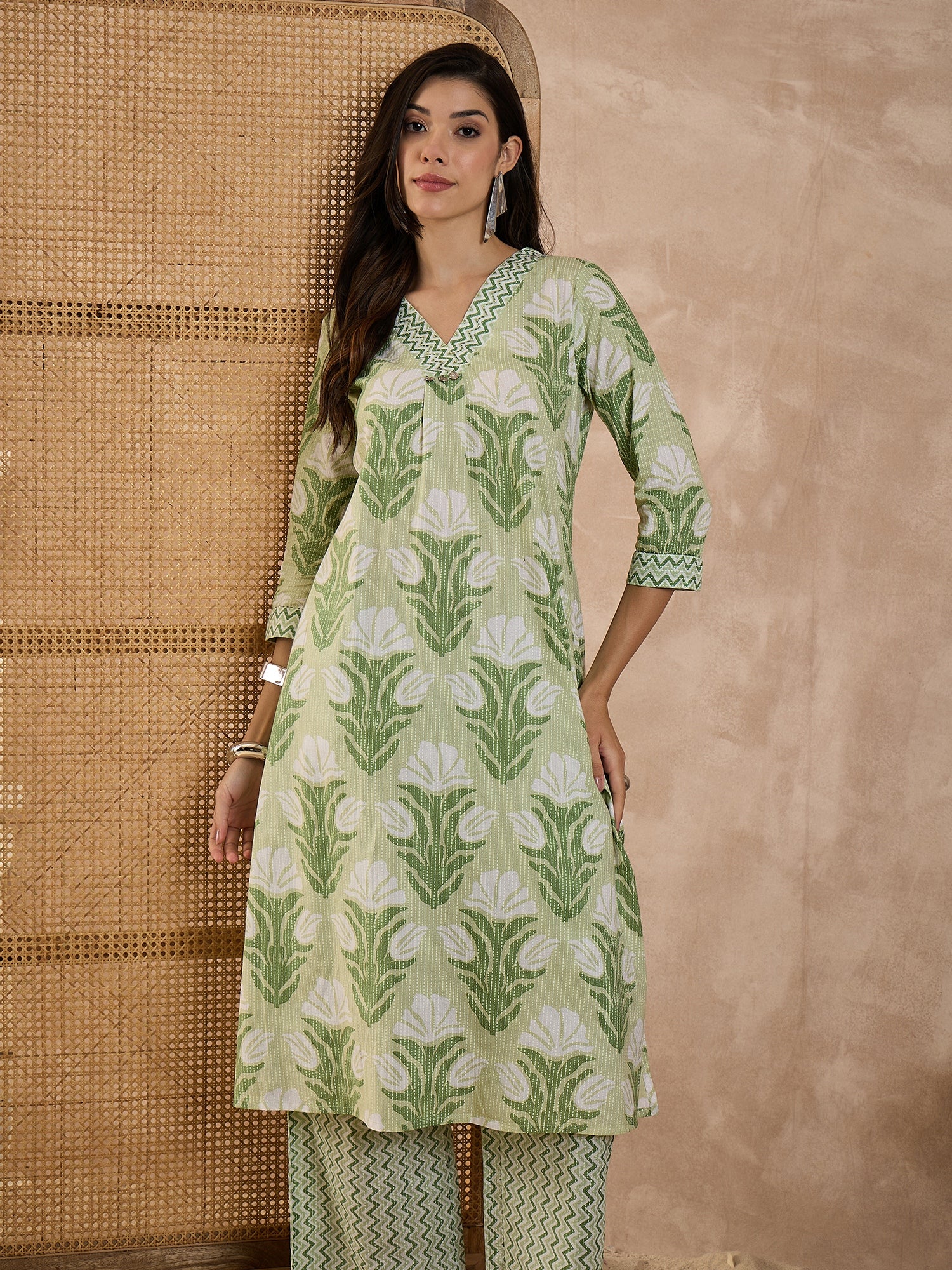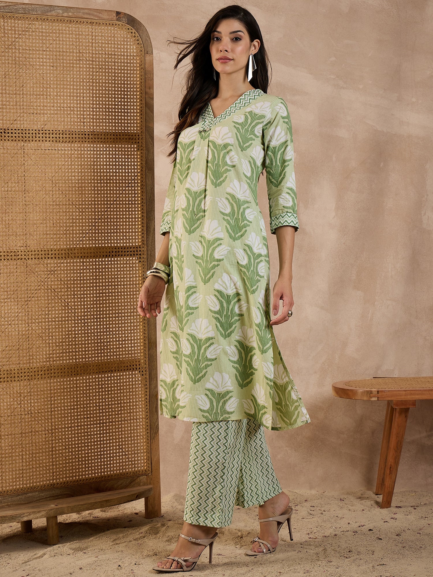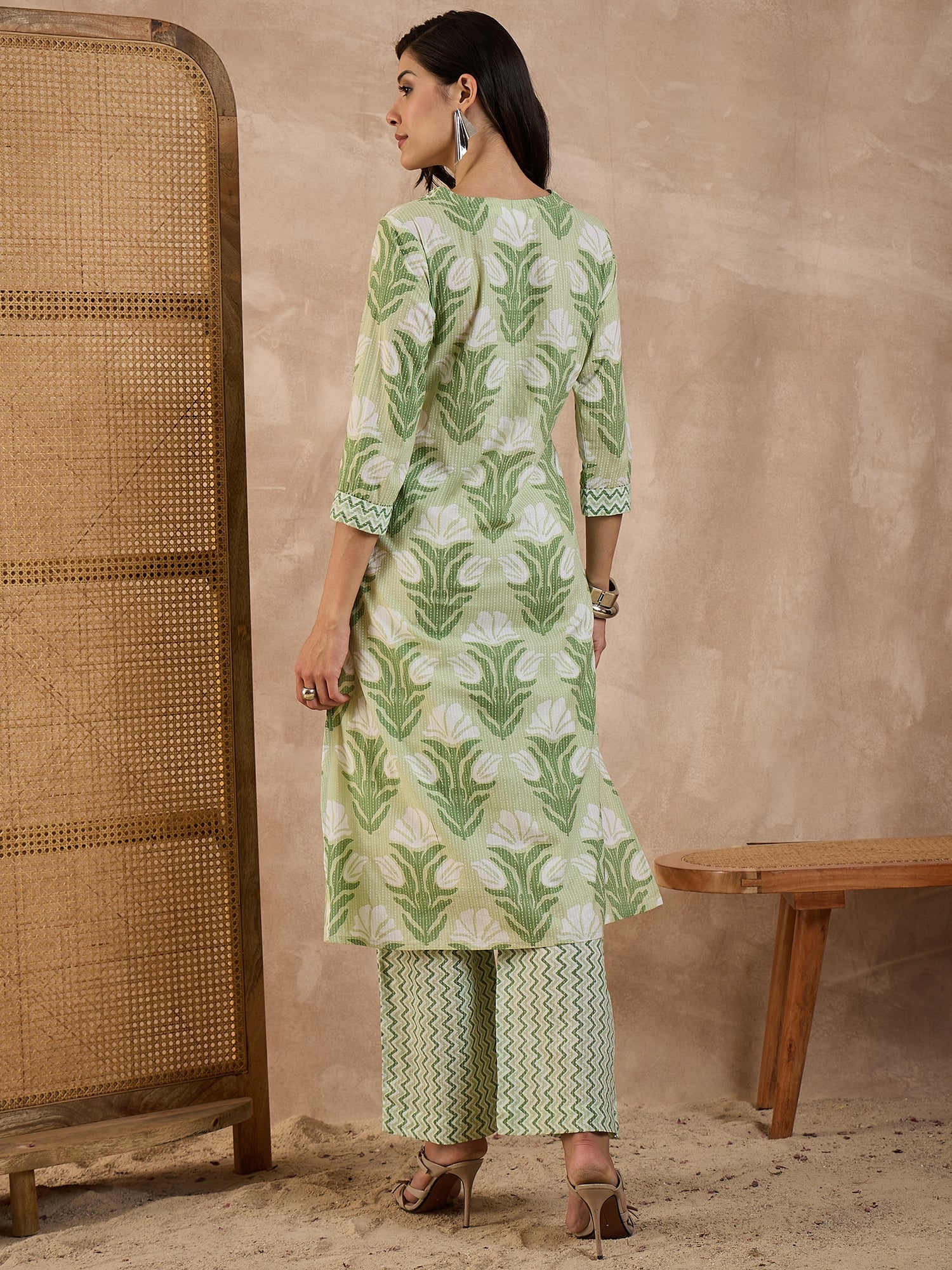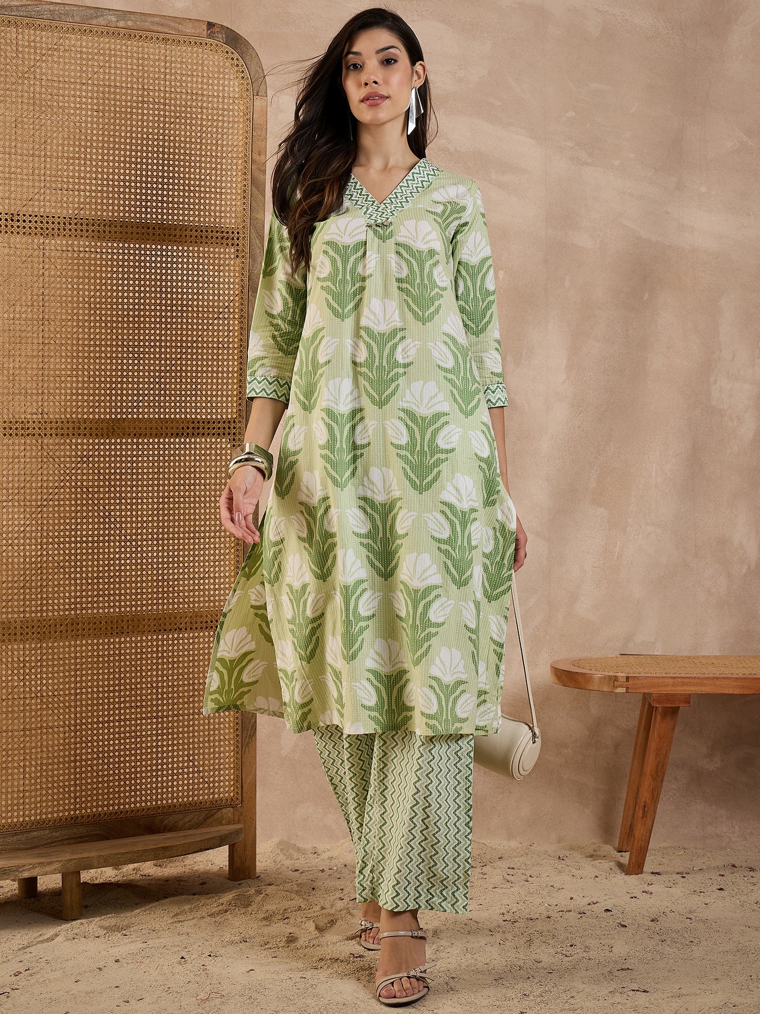 Women Ethnic Motifs Printed Pure Cotton A-Line Kurta with Palazzo