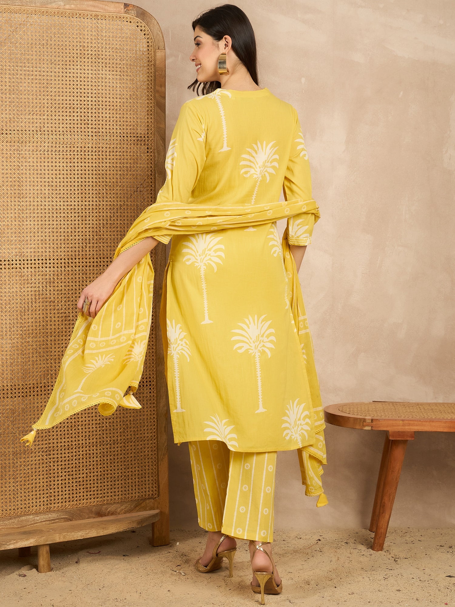 Women Ethnic Motifs Printed Regular Mirror Work Pure Cotton Kurta with Trousers & With Dupatta