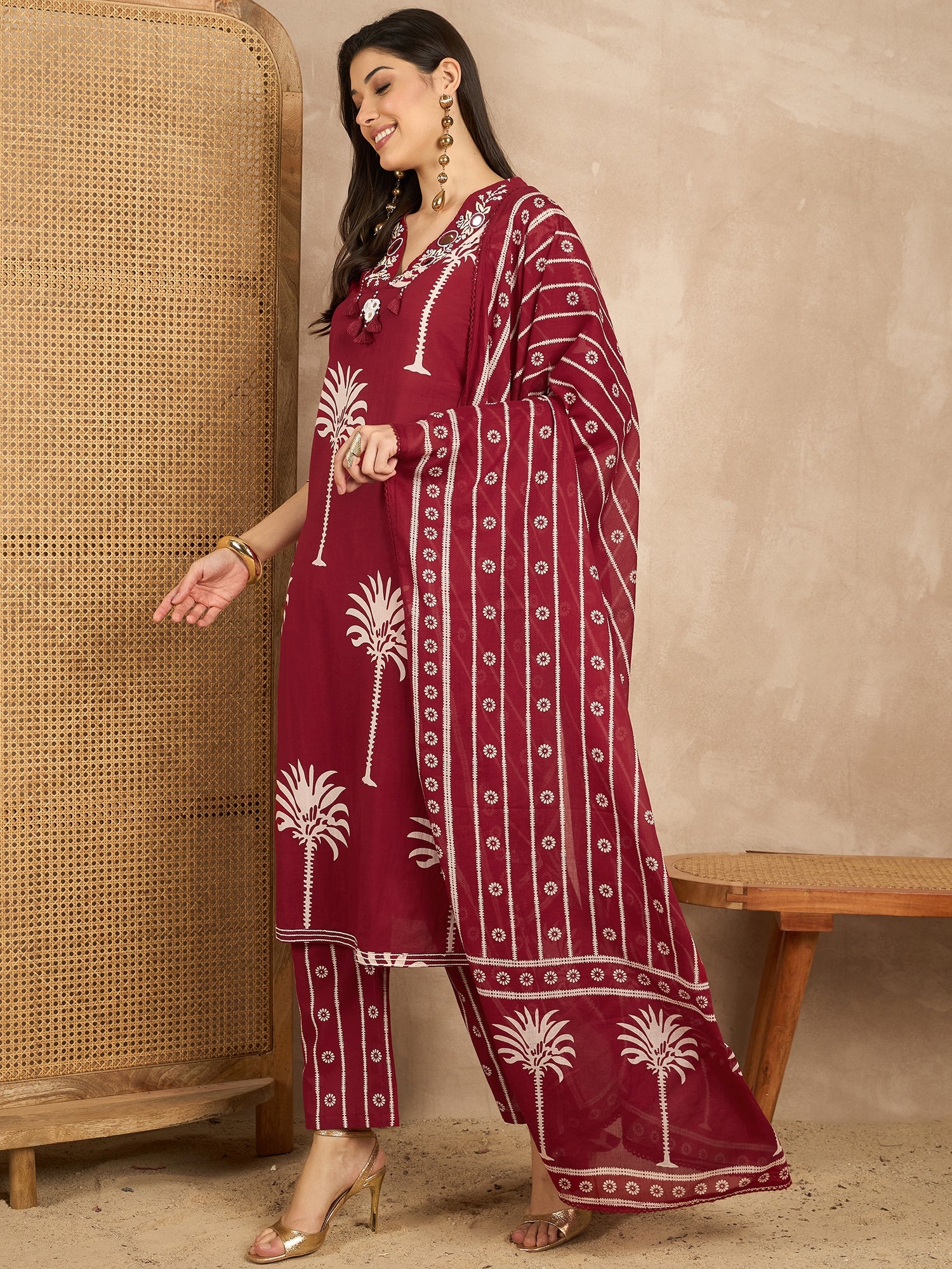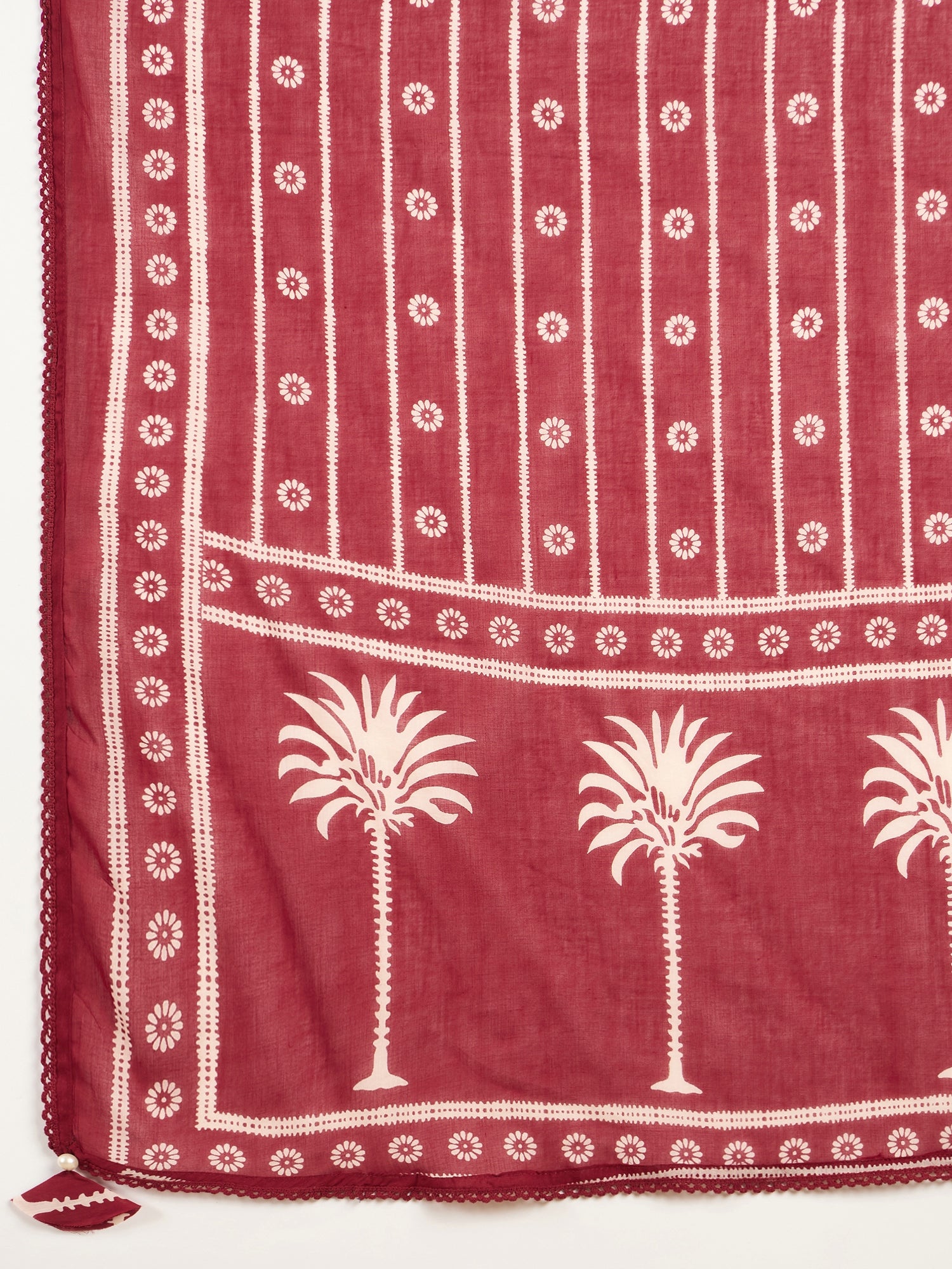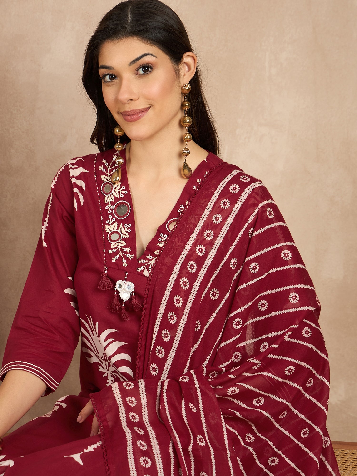 Women Ethnic Motifs Printed Regular Mirror Work Pure Cotton Kurta with Trousers & With Dupatta