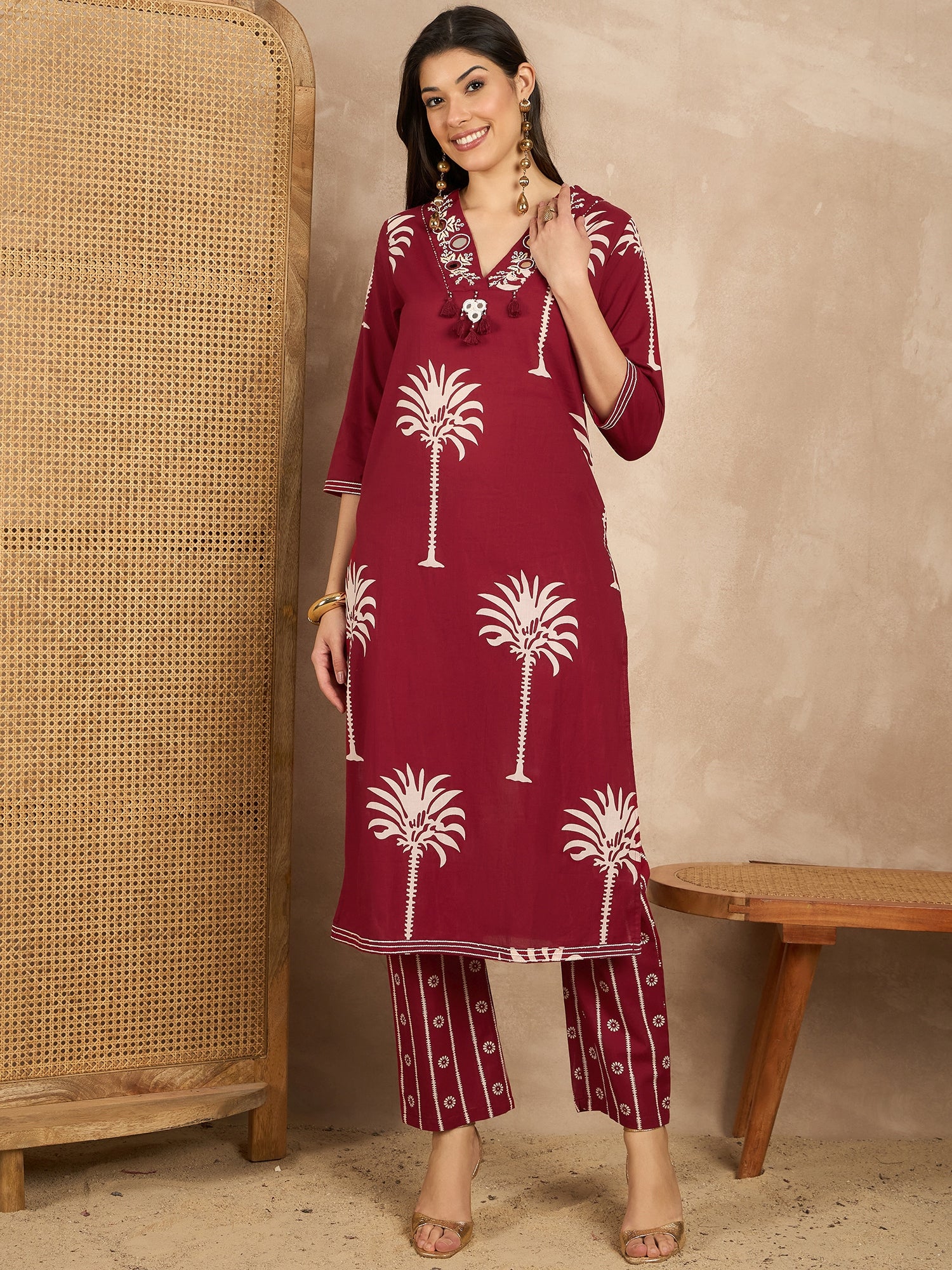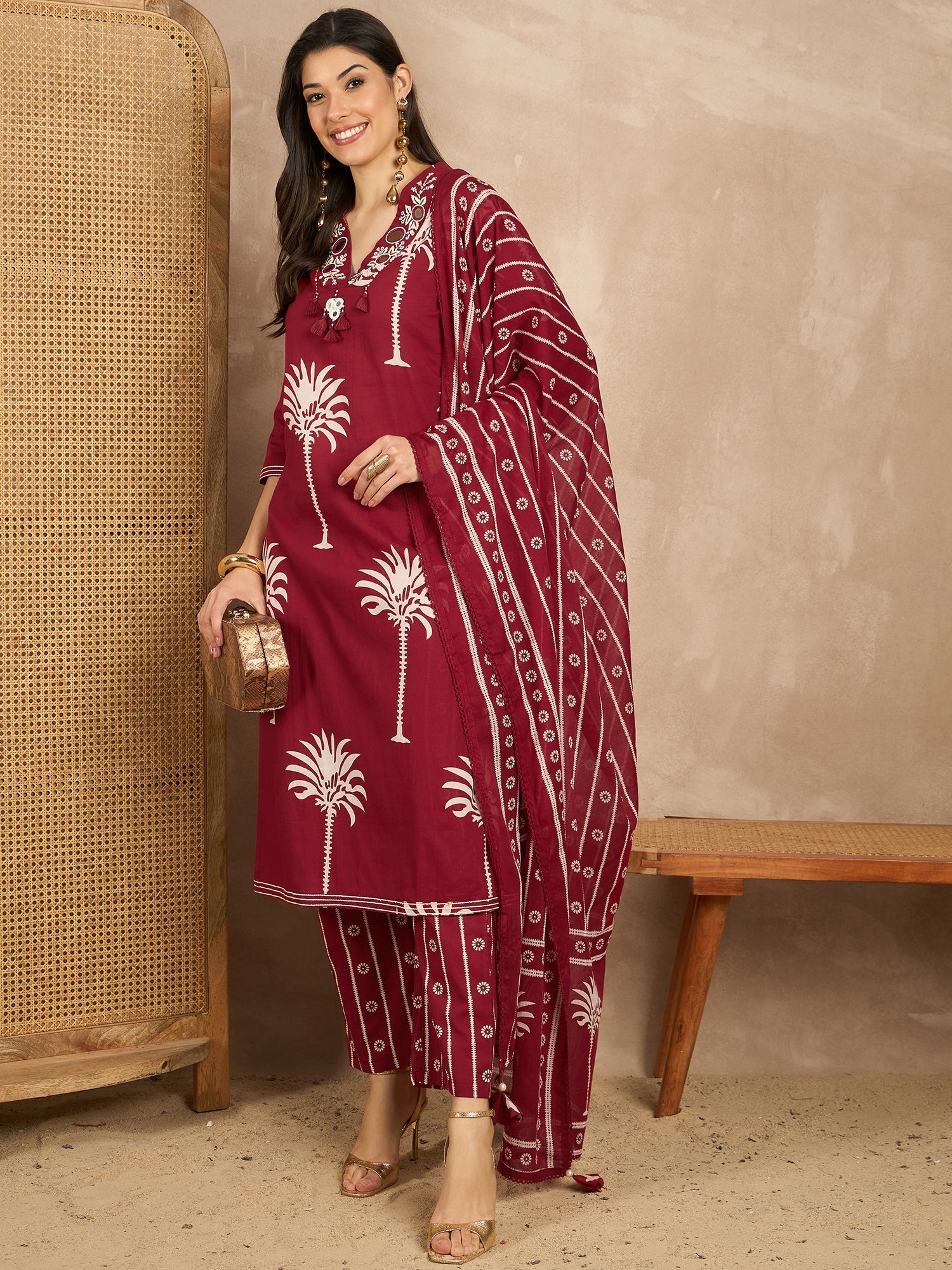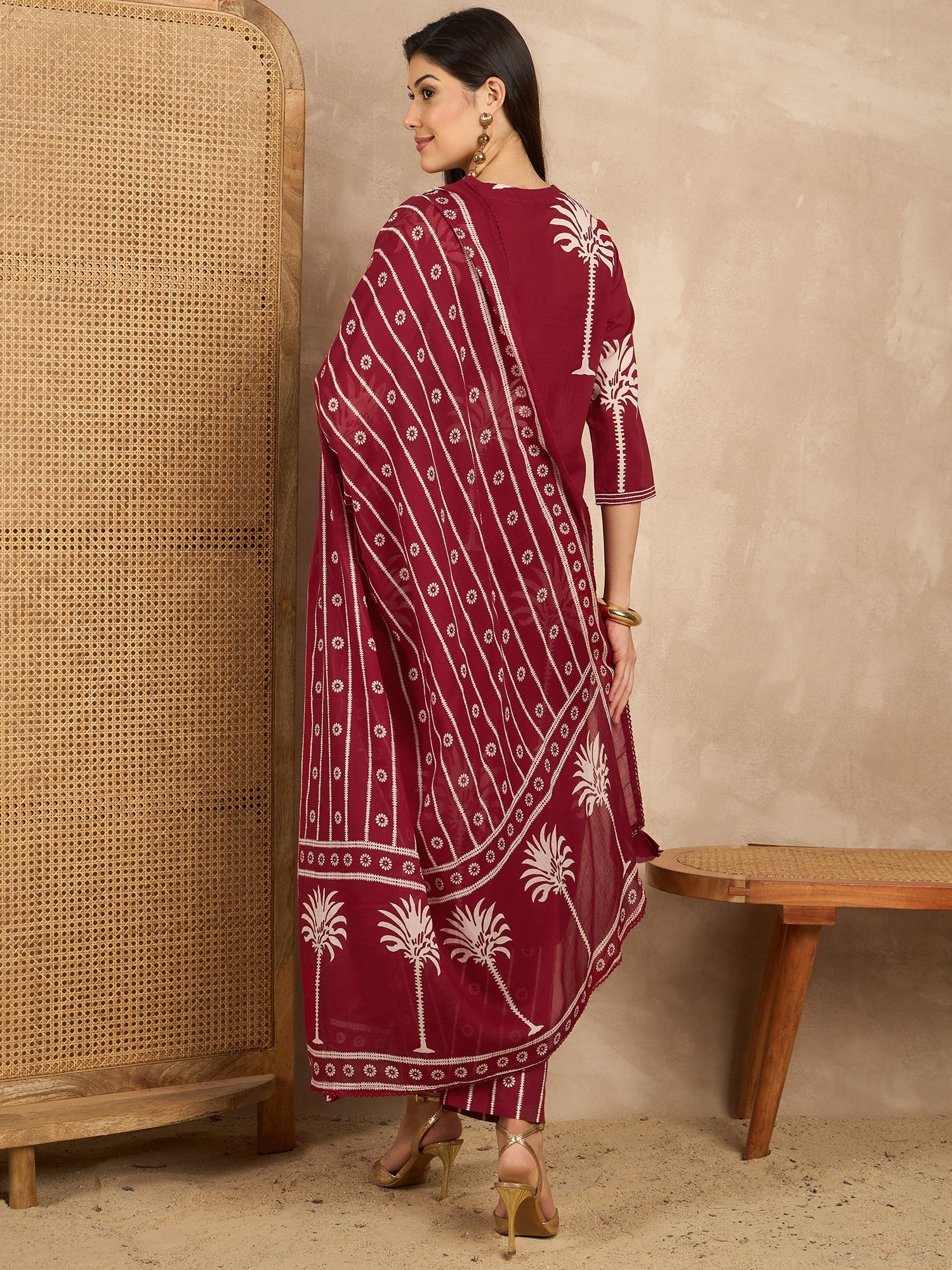 Women Ethnic Motifs Printed Regular Mirror Work Pure Cotton Kurta with Trousers & With Dupatta