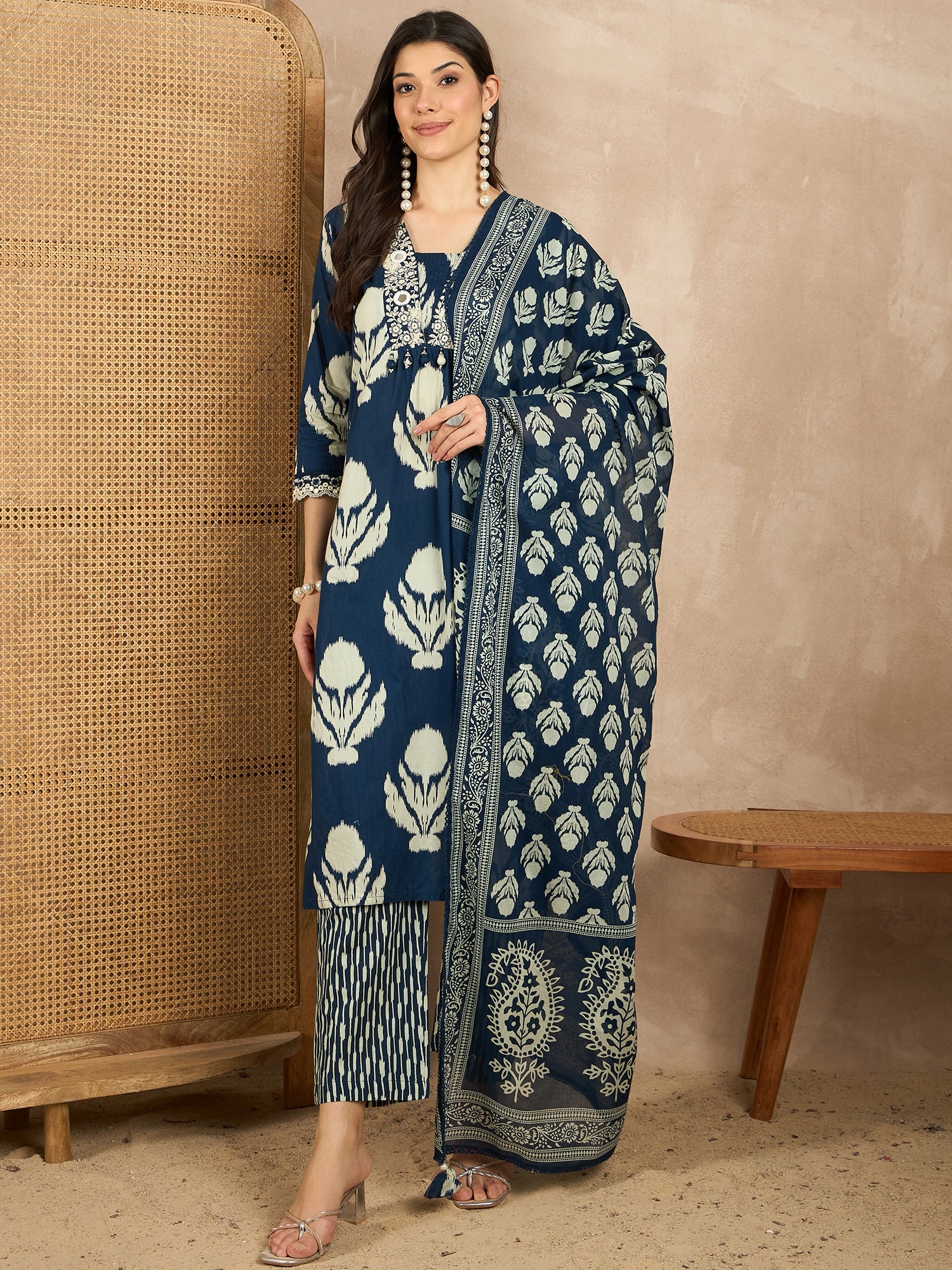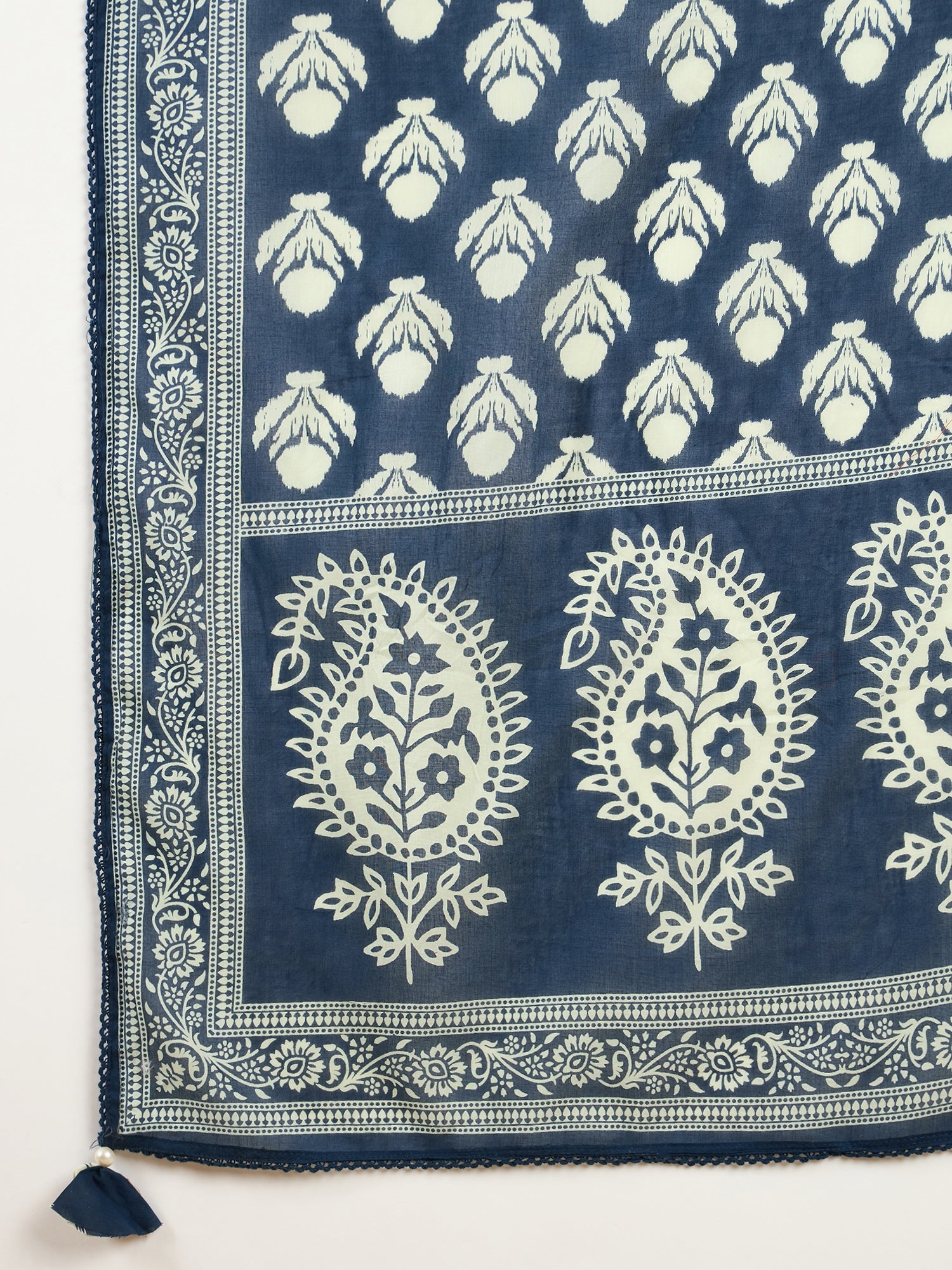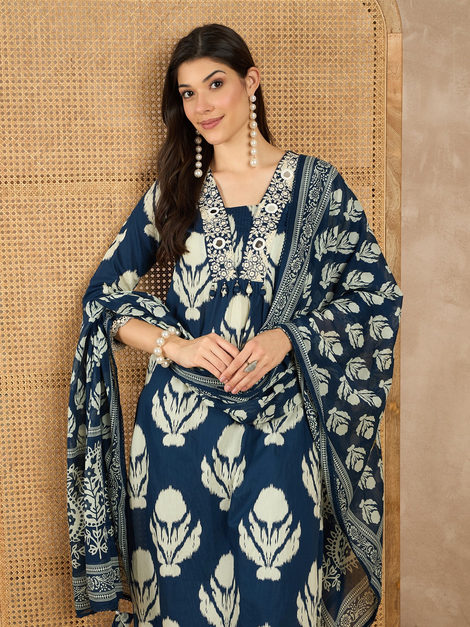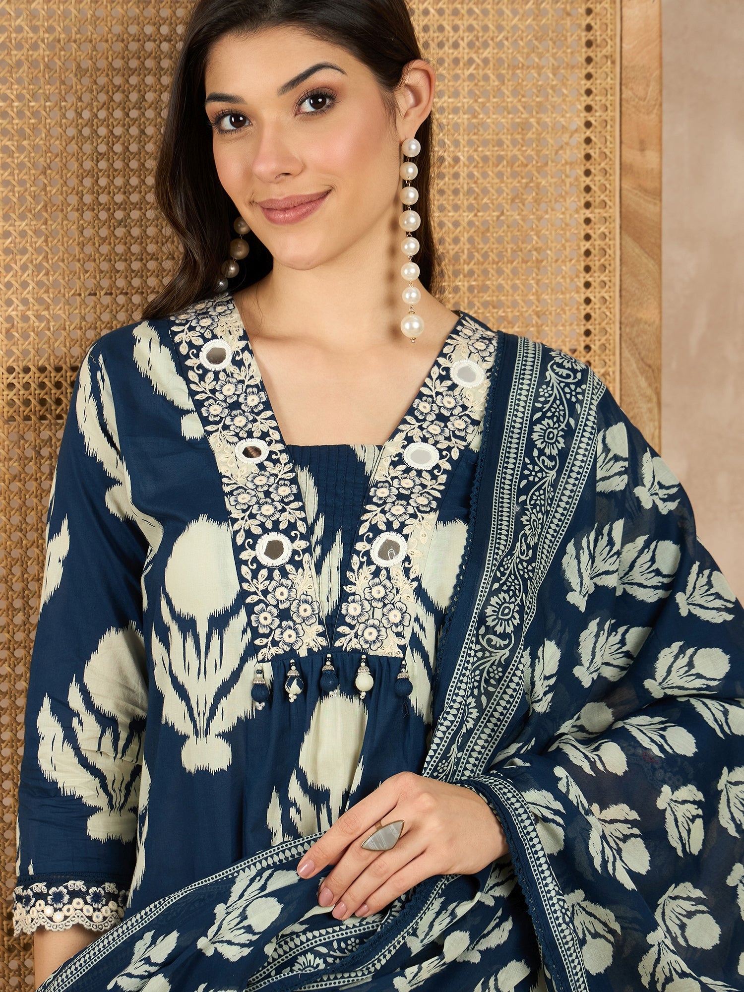 Women Ethnic Motifs Printed Regular Mirror Work Pure Cotton Kurta with Trousers & With Dupatta