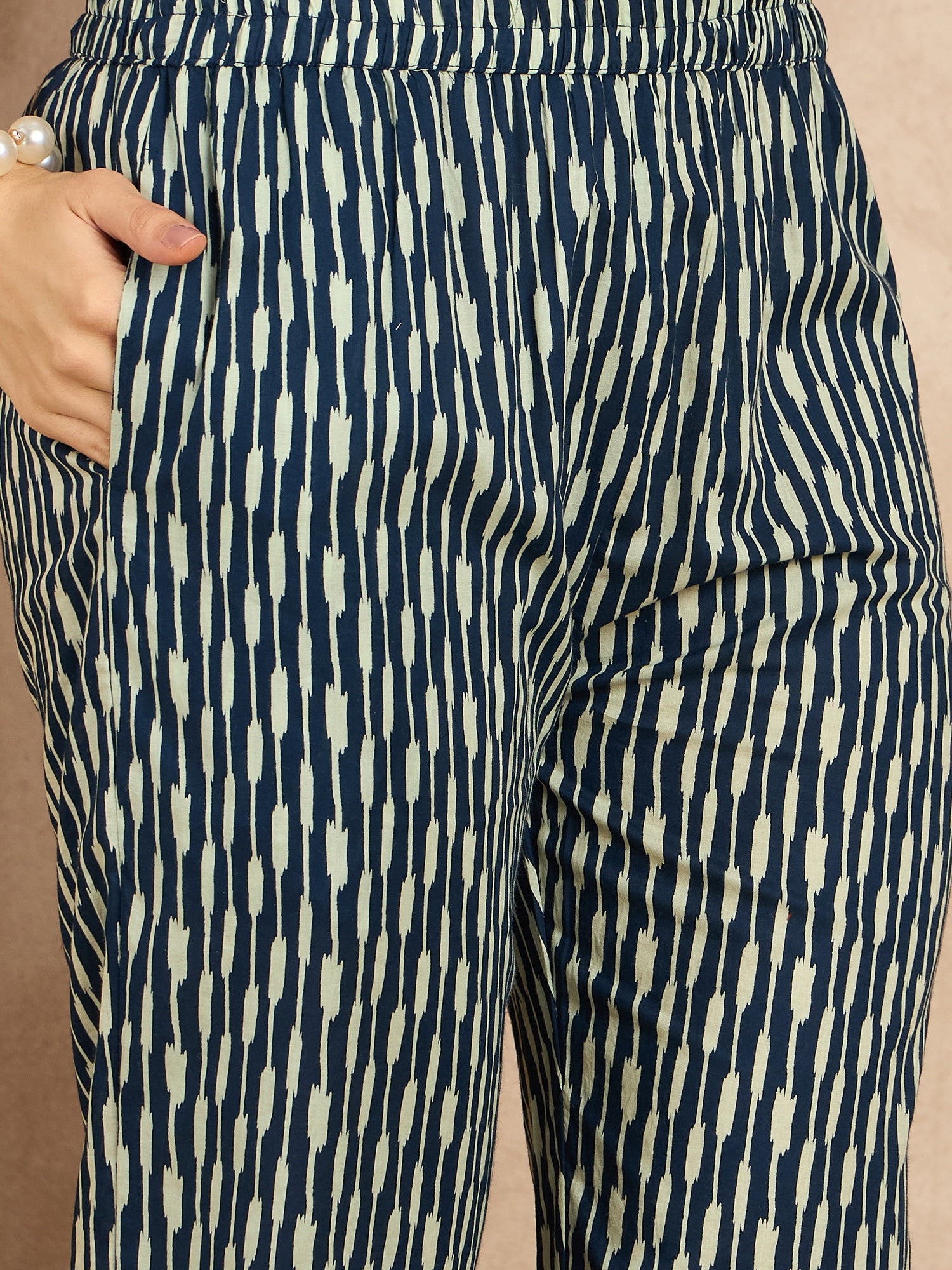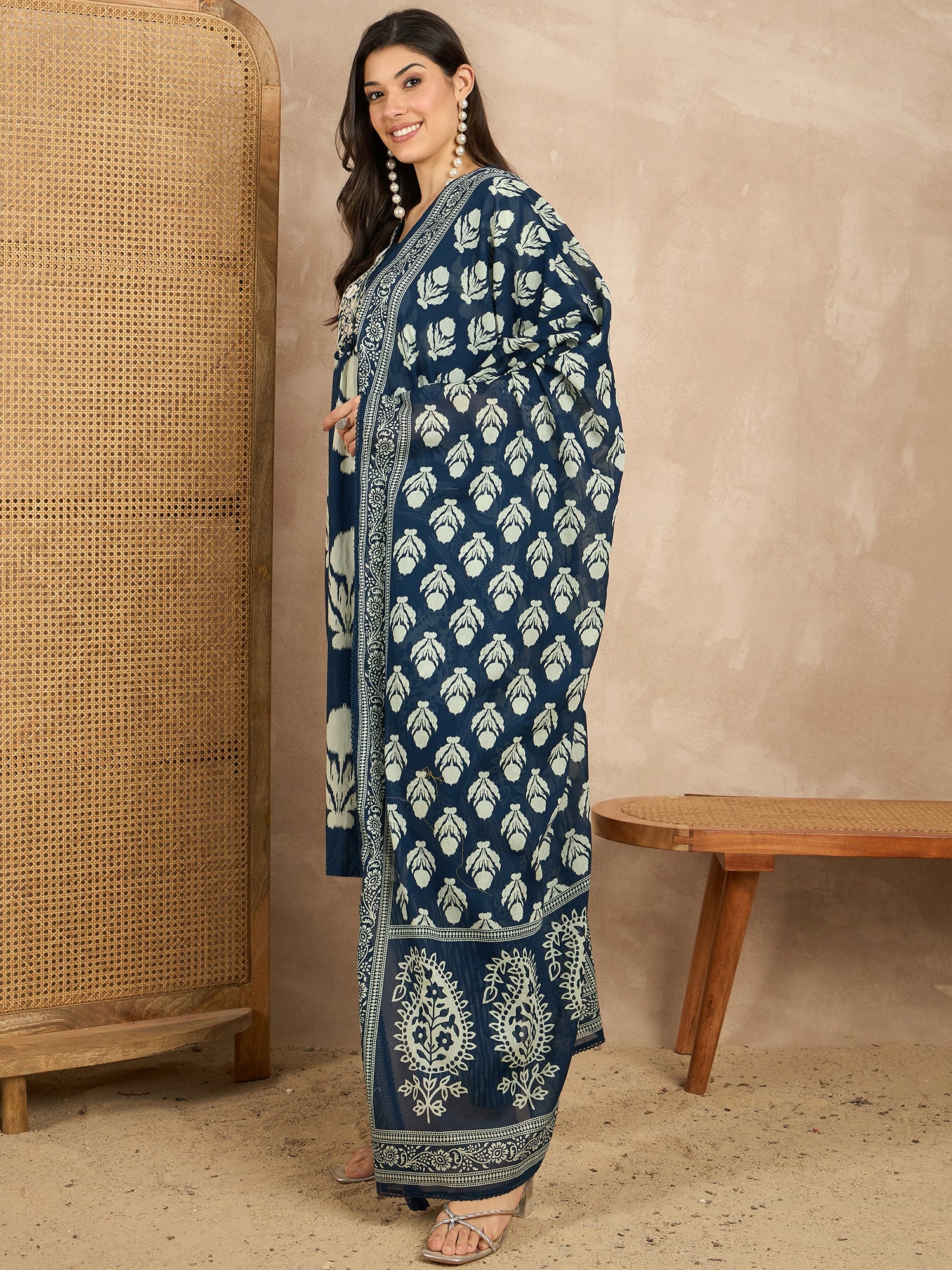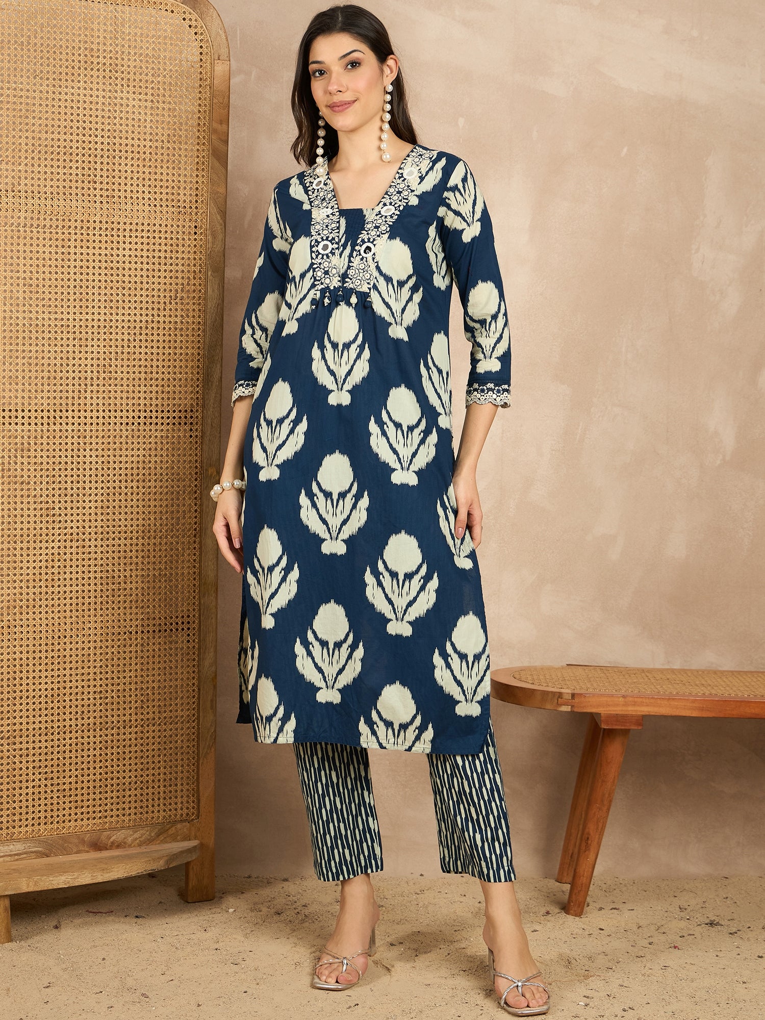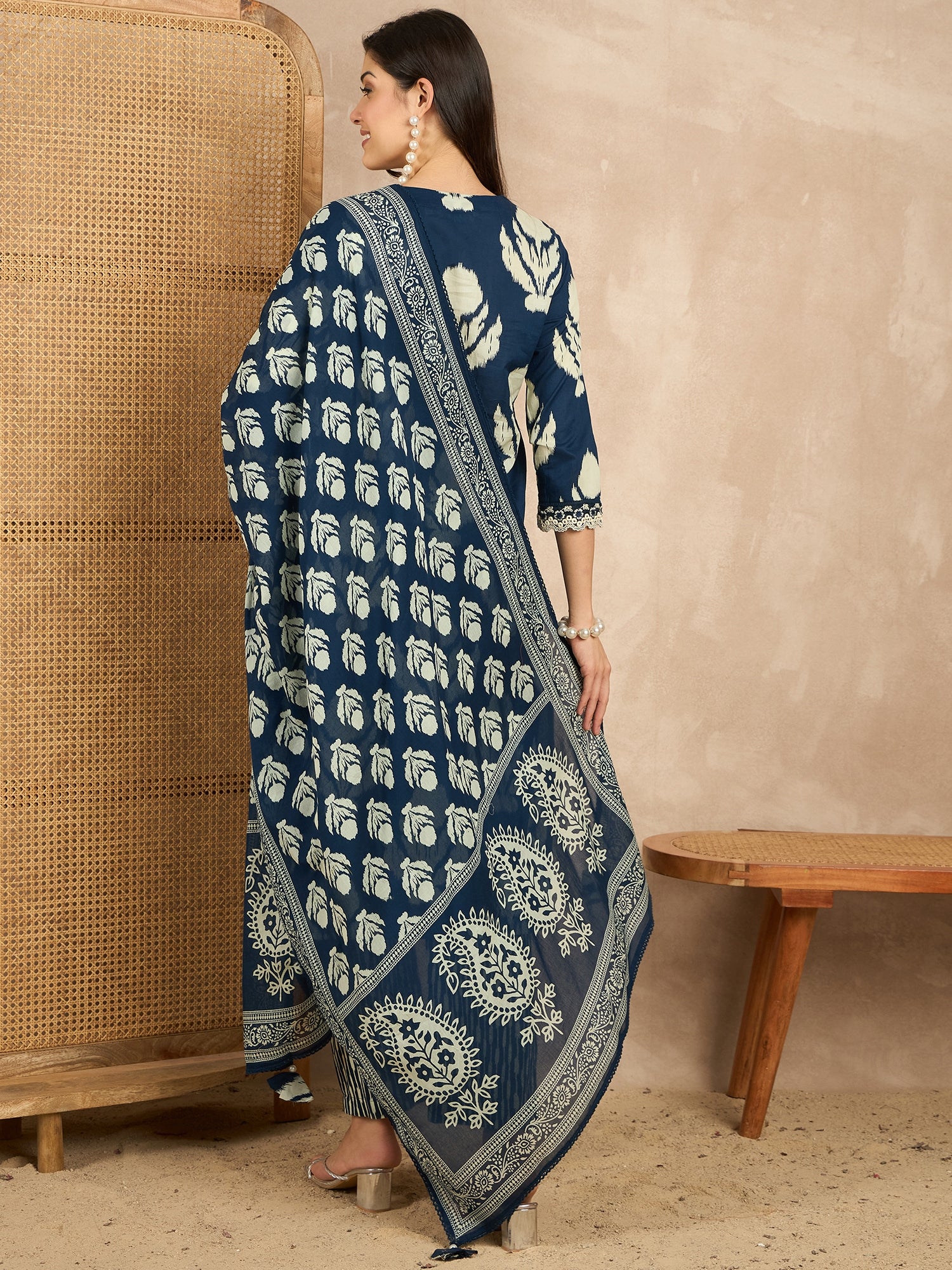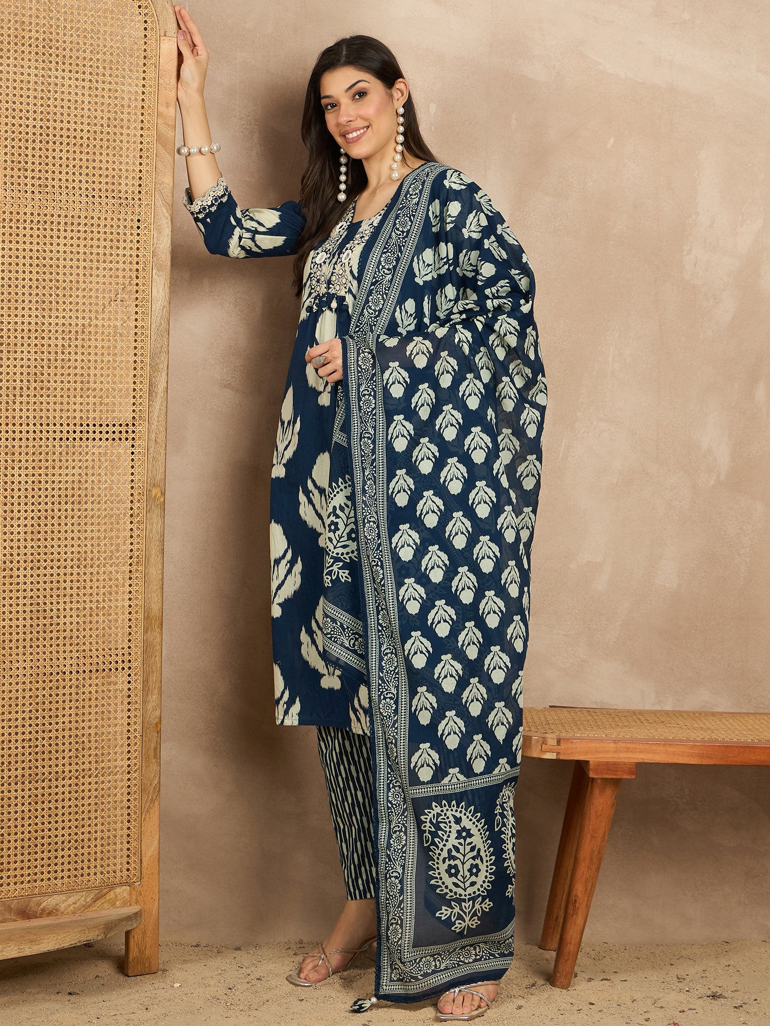 Women Ethnic Motifs Printed Regular Mirror Work Pure Cotton Kurta with Trousers & With Dupatta
