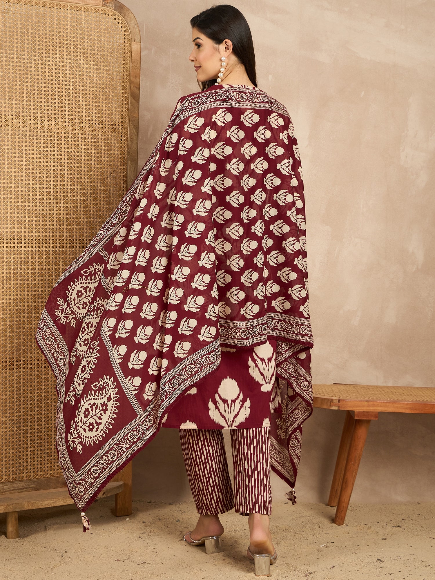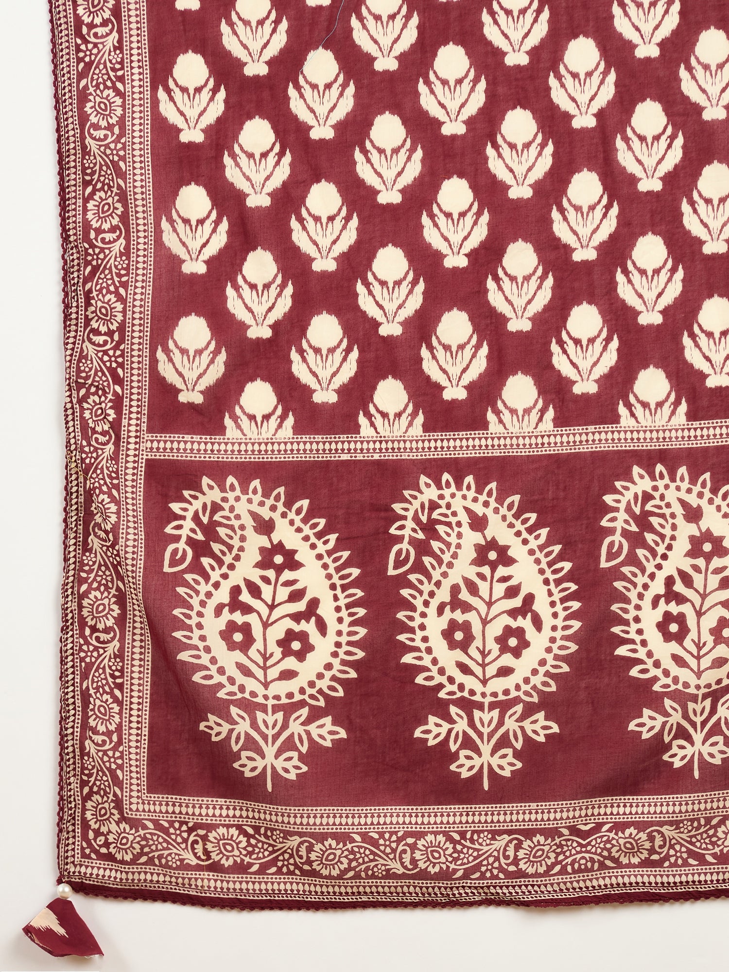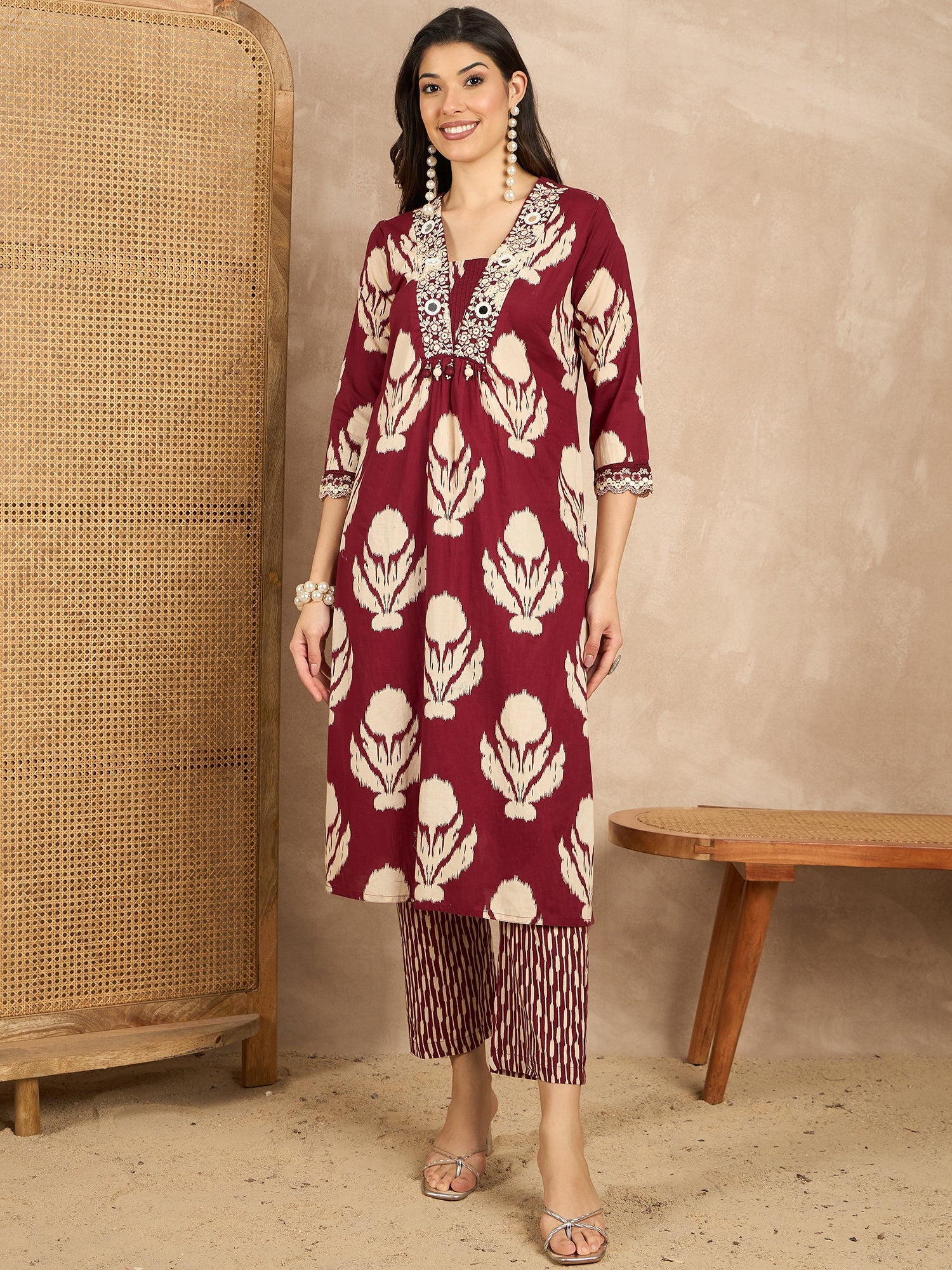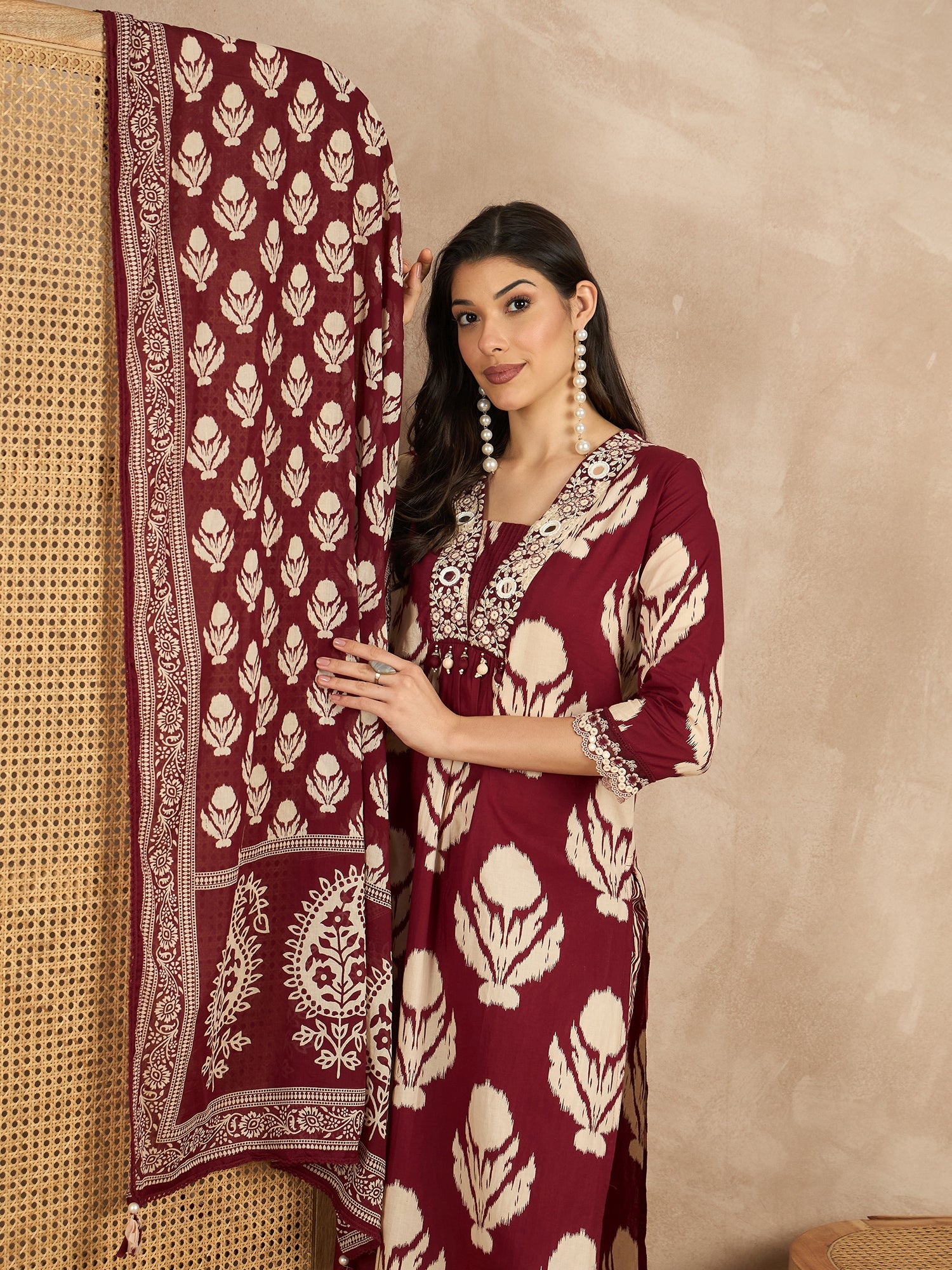 Women Ethnic Motifs Printed Regular Mirror Work Pure Cotton Kurta with Trousers & With Dupatta