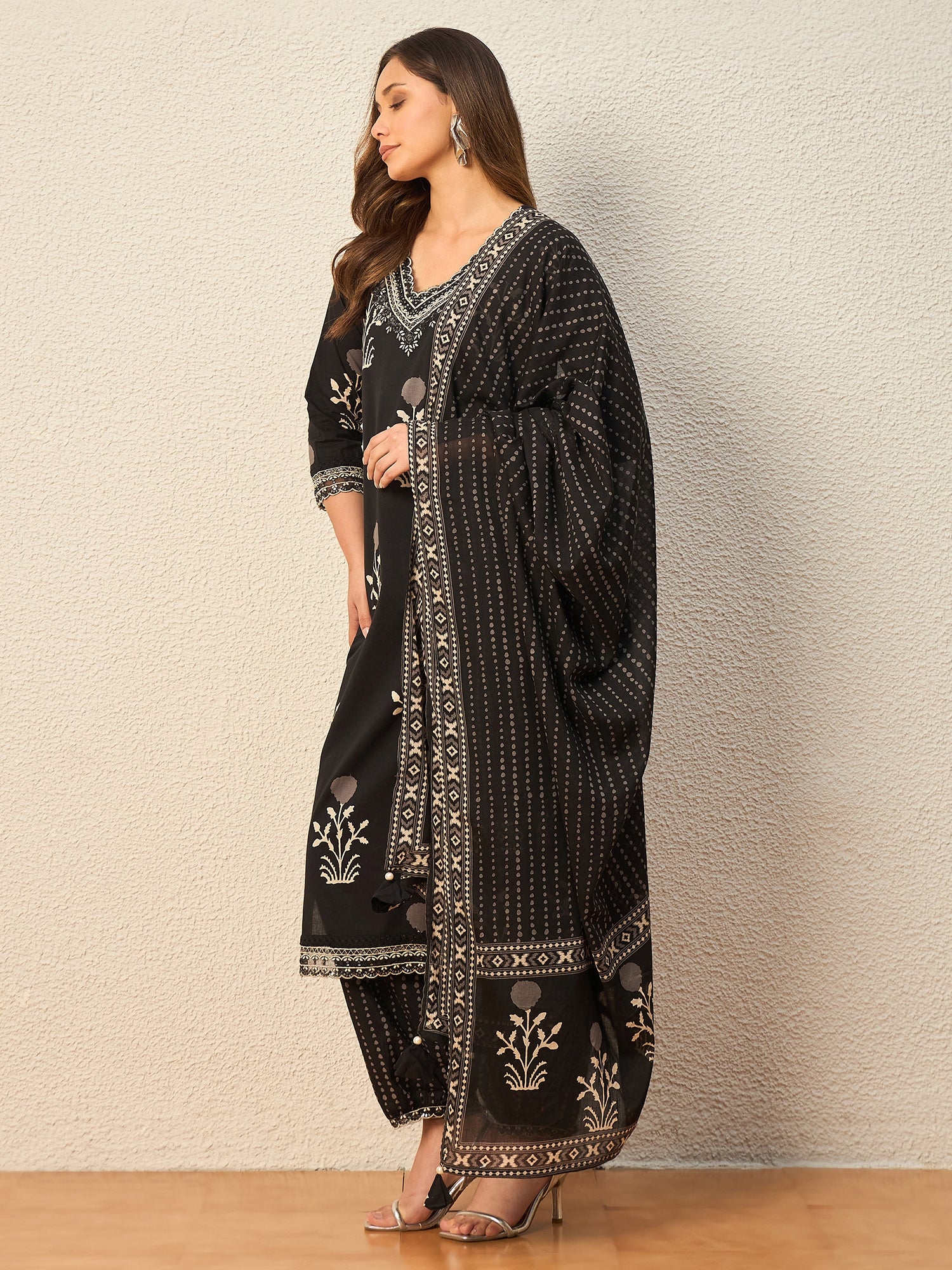 Women Ethnic Motifs Printed Regular Thread Work Pure Cotton Kurta with Patiala & With Dupatta