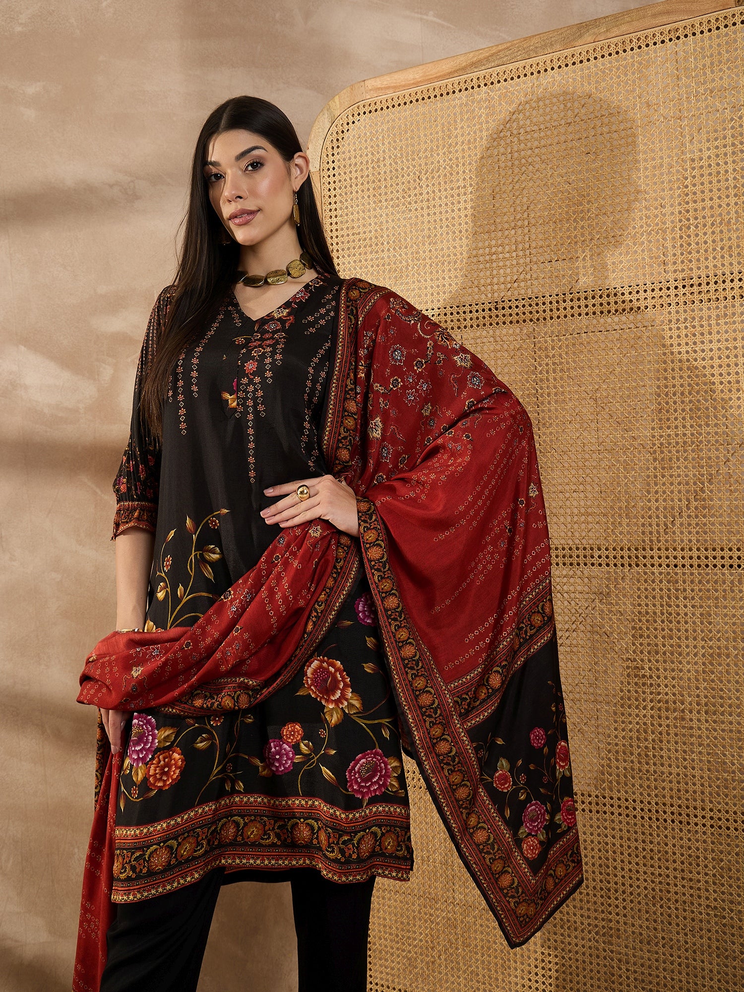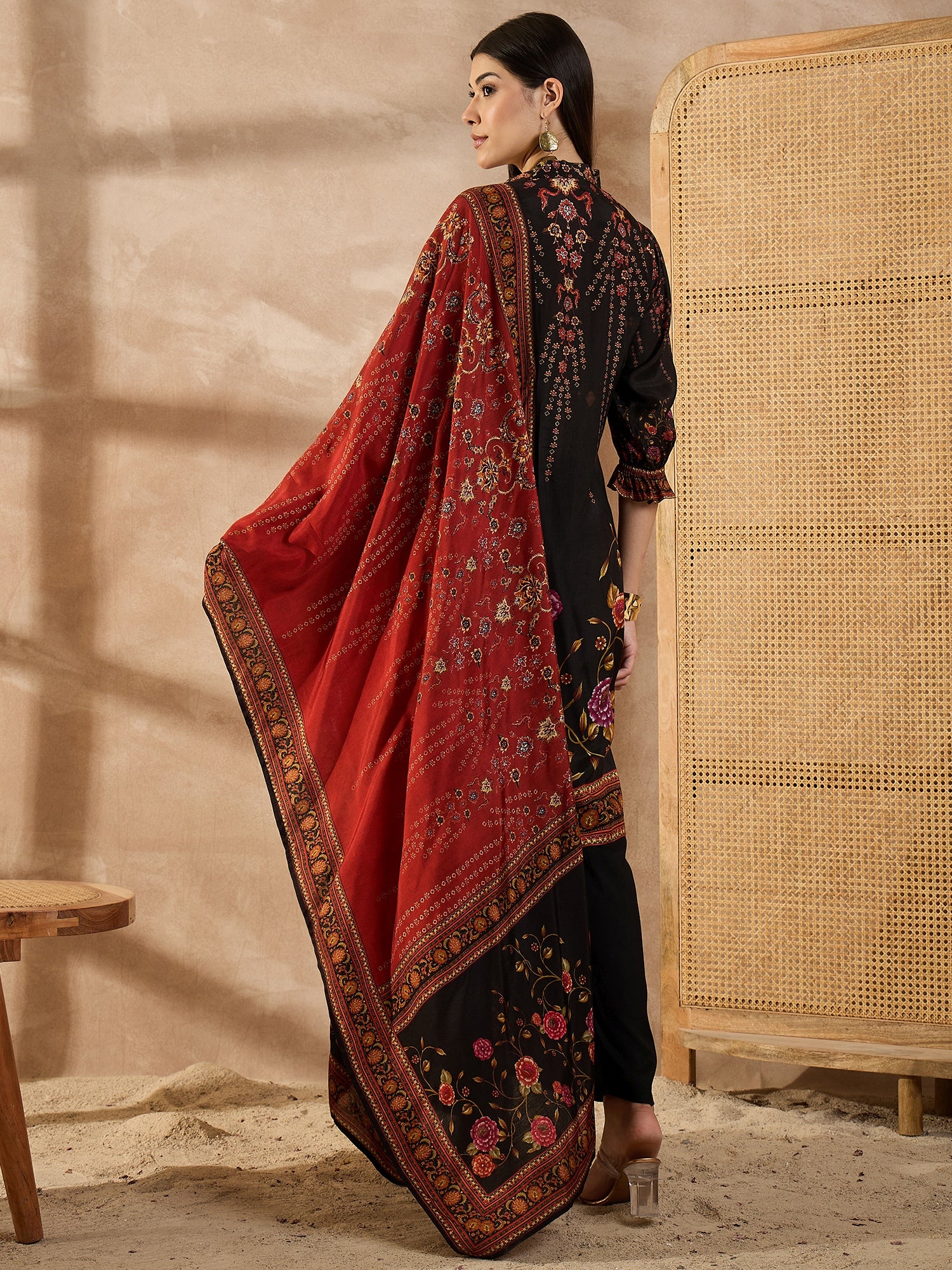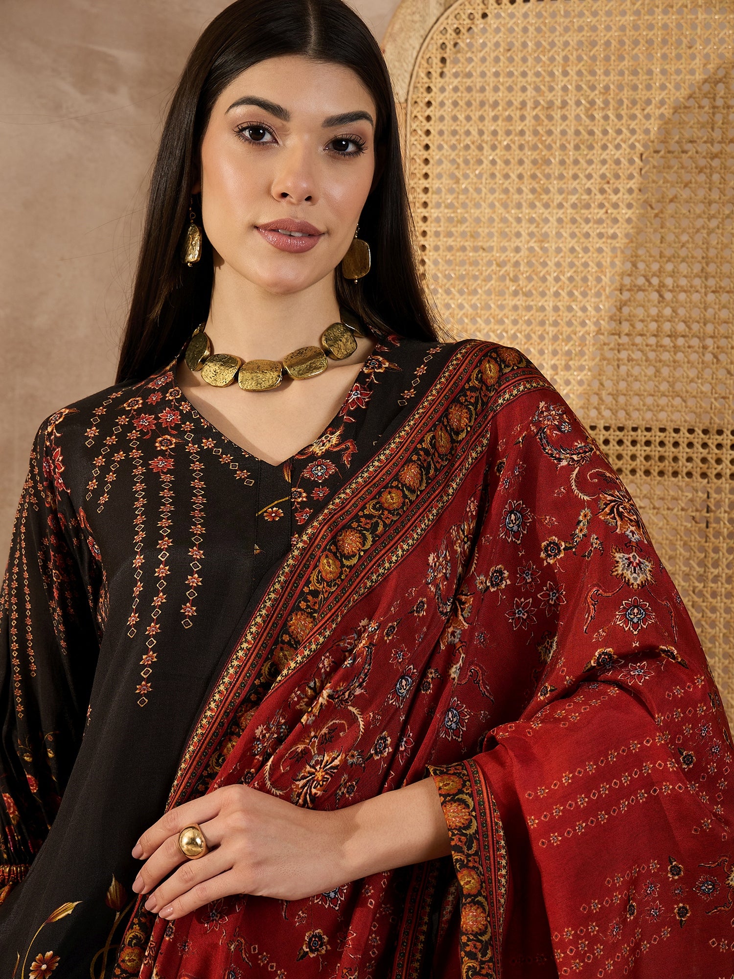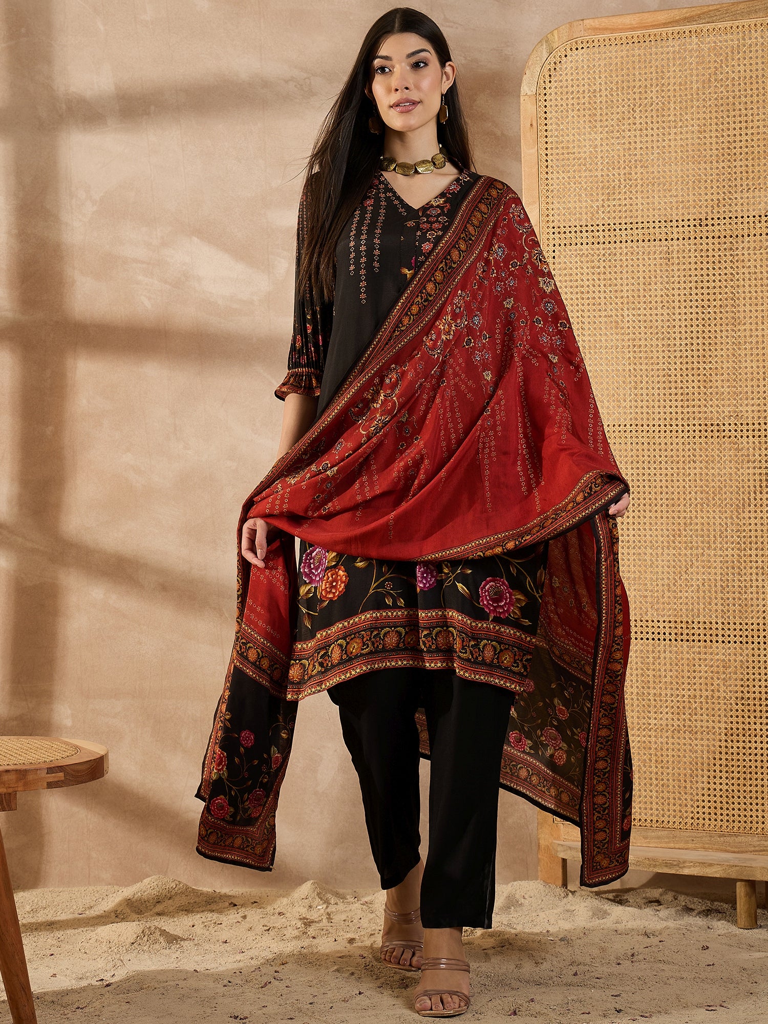 Women Ethnic Motifs Printed Silk Kurta with Trousers & Dupatta