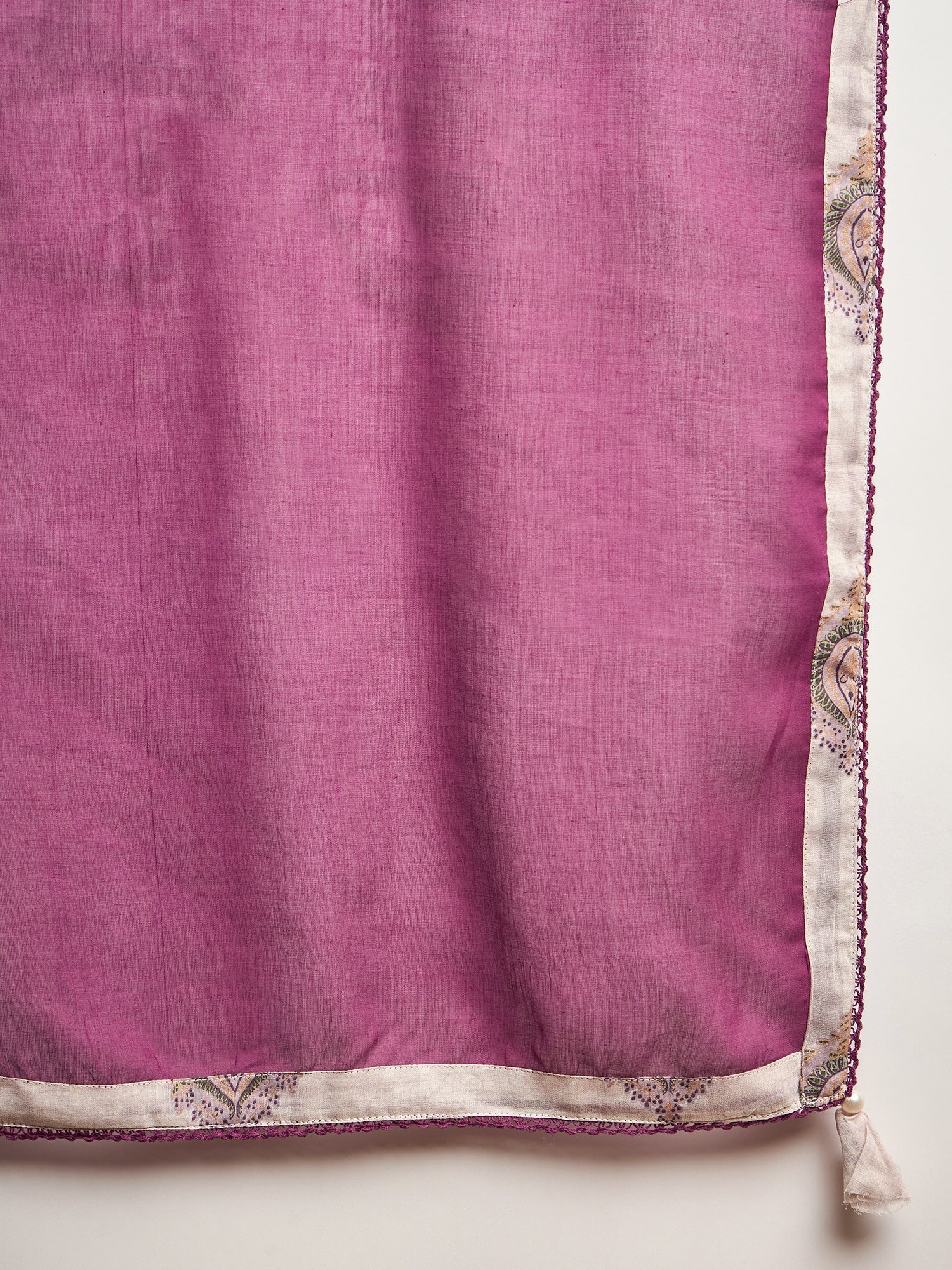 Pink & White,grey printed Kurta with Trousers with dupatta