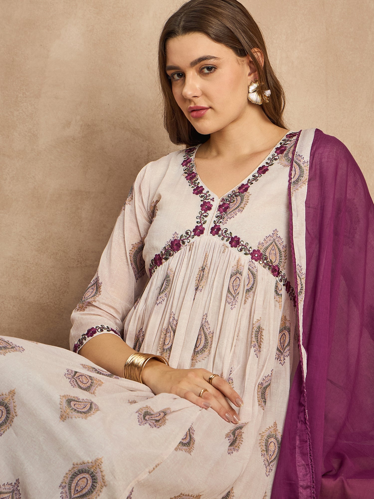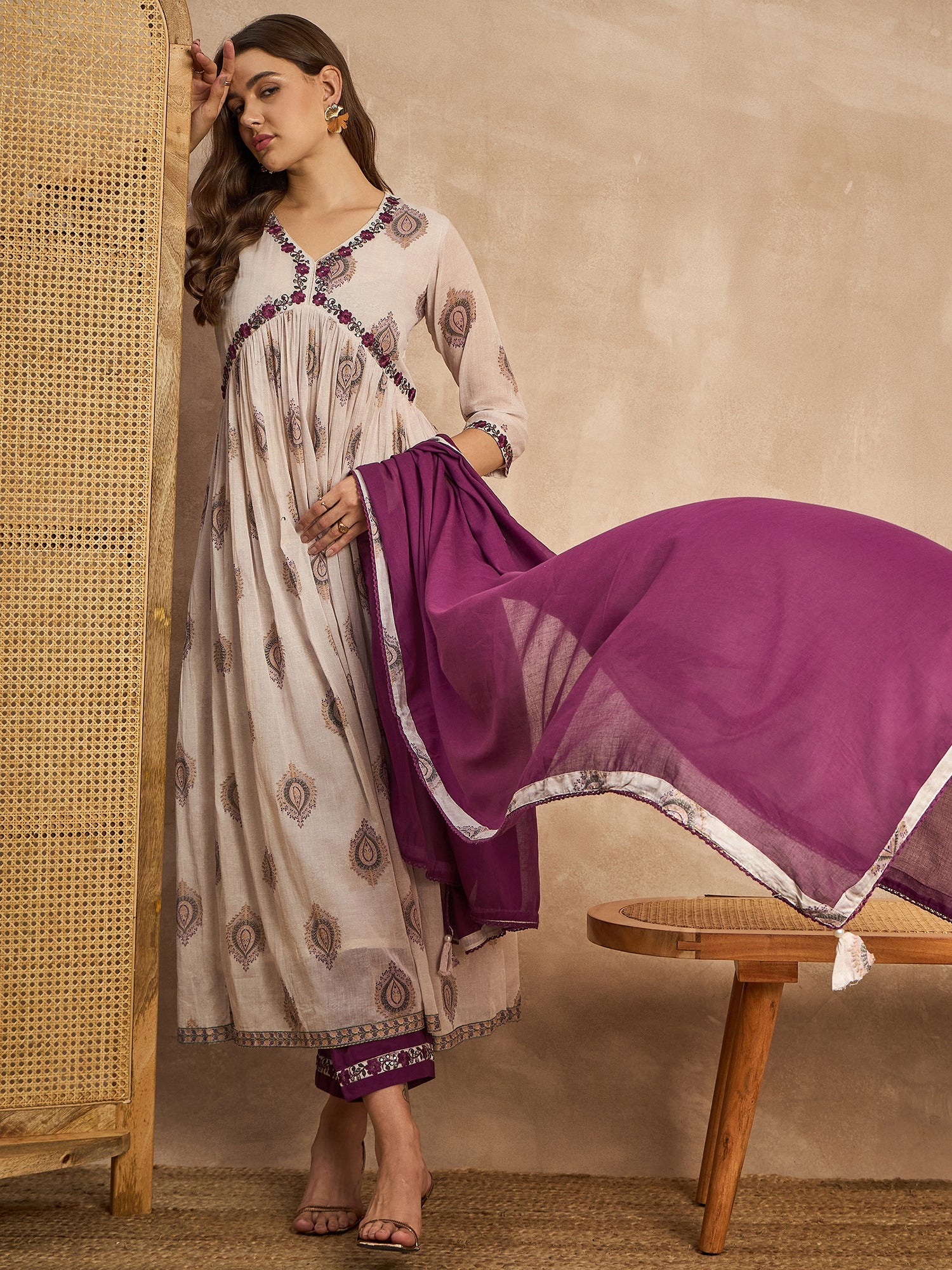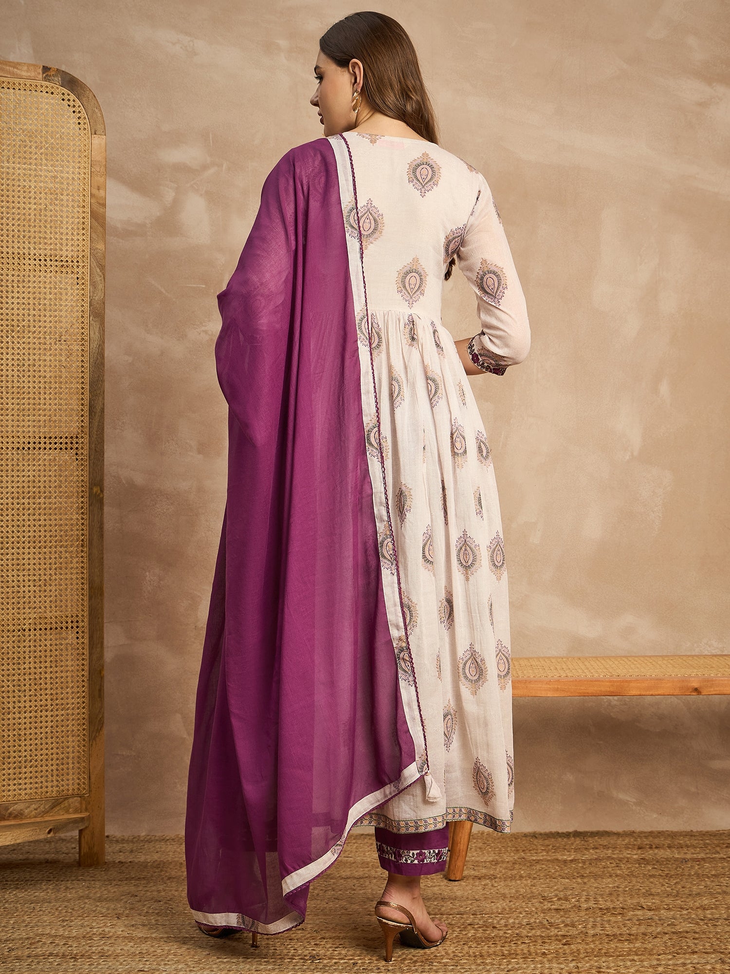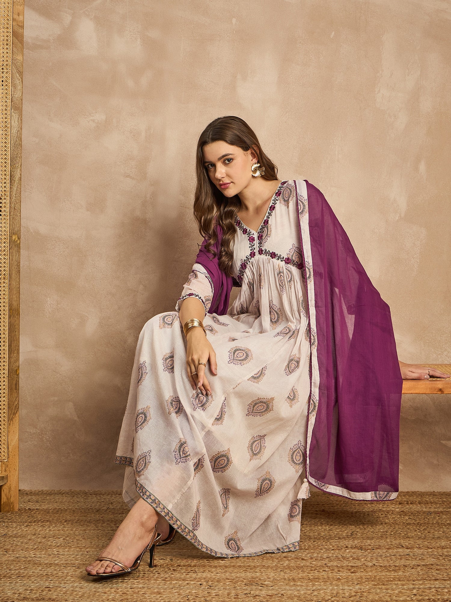 Women Ethnic Motifs Printed Thread Work Anarkali Kurta with Trousers & Dupatta