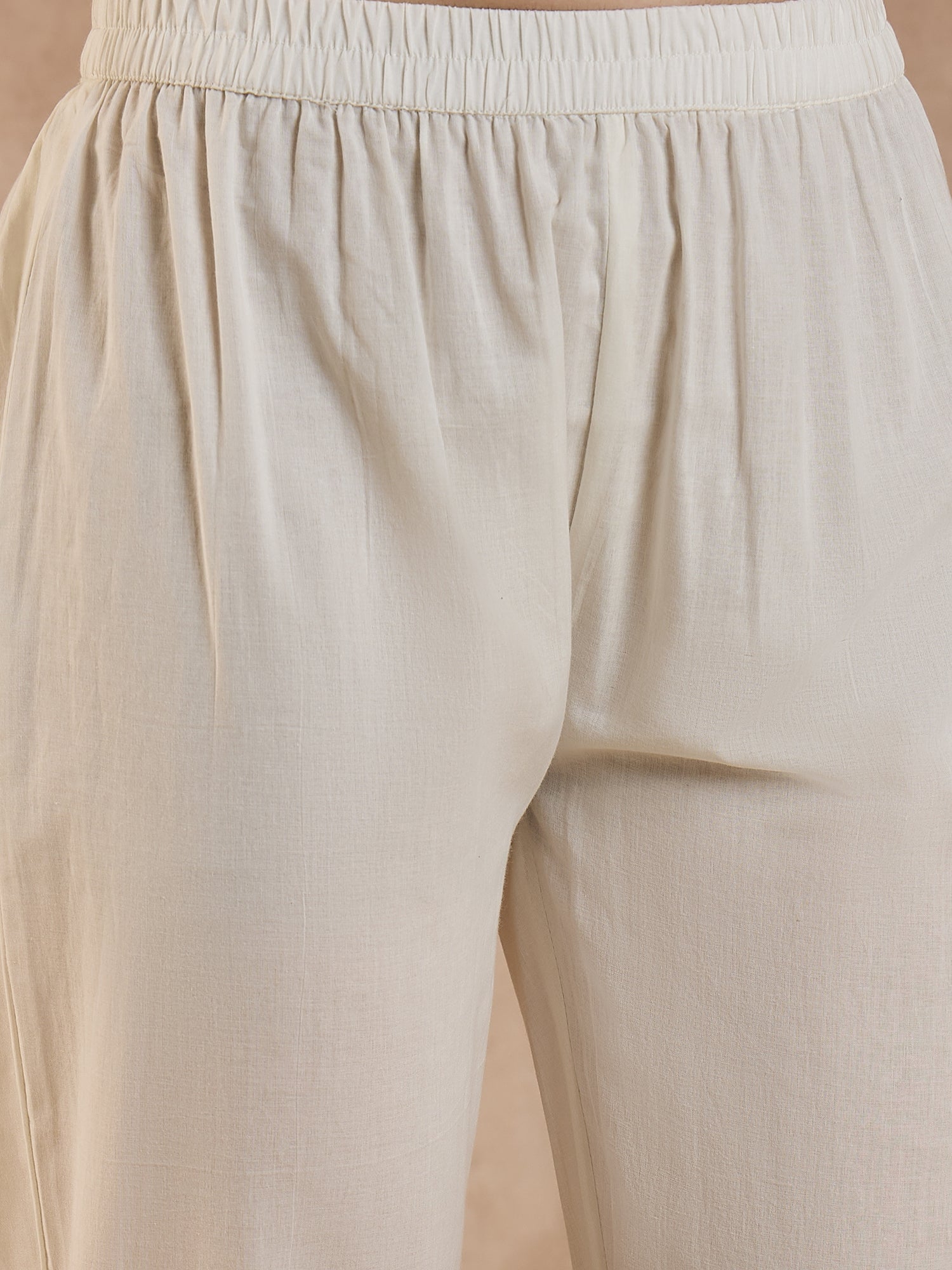 White & Pink Embroidered Kurta with Trousers & Dupatta
