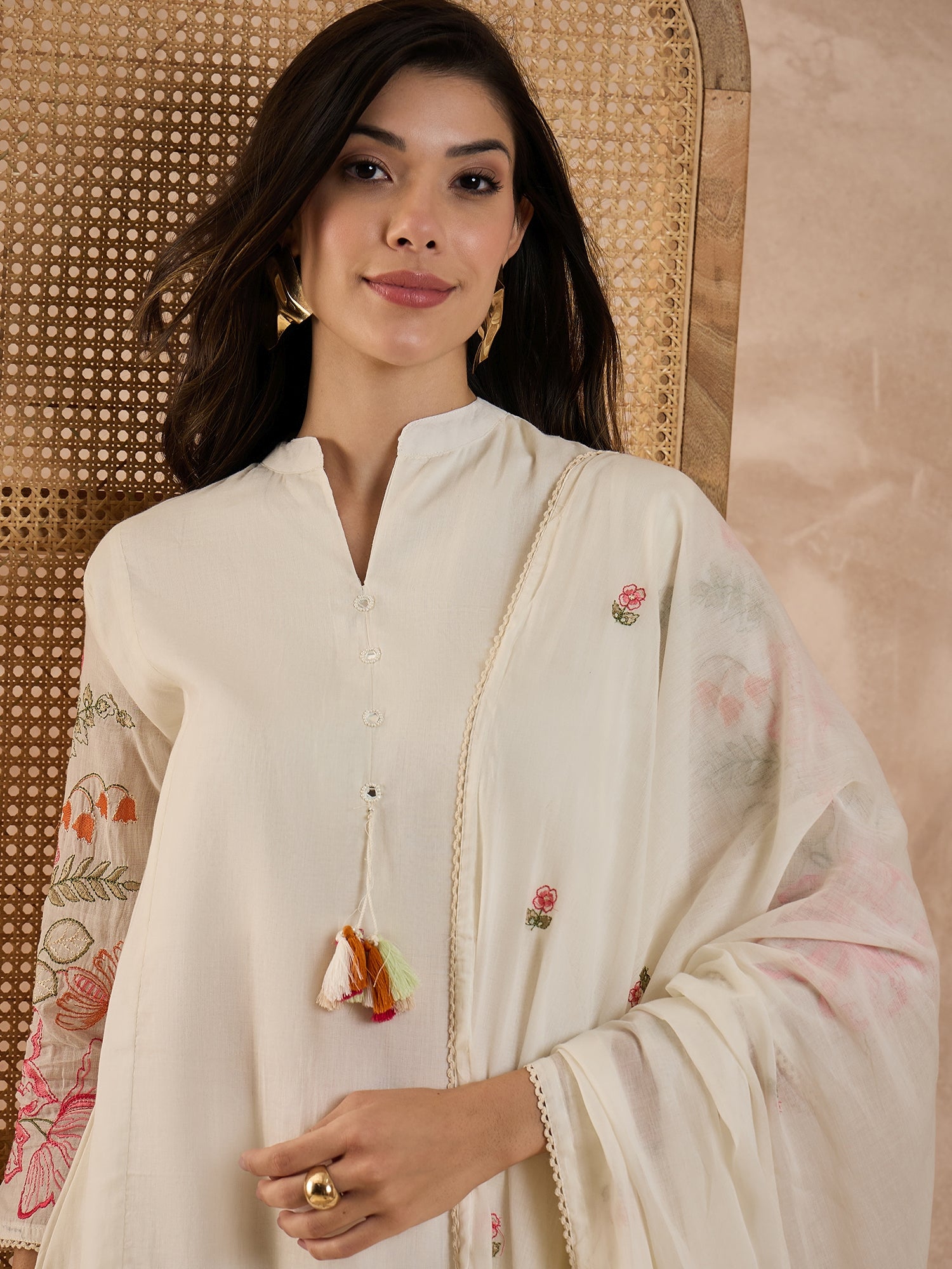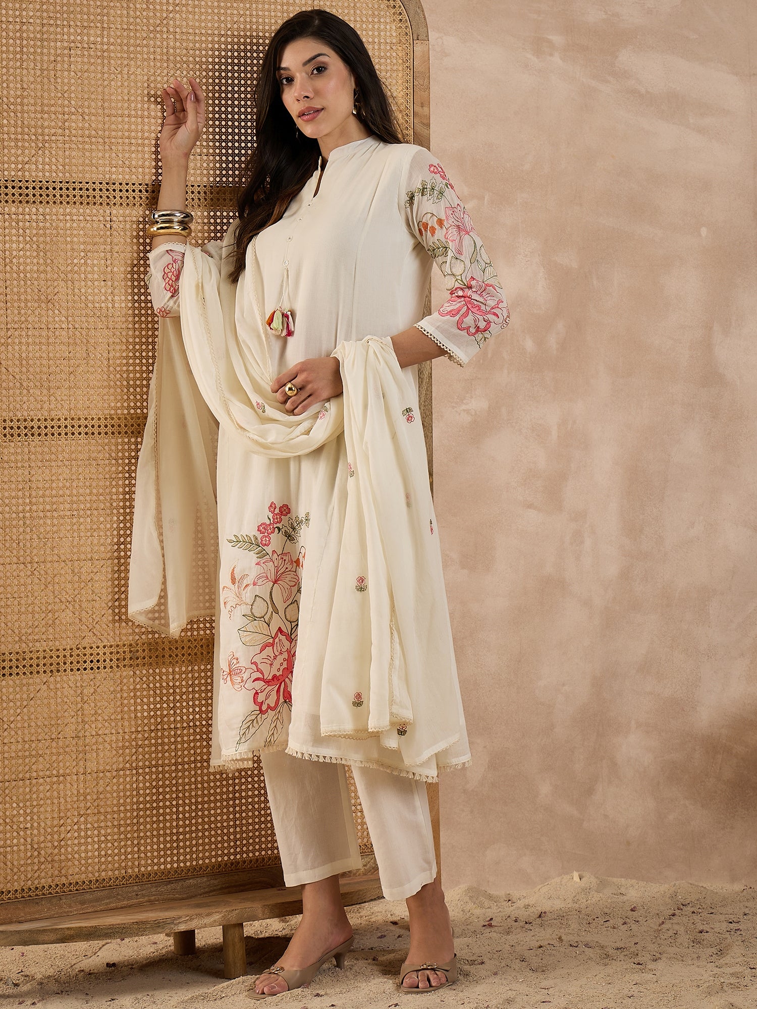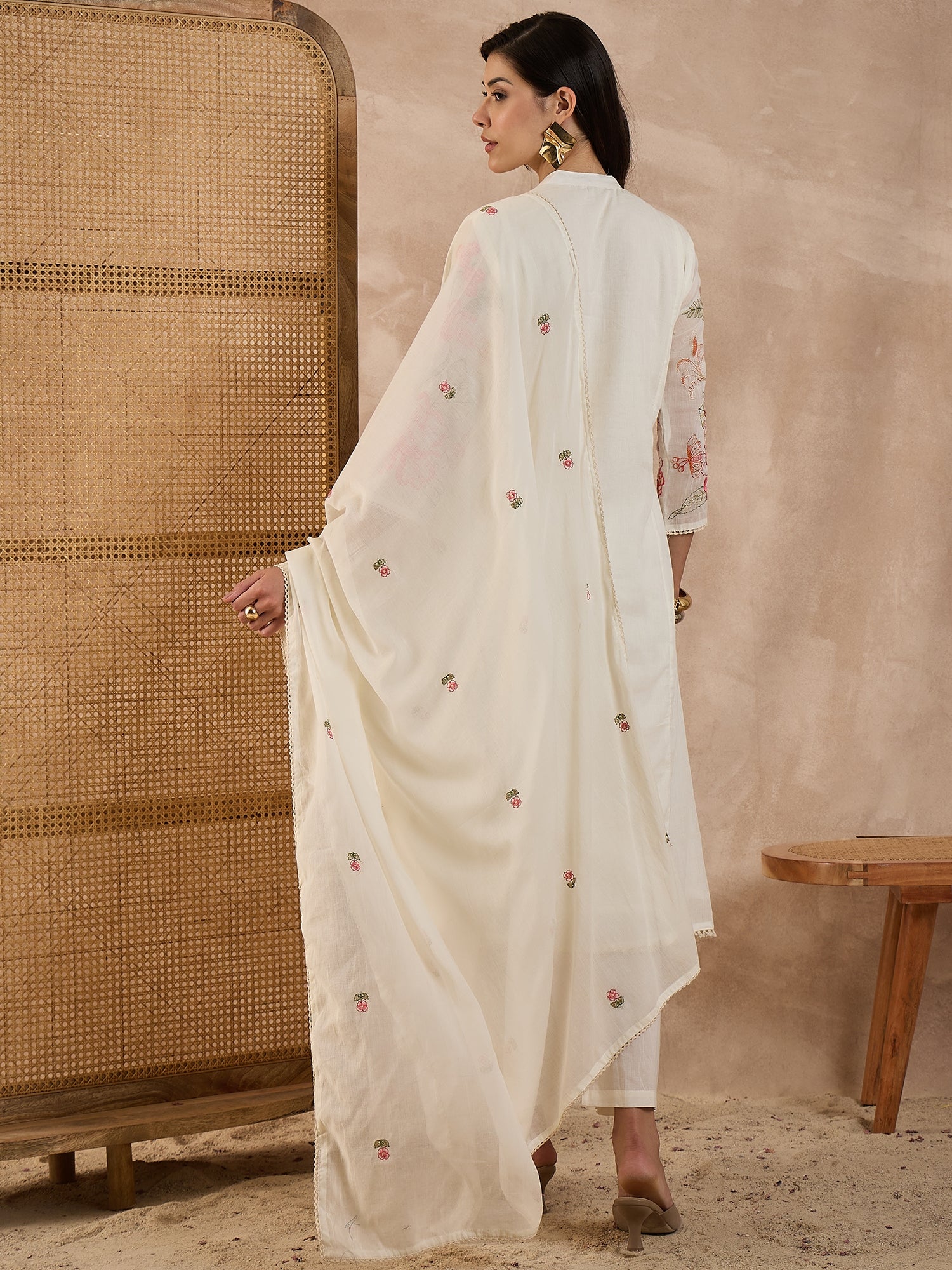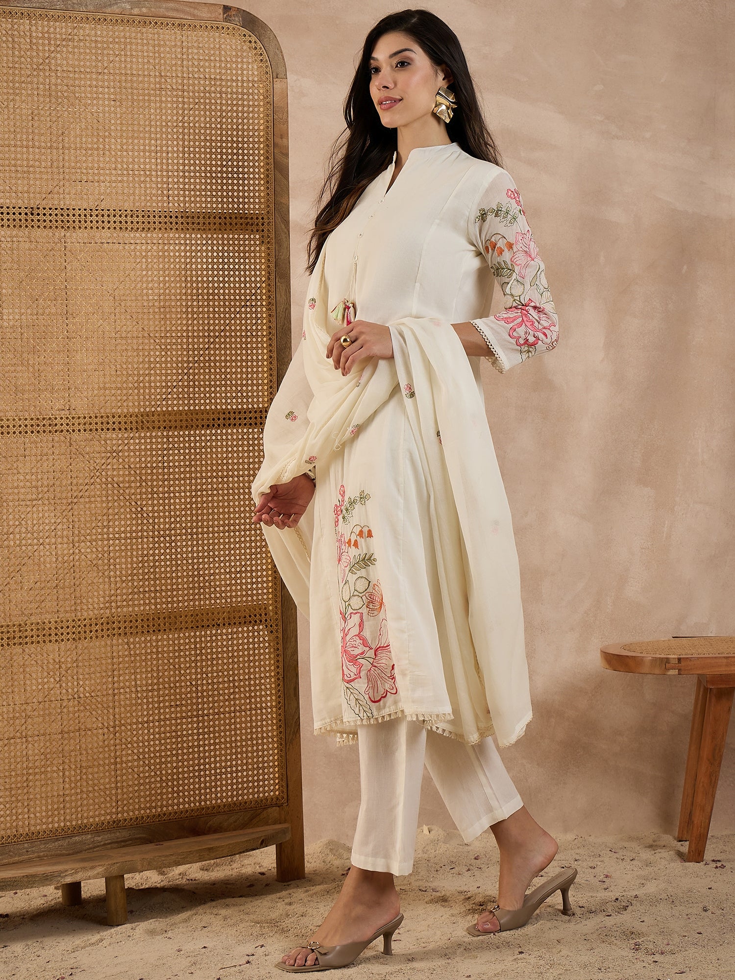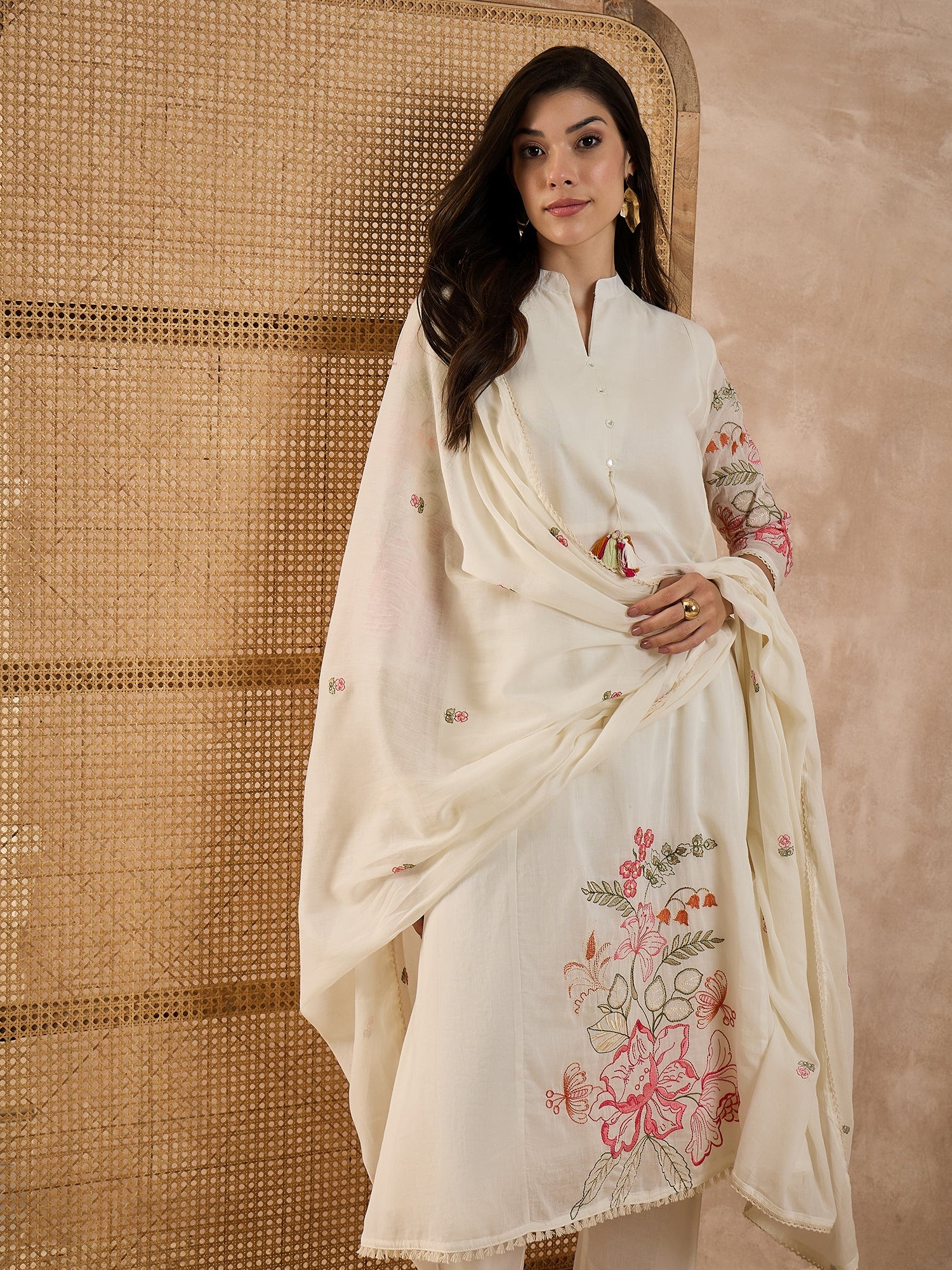 Women Floral Embroidered A-Line Kurta with Trousers & Dupatta