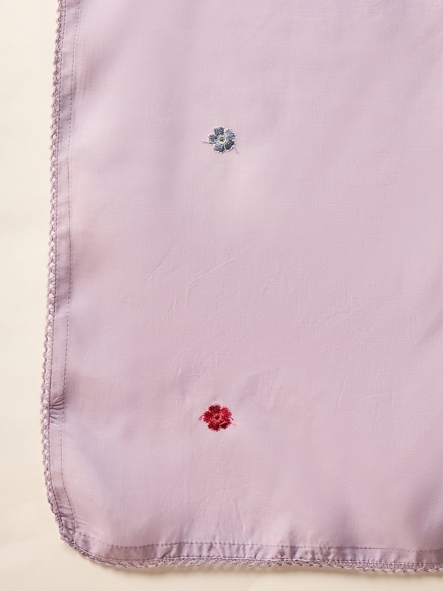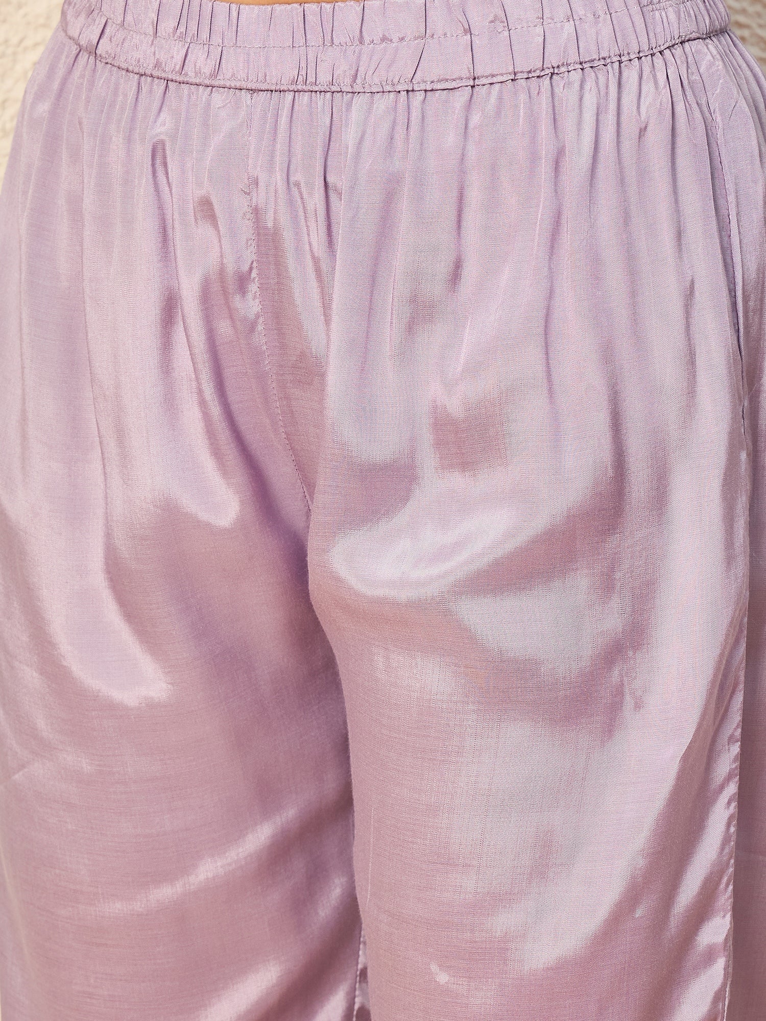 Women Floral Embroidered Empire Mirror Work Raw Silk Kurta with Trousers & With Dupatta