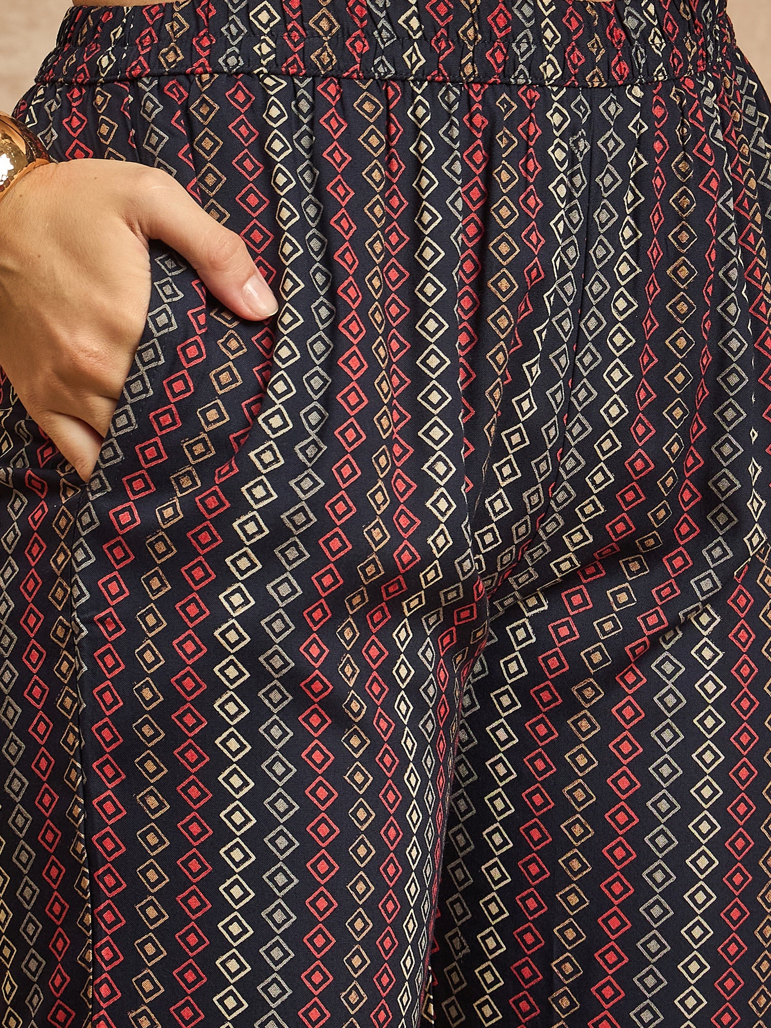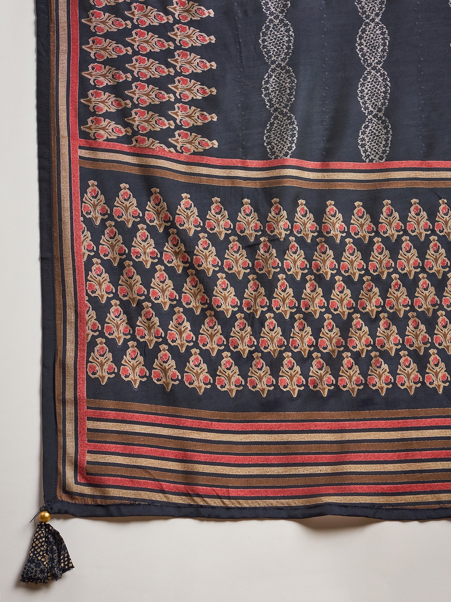 Women Floral Embroidered High Slit Mirror Work Kurta with Trousers & With Dupatta