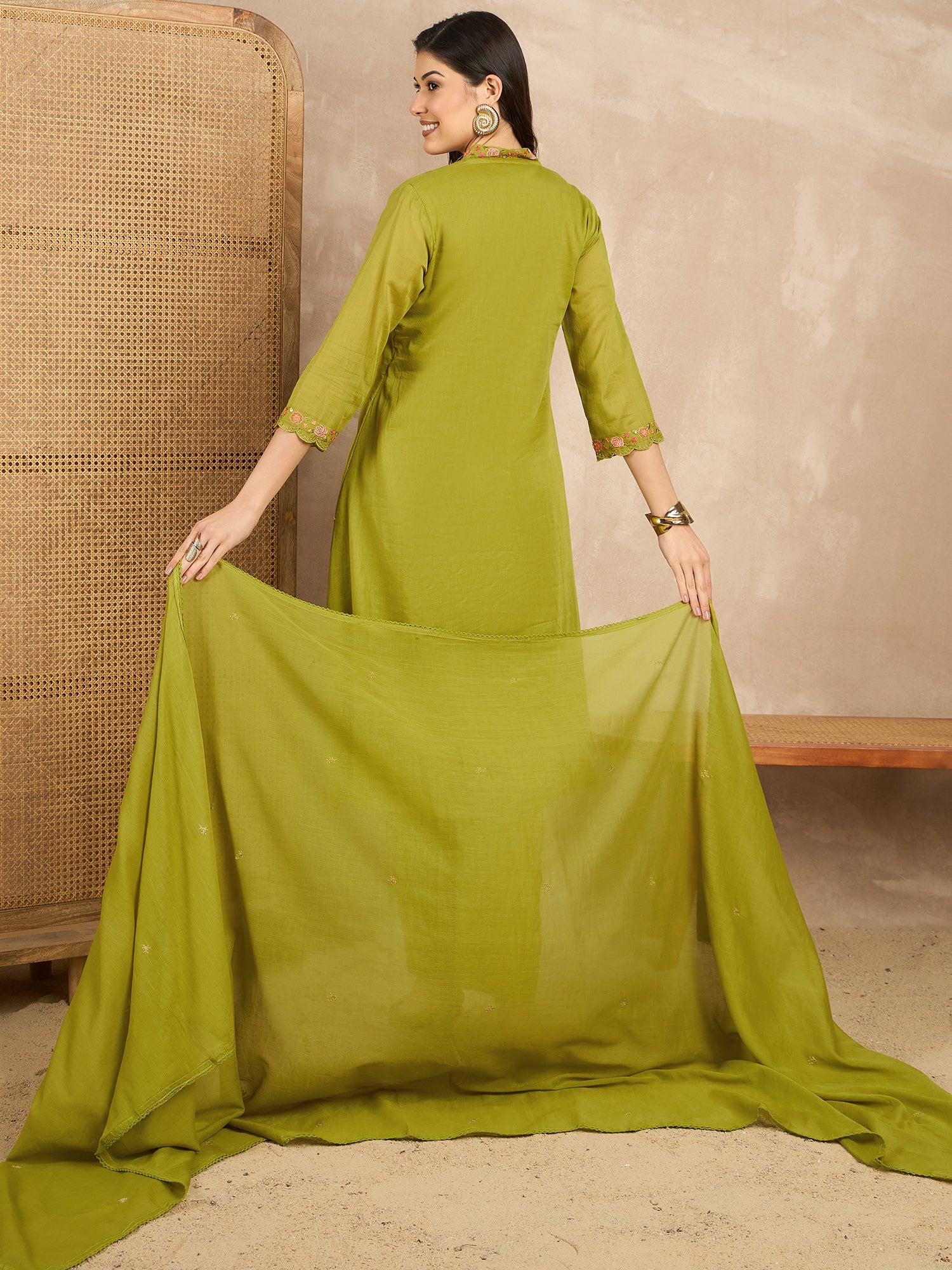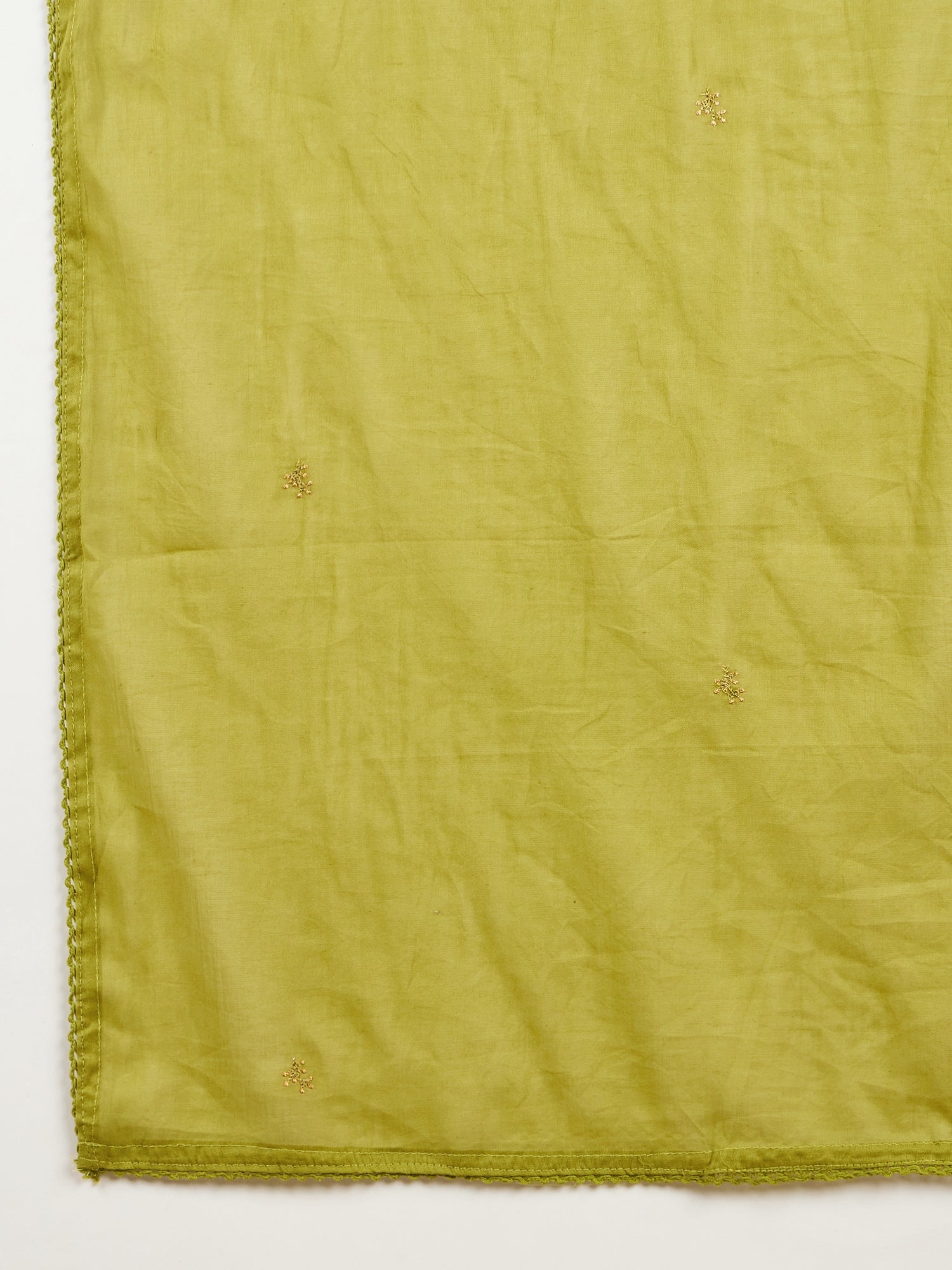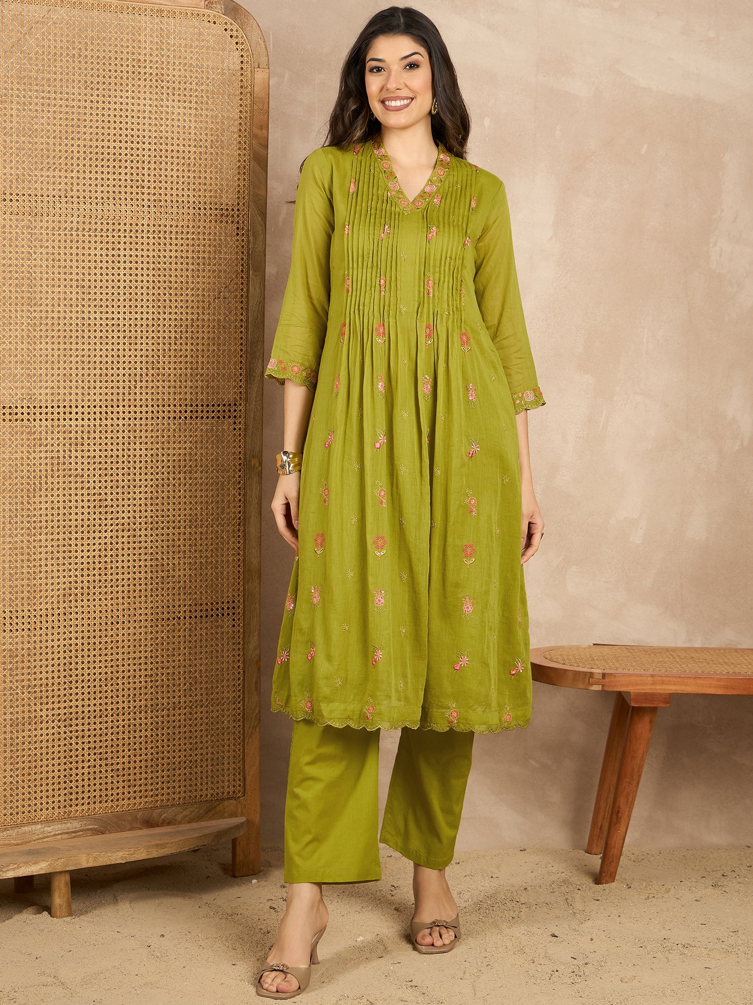 Women Floral Embroidered Pleated Thread Work Kurta with Trousers & With Dupatta