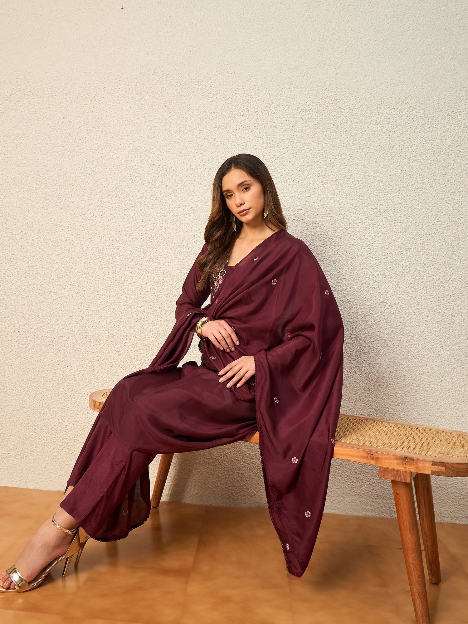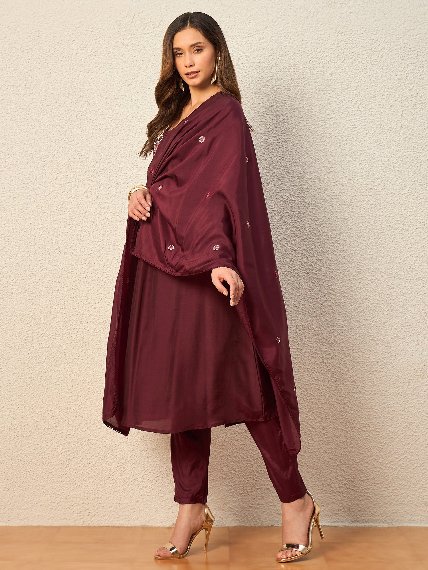Maroon embroidered Kurta with Trousers with dupatta