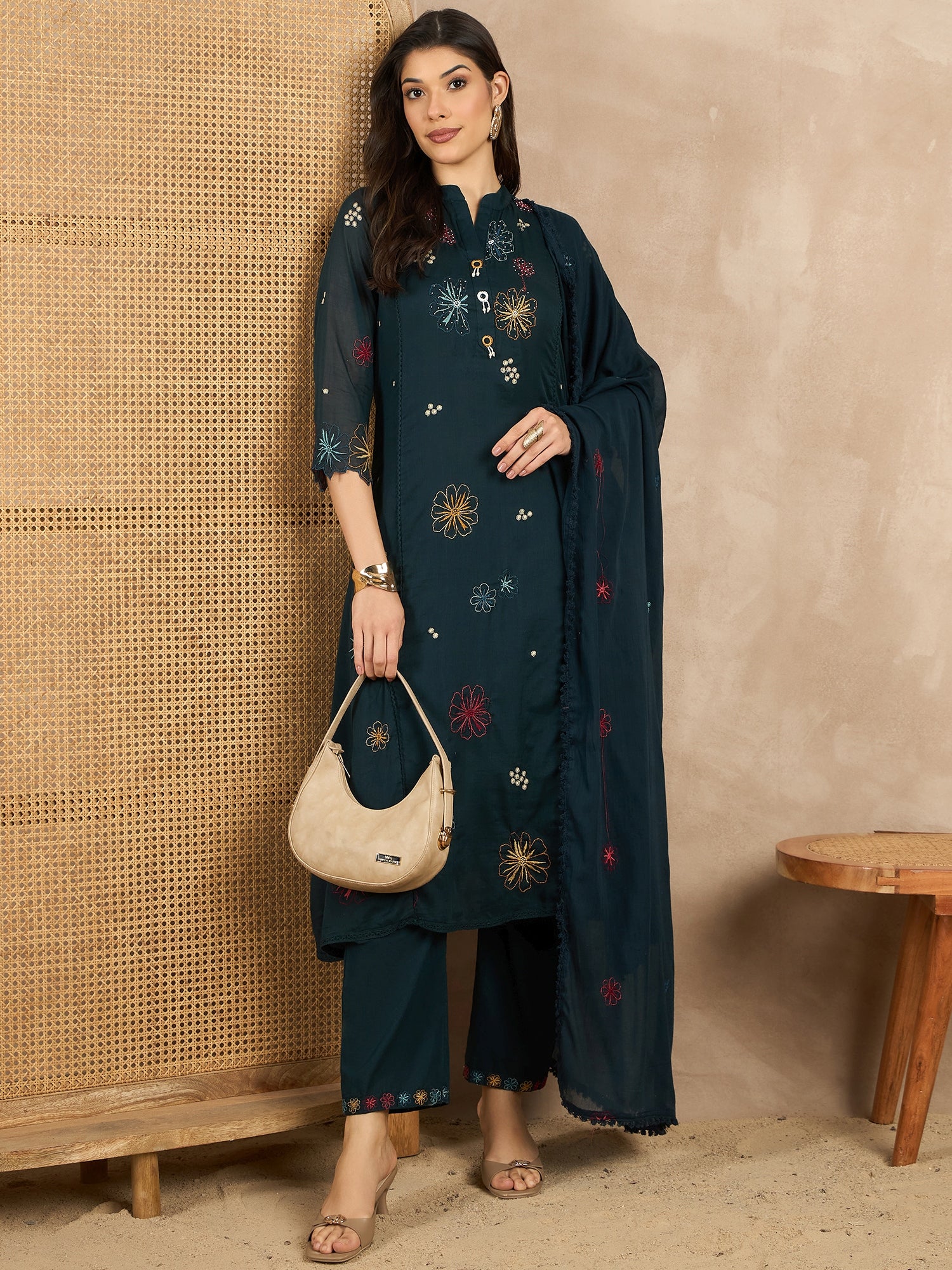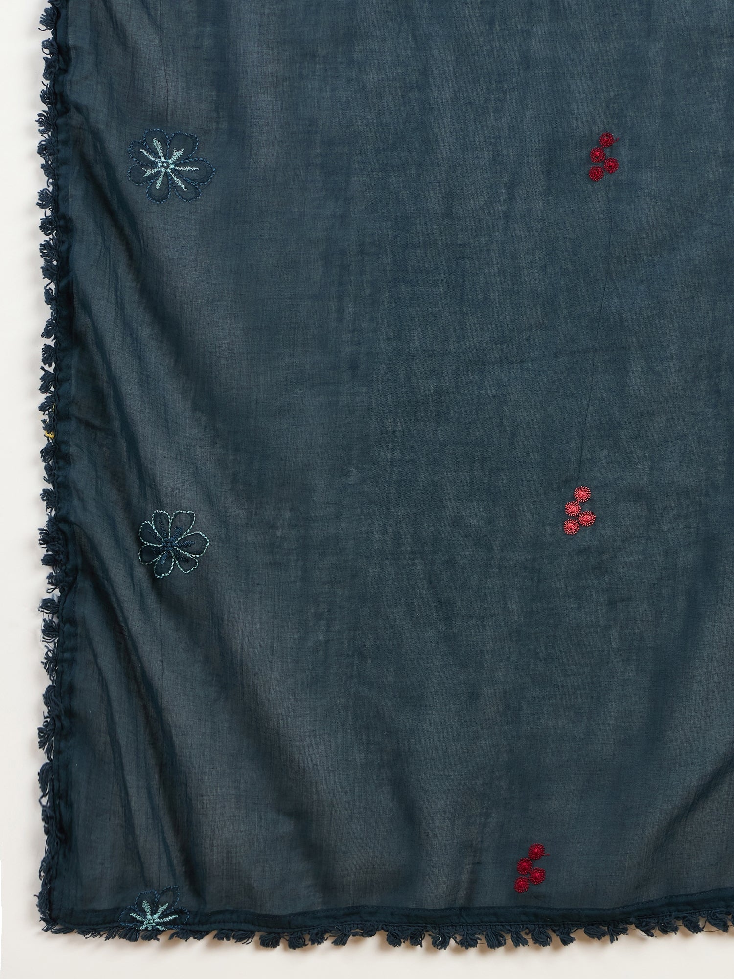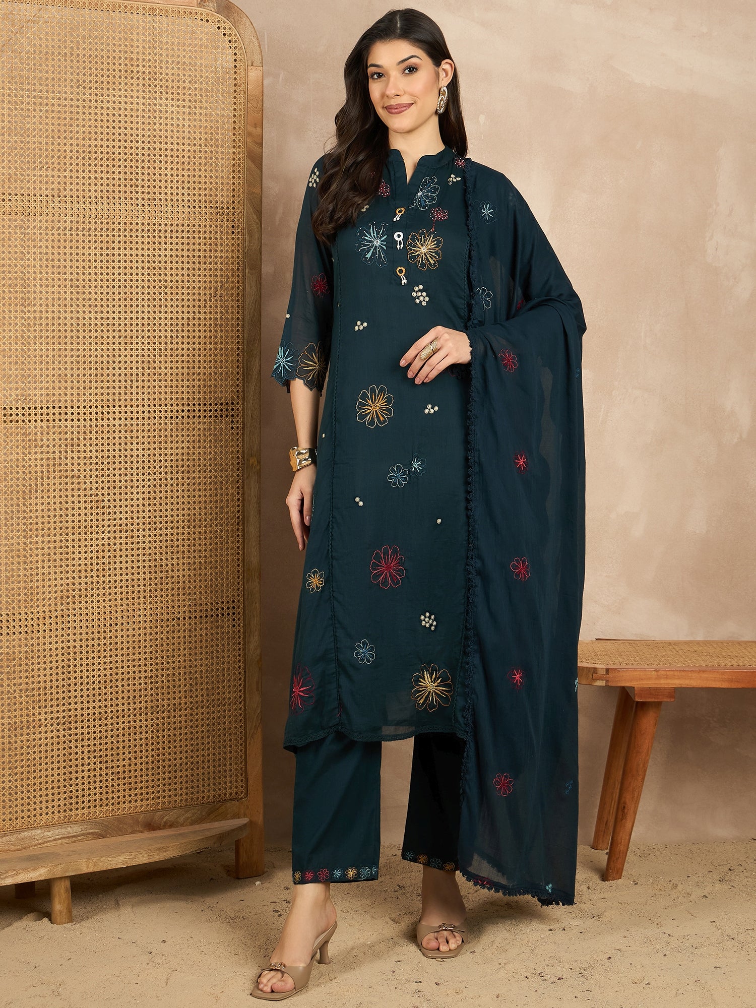 Women Floral Embroidered Regular Thread Work Kurta with Trousers & With Dupatta