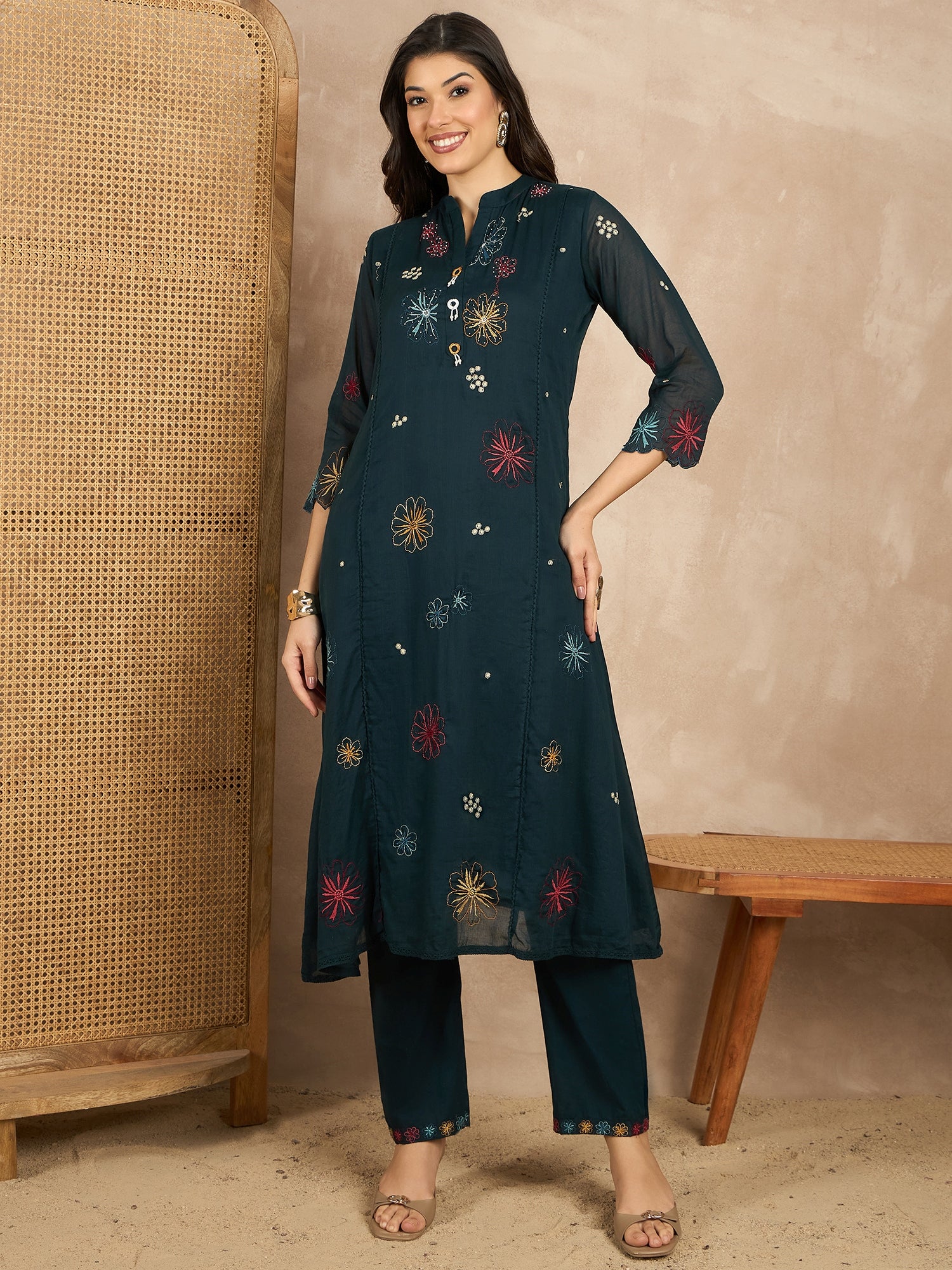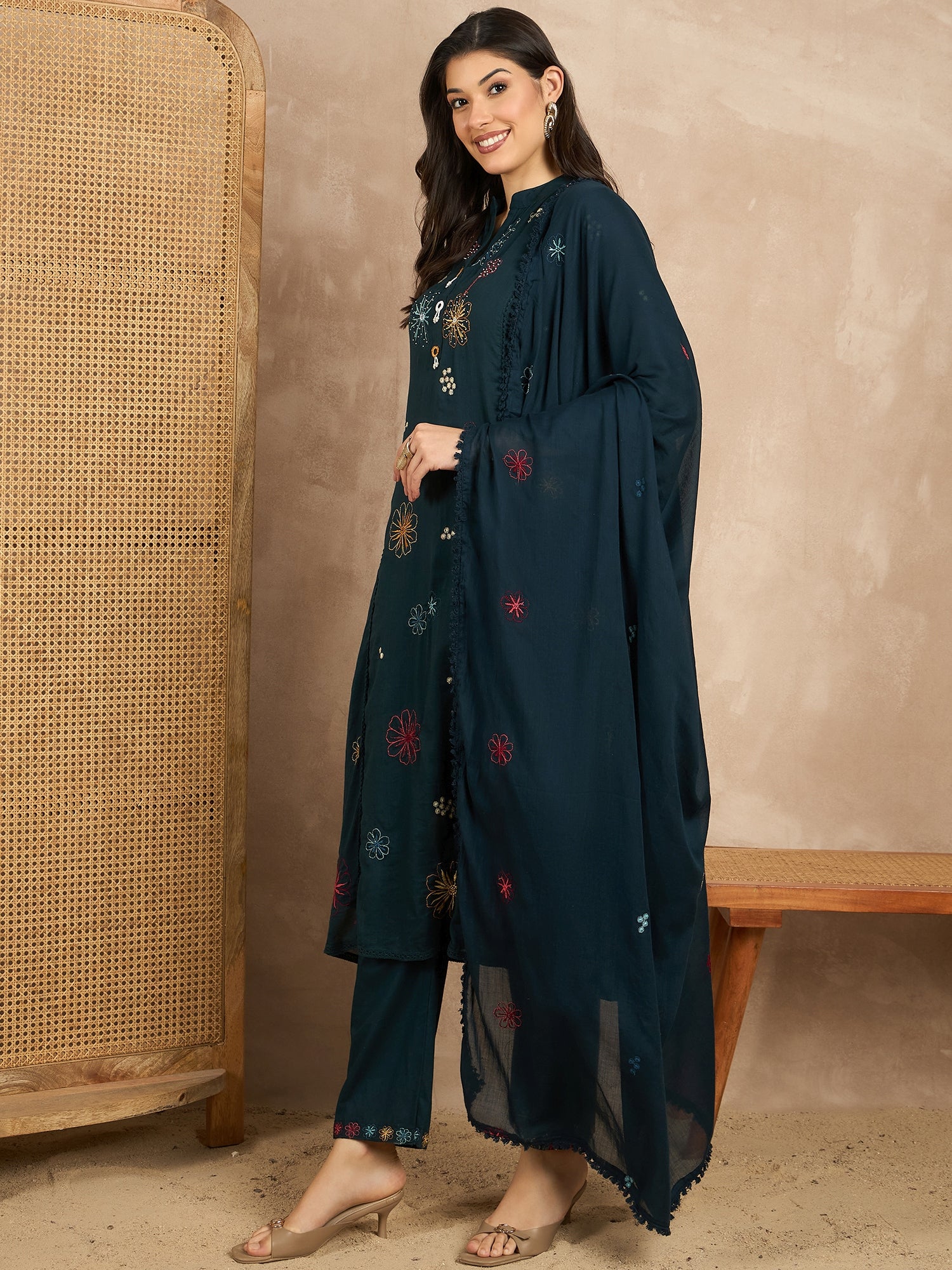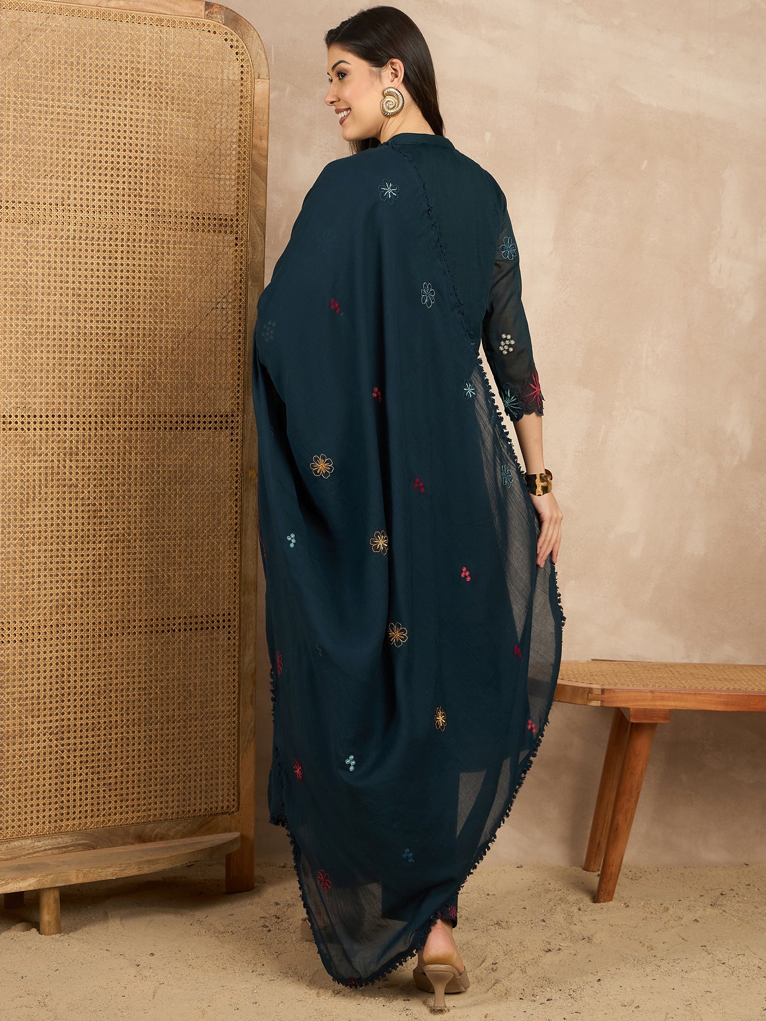 Women Floral Embroidered Regular Thread Work Kurta with Trousers & With Dupatta