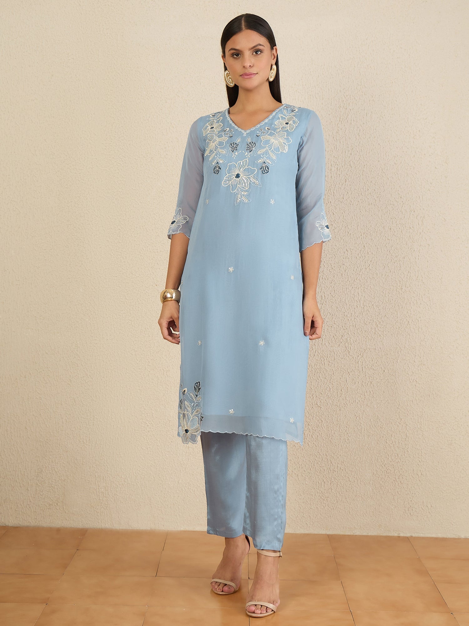 Blue embroidered Kurta with Trousers with dupatta